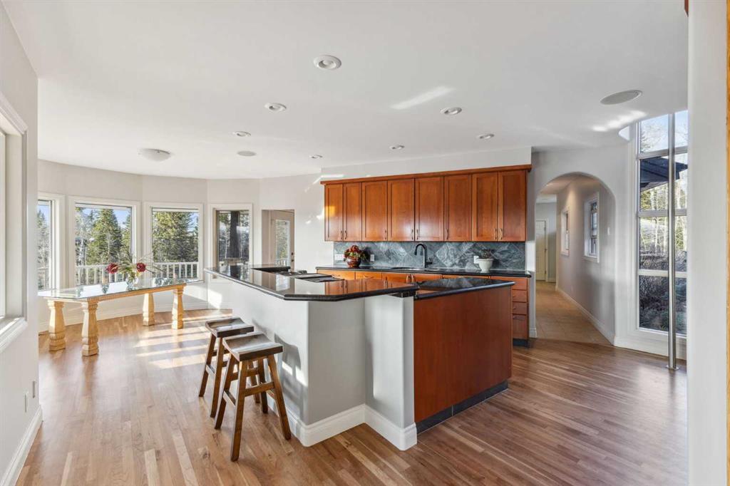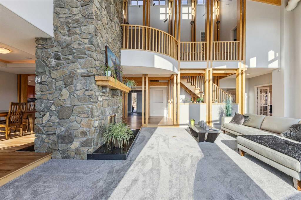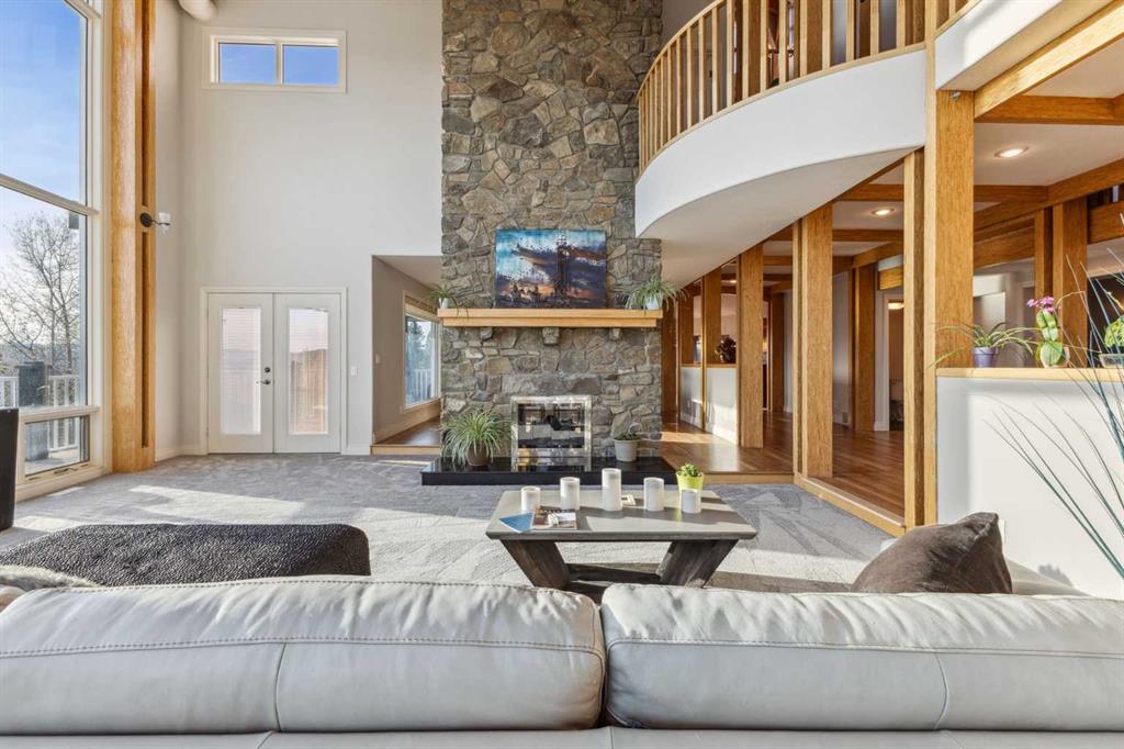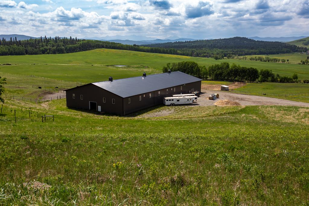 Welcome to the epitome of spacious comfort on this expansive equestrian estate west of Millarville, where lavish luxury living and breathtaking mountain vistas harmoniously blend with a turnkey paradise for the discerning horse aficionado. Set on a remarkable 147.07 acres, this extraordinary estate offers an unparalleled lifestyle. The custom home, spanning 5,521.06 square feet, is a testament to fine craftsmanship and attention to detail. Step inside to discover cathedral ceilings that create an airy and grand atmosphere while the elegant American Cherry hardwood floors add warmth and richness to the living spaces. The spacious kitchen with dine-in island is bathed in natural light, allowing family meals to be enjoyed while taking in the luscious landscapes. A spacious primary suite offers peace and solitude while in floor heating warms the ensuite and runs thoughout the main level. Four fireplaces throughout the home create cozy gathering spots for friends and family. Immerse yourself in the wonders of the night sky with a private rooftop observatory where you can bask fireside in the splendor of a mountain view sunset or simply marvel at the celestial beauty above. Catch the game at your very own sports bar or get into game shape in an exercise room and sports court, there are endless entertainment options for guests. For the horse enthusiast this property provides the ultimate playground. Imagine having your horses right at your back door, with horse stalls available in an indoor heated riding arena set against the backdrop of the Canadian Rockies. The turnkey nature of the equestrian facilities allows for a seamless transition into the equestrian lifestyle. For the hobbyist or craftsman, the inclusion of two heated workshops provides ample space for pursuing your passions and honing your skills. Allow serene moments to wash over you in the shadow of the mountains while relaxing at the water’s edge where your guests can appreciate the quiet of a personal cottage. Located minutes from Kananaskis Country, the world famous Spruce Meadows, Bragg Creek & Calgary are a mere 30 minute drive, whie the mountains are a quick 60 min trip, allowing for easy access to city amenities from the comfort of the tranquility of the country. Fall in love with the unparalleled beauty of the mountainscapes that surround this property from the wrap around covered deck. Don’t compromise, with smart-home systems and Starlink internet connection throughout the house, arena and cottage, it is possible to enjoy modern living amongst rustic backdrops. Whether it's sipping a drink in the evening while taking in the majestic views or exploring the vast natural wonders nearby, this estate provides a remarkable setting for relaxation and rejuvenation. Don't miss the opportunity to own this equestrian haven, where every aspect of luxurious living and equestrian pursuits has been carefully considered. Embrace a lifestyle where horseback riding, stunning views, and loving memories await.
