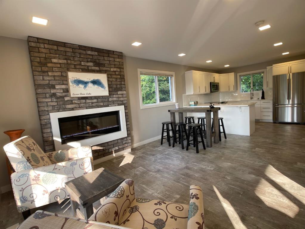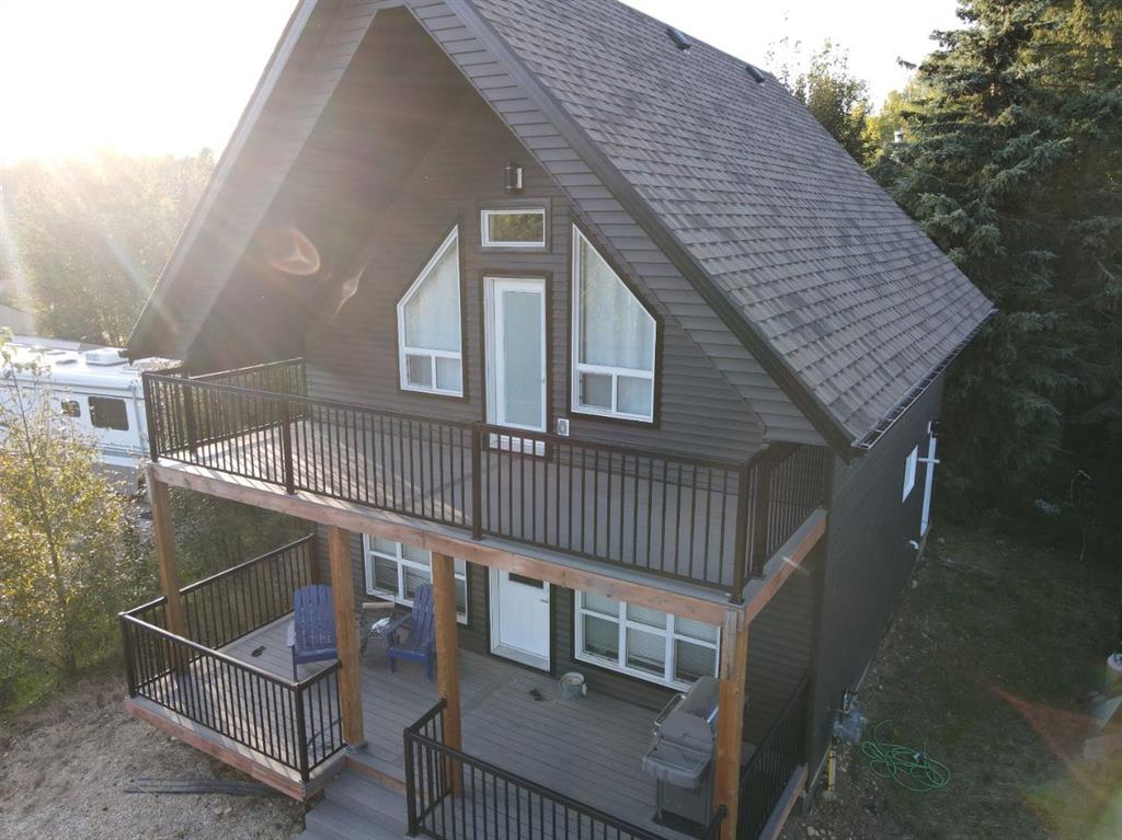 1350 sq ft 2 storey Modern Cabin in the gated community of Hilliards Bay Estates. The Cabin has a bright open concept living room, dining room and kitchen. The monochromatic colour scheme with white cabinets balancing the white stone countertops with a white subway tile backsplash. The stainless steel appliances finish off the look. The central fireplace heats with the flip of a switch making the main floor welcoming and comfy year round. Upstairs you will find the 3 bedrooms, the primary at the front of the house - providing access to the covered deck where you will enjoy the views of Lesser Slave Lake. The upper floor bathroom has a show stopper floor to ceiling walk in tiled shower and a double vanity. The cabin is the essence of simple lake living. Enjoy all the Estates has to offer with year round sports, picturesque beaches, recreation courts, hiking trails and more. Call, email or text today to book your tour of the estates and a showing.
