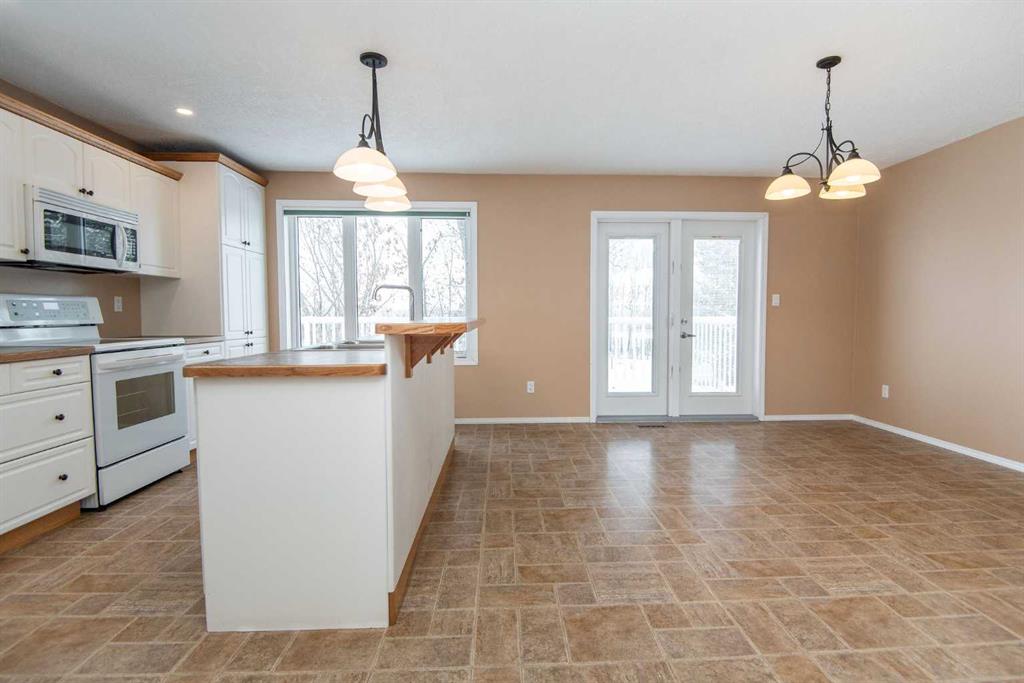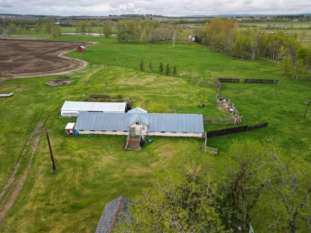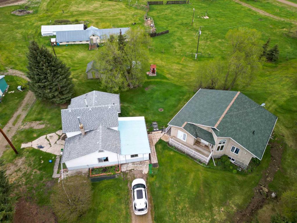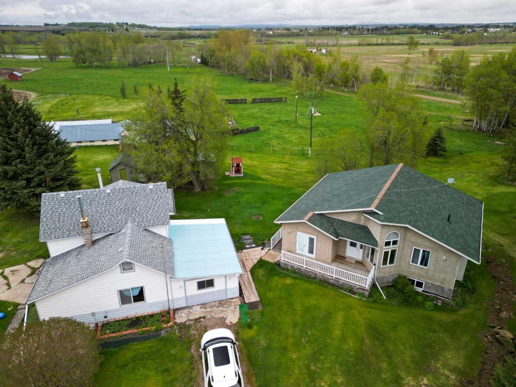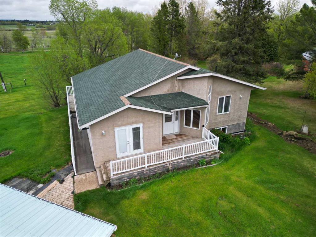 2006 home on 3.8 acres with ag zoning about 3 miles outside the small community of Eckville. The home features ICF block foundation to keep your utility costs at bay and also has a pellet stove in the main floor family room. The main floor consists of 2 bedrooms, full bath, open concept living/dining/kitchen, family room and handy main floor laundry. The fully finished walk out basement has 2 more bedrooms, full bath, another family room space, an entry space with a large sink handy for bringing in veggies from the garden. The office space would make a lovely media room and has underfloor heat throughout this level. Outside there is a huge barn, corrals with stock waterers. The second home although has been updated over the years can be used only as an accessory building.