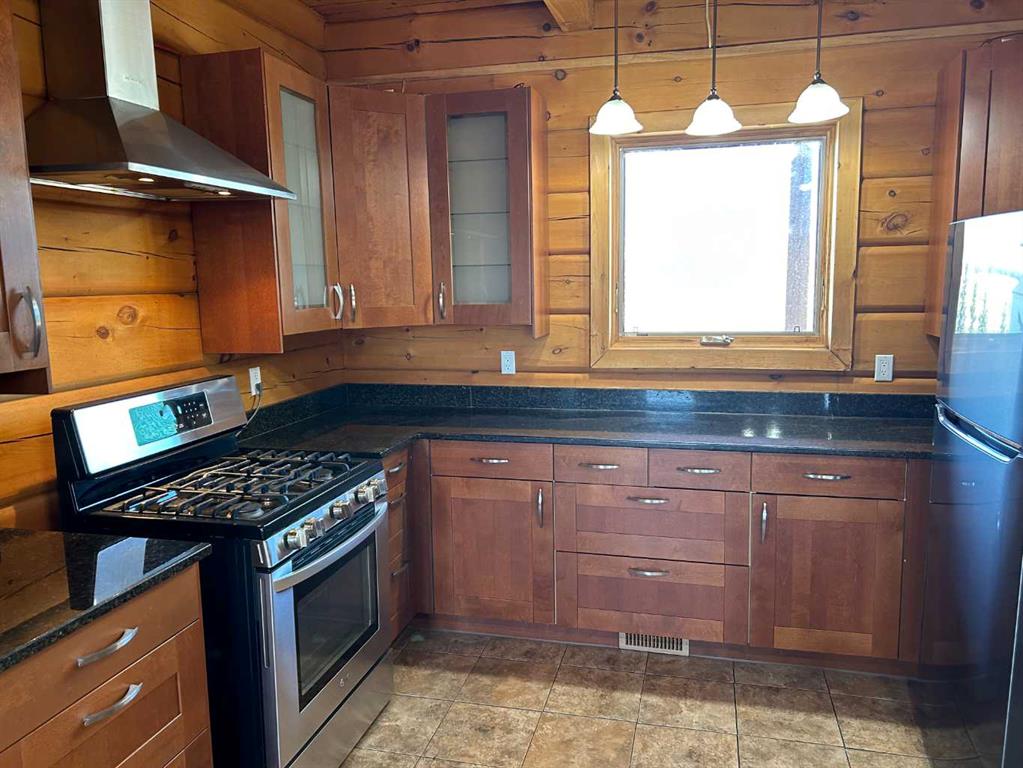 A beautiful log home, walking distance to sandy beaches of Buffalo Lake, serenity of country living, it doesn't get much better than this! This charming log home has the space for any size family, over 1800 sqft. on main and upper floor and a finished basement, you will be impressed the minute you walk in, the main floor features a large living room, cozy fireplace and exposed beams throughout, the spacious dining room is perfect for those family gatherings, with garden doors to covered screened in deck, you will love the kitchen, wood cabinetry, beautiful granite counter tops, gas stove, the island is the perfect place to be when preparing those holiday dinners, convenient 2pc bathroom and laundry area off back door, the upper floor has a spacious primary bedroom with another cozy fireplace, tv and walk-in closet, 5pc Jack and Jill ensuite/ main bath, 2 more good size bedrooms, finished basement has perfect area for games room, extra large family room could be converted into huge sleeping area for family & friends, mechanical room has more than enough storage space, ICF block foundation and in-floor heat will make this a warm and cozy basement, you will spend as much time outside as you do inside, sit on the covered front deck with your morning coffee and watch the sunrise, then watch the sunset on the back deck, the screened in deck has N. gas for bar-bq and N. gas firepit, the 28'x40' garage has all the room to park & store all your lake toys, the 16'x28' addition to the back of the garage was used as a greenhouse, a great place to start your plants for the 6 raised garden beds, all this sits on a large .46 acre lot, you will truly enjoy all four seasons in this picturesque location, Buffalo Lake is the largest lake in central AB. boating, fishing, paddle boarding in the warm months, skating, sledding, cross country ski, ice fishing in the winter months, what a beautiful place to create your family memories