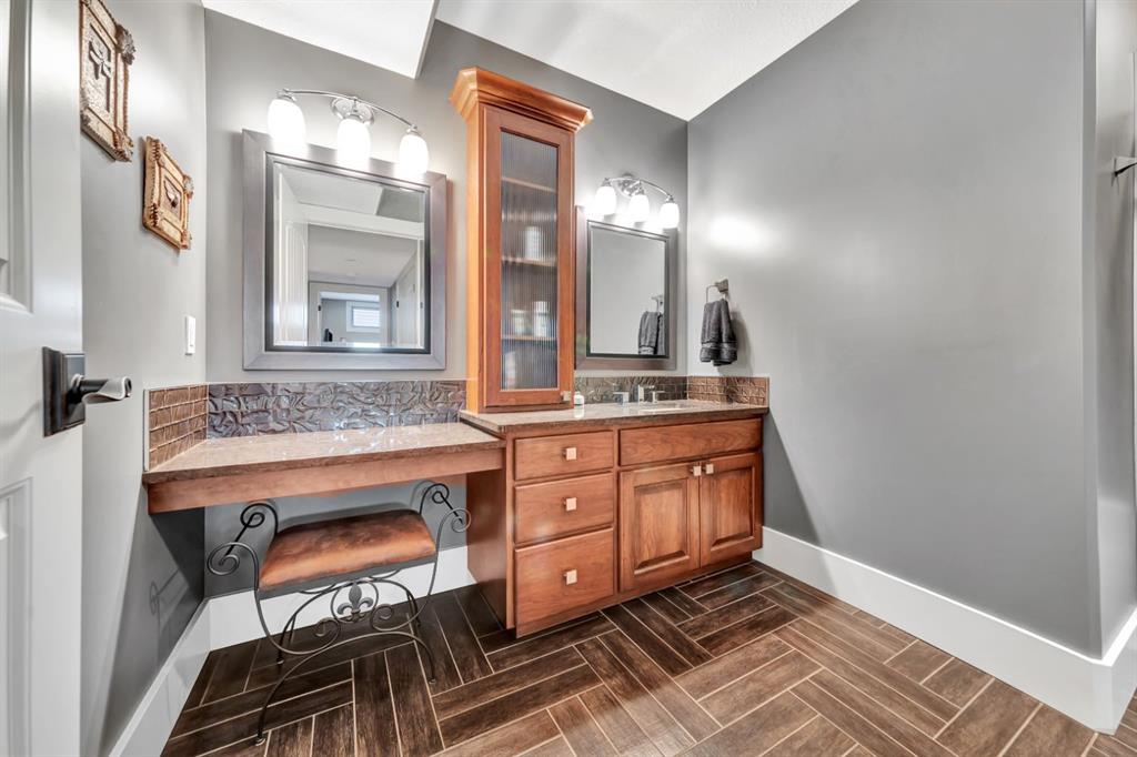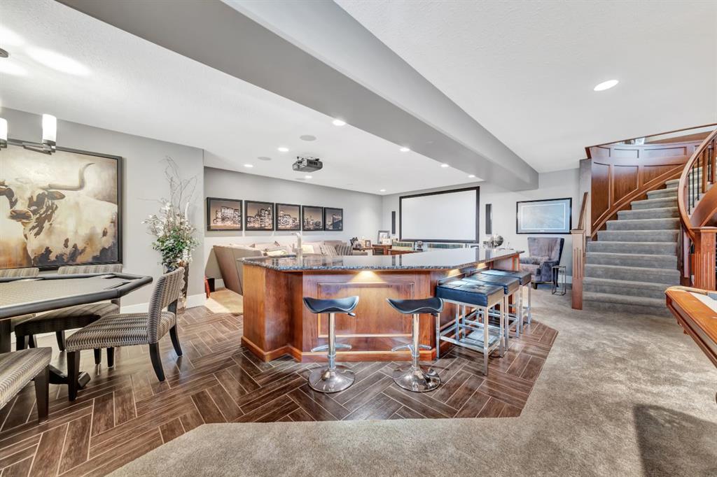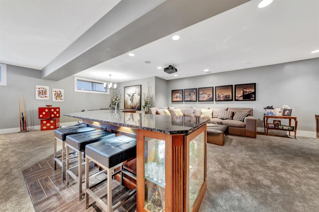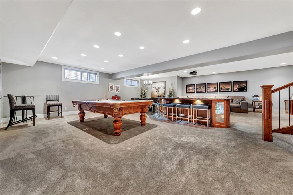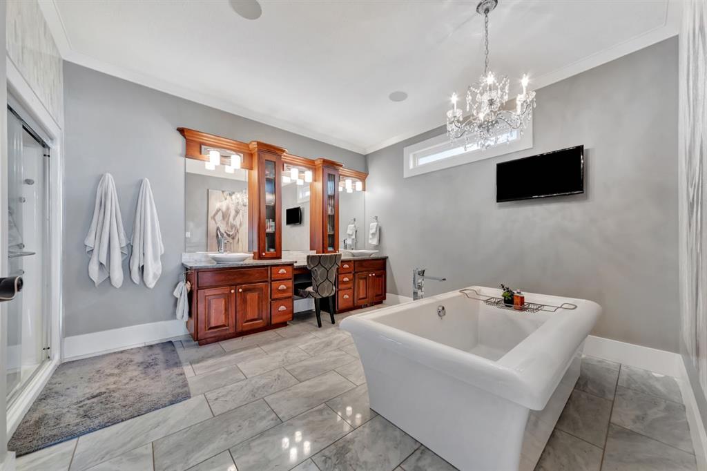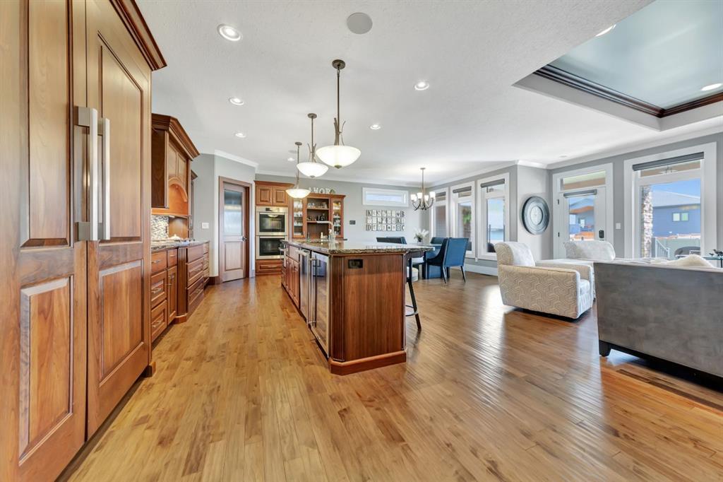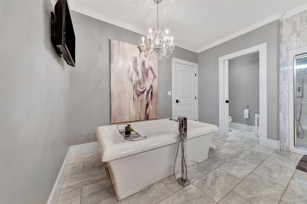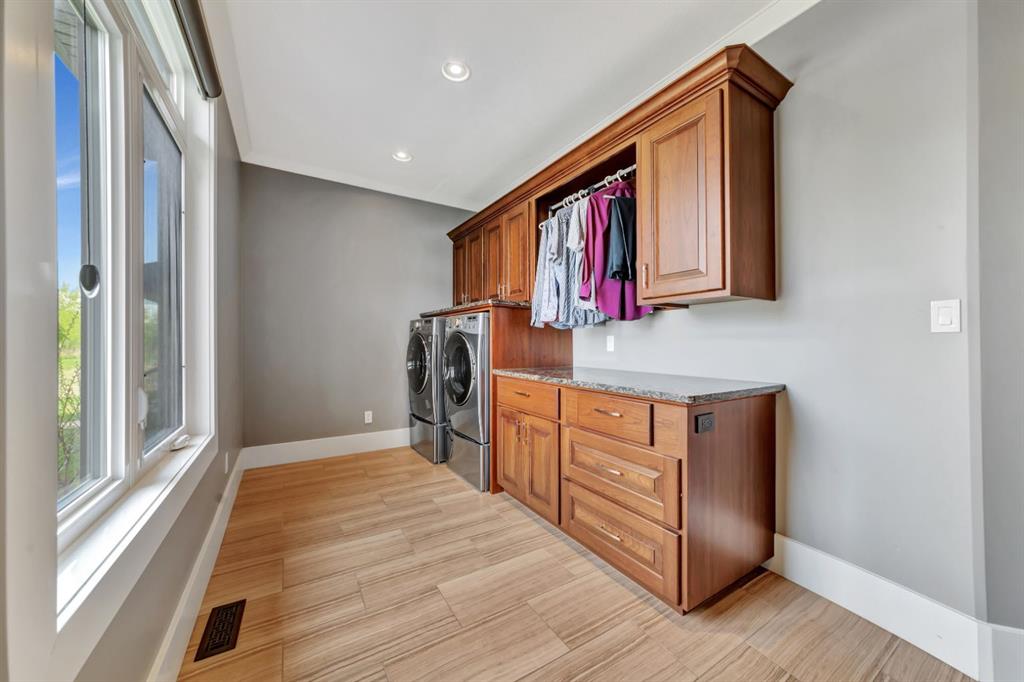 Discover the epitome of luxury living in this stunning residence, perfectly situated on a tranquil dead-end street. This beautifully crafted home combines elegance and comfort with exceptional custom details throughout. Upon entering, you’ll be welcomed by a light-filled, open-concept main floor that exudes sophistication. Custom craftsmanship is evident in every corner, from the intricate woodwork to the high-end finishes. Expansive windows fill the space with natural light, and the power blinds offer effortless privacy at the touch of a button. The gourmet kitchen is a chef’s paradise, featuring top-of-the-line Miele appliances, an oversized island, a gas stove, and a double oven. Whether hosting dinner parties or enjoying a quiet meal, the spacious dining area seamlessly flows from the kitchen, creating an inviting atmosphere for all occasions. Unwind in the elegant living room, where a cozy gas fireplace with exquisite stonework and a custom mantel serves as the focal point. The luxurious primary bedroom is a serene retreat, offering ample space, an open-concept walk-in closet with custom shelves and racks, and a sumptuous 5-piece ensuite. Pamper yourself with a jet and steam shower, a double vanity, a soaker tub, and heated tile floors for the ultimate spa-like experience. The main floor also boasts a spare bedroom, an office, a stylish 3-piece bathroom, and a large laundry room, all enhanced with central air for year-round comfort. Descend the custom spiral staircase to the lower level, where entertainment possibilities abound. A sprawling entertainment area awaits, complete with a large wet bar, a game space currently set up with a pool table, and a theatre room with a dedicated gaming table area. The basement also features an additional bedroom and a luxurious 4-piece bathroom with in-floor heating. An unfinished portion of the basement offers potential for further customization, including the addition of two more bedrooms or a private living suite for a caretaker, complete with laundry hookups.Car enthusiasts will revel in the oversized garage, designed with a drive-through bay, epoxy floors, floor drains, and a convenient 2-piece bathroom with in-floor heating. With space for a car hoist and four garage doors (one at the front and three at the back), the garage offers unparalleled versatility. The property provides abundant parking with a long driveway in the front and a spacious pad at the back, all finished with elegant stamped concrete and exposed aggregate.The meticulously designed exterior requires minimal maintenance, featuring lush artificial lawns in the front and back, a durable vinyl fence, and a composite deck with sleek glass railings. The covered back deck includes two gas hookups, ideal for outdoor cooking and entertaining, and a delightful 6-hole putting green for endless enjoyment. Don’t miss the opportunity to make this exceptional property your own. Schedule a private showing today! - Check out the 3D virtual tour.