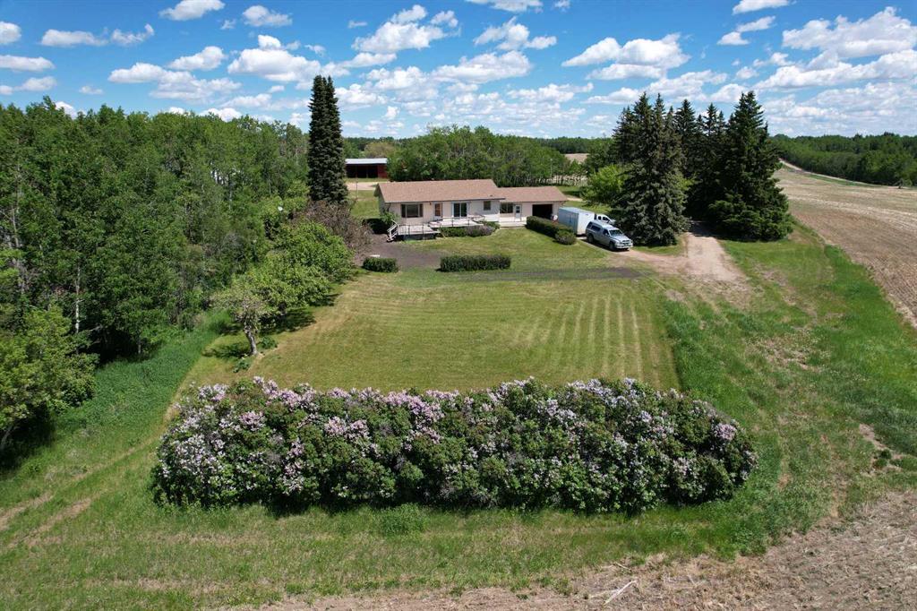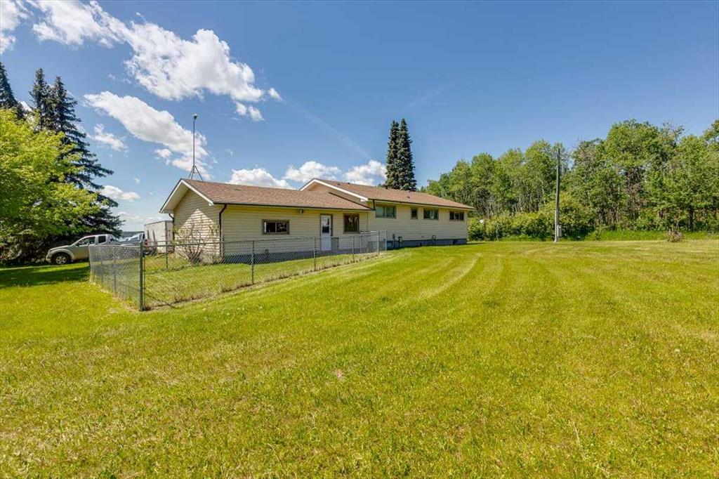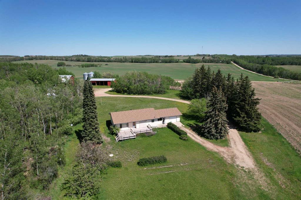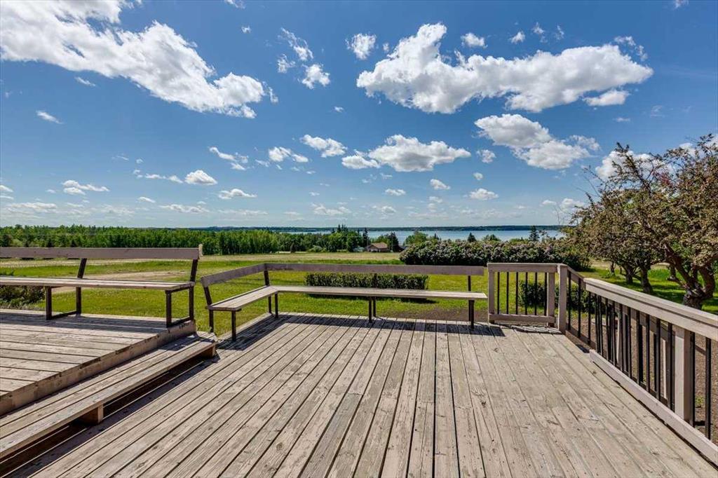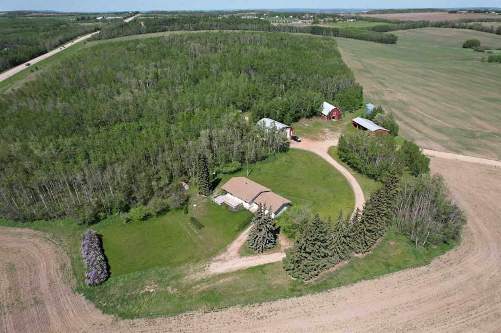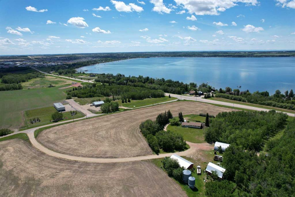 THIS LONG ADMIRED HOMESITE NOW RESIDES ON 15.96 PREMIUM LAKE AND TOWN VIEW ACRES. Here’s your opportunity to own this ideally located acreage with stunning lake, mountain, and town views. The yard sits high above paved Hwy 20 frontage and Central Alberta's most popular tourist-recreation lake destination – SYLVAN LAKE. Classic 1964 farmhouse - 1,185 SF 3 bed/2 bath bungalow with partial basement development and single garage attached by breezeway accessible from the front and back yard. The home has a solid layout that could easily be renovated, updated, or moved off to make way for your DREAM HOME on this site. Tiered front deck for entertaining and taking in the incredible views. The landscaped yard has a large shelter belt with mature trees and fruit trees, large lawns and recently constructed driveway and automatic entry gate. Chain-link fenced back yard area for children or pets to safely run and play. Outbuildings include a classic hip roof barn on concrete with power, 40'x56' heated arch rib Quonset on concrete with newer rollup door and welding plug, garden shed and 32'x60' open-faced shed with enclosed end section. 2 privately owned water wells for the house and the yard. Septic has been upgraded with a brand new large capacity tank (holding tank – no field currently). Great location - close to golf courses, public boat launch across the road, town, schools and all that Sylvan Lake has to offer. BONUS - annual income includes surface lease revenue from a Town of Sylvan Lake water well ($9033.53 +/- annual with 2% annual increase). DO NOT MISS THIS OPPORTUNITY!!