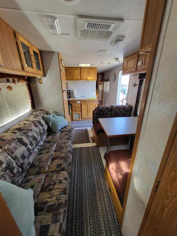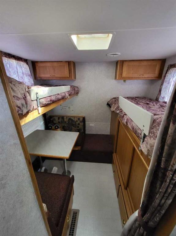 Welcome to this wonderful Lake property at 21 Sunset Lane in the community of Buffalo Sands! This well situated lot has 60 feet of frontage and backs onto the green space and serene pond. The pond, with fountains, provides serenity in the summer and in the winter becomes a curling ring, skating rink providing great fun for everyone. Perfect location for a future walkout or any other style of retreat your heart desires with no building time frame. Power is already on the property and equipment is provided to put in your sewer and water. This treed property includes a 29' 2001 Vanguard Legend RV that sleeps 8 with dining table, kids table and couch pulled out. Families will love this community with two beaches , private docks, paved roads, volleyball court, playground walking paths and only a 3 minute walk to beach and boats. Buffalo Lake is one of the largest lakes in southern Alberta and is well known for its many recreational activities both summer and winter. The nearby towns of Erskine and Stettler offer many varied amenities including : Golf, Recreational facilities and shopping. .See you at the Lake!