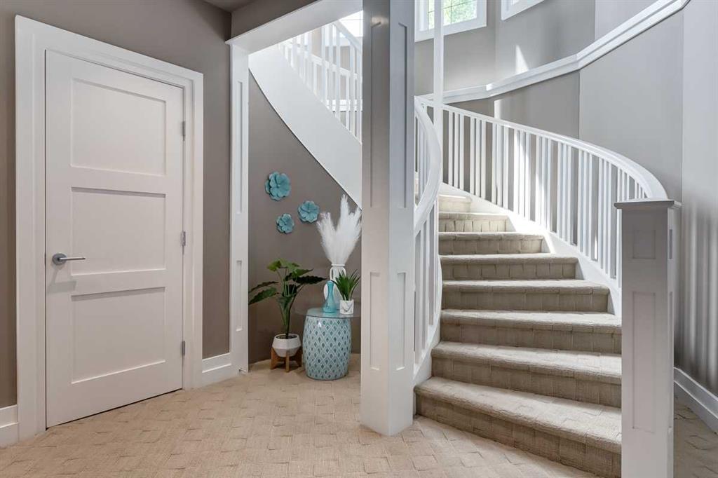 * Sellers may consider trade * LAKEFRONT LUXURY! Welcome to "HERITAGE LAKE SHORES," one of the most coveted locations on this gorgeous lake. Nestled on a QUIET CUL-DE-SAC, this European-inspired residence is one of only 66 exclusive lakefront properties in Heritage Pointe, offering a PERFECT BLEND of luxury and tranquility. Spanning 6,383 sq. ft. of refined living space, the home features 5 bdrms, 5 baths & nearly 100 feet of PRISTINE LAKE FRONTAGE with a PRIVATE DOCK, all showcasing exceptional architectural elegance. The GRAND two-story turret, paired with an arched stone entry & stands as a hallmark of European design, offering a warm and inviting welcome. The exterior, finished in stone and stucco, blends seamlessly with its natural surroundings. A TRIPLE CAR attached garage with epoxy flooring & a rubber driveway adds both functionality & a polished finish. Upon entering, you are greeted by an elegant SPIRAL STAIRCASE, complemented by timeless TRAVERTINE flooring, a stunning CHANDELIER, and UNOBSTRUCTED LAKE VIEWS. The expansive GREAT ROOM, with its SOARING 20-foot TRAY CEILING & dual-sided fireplace, creates a cozy chalet-style living area that offers STUNNING lake views. The GOURMET KITCHEN is a chef's dream, featuring a wrap-around design with GRANITE countertops, floor-to-ceiling cabinets, and a spacious breakfast nook with PANORAMIC LAKE VIEWS. Top-of-the-line appliances, including a Sub-Zero fridge, NEW (2025) WOLF gas range top, dual dishwashers, a wine and beverage area, make this space ideal for both casual dining & entertaining. The ELEGANT DINING area is a spacious, inviting setting to host those large family dinners or holiday gatherings. The main floor features a home office / den with lake views, fireplace, built in bookshelves – the perfect place to work from home or curl up with a good book! The main floor offers added convenience of a large main floor laundry (New Washer / Dryer 2025), half bath and mud room. This FIVE BEDROOM home has FOUR BEDROOMS located UPSTAIRS, connected by a walkway that overlooks the lake. The PRIMARY SUITE is grand in size, offering full LAKE VIEWS and a SPA-LIKE 5-piece ENSUITE with a soaker tub, double vanities, and a spacious walk-in closet with CUSTOM shelving. The second bedroom upstairs has a 3 pc ensuite bath, and the third and forth bedrooms upstairs share a 5pc main bathroom, making it ideal for family living. The WALK OUT BASEMENT is an entertainer’s dream, with a HOME THEATER room (update 2026) with an Epson projector, 120” (10’) screen, built in speakers and surround sound system, set up perfect for those home movie nights! The entertaining continues with a large family room, dry bar, and outdoor living space. The 5th bedroom is currently set up as a crafting room – with large windows, it makes a great guest room or craft room. The fully landscaped yard has mature trees, a private dock and sand beach, perfect for enjoying fun on the waterfront. The community offers year-round activities!