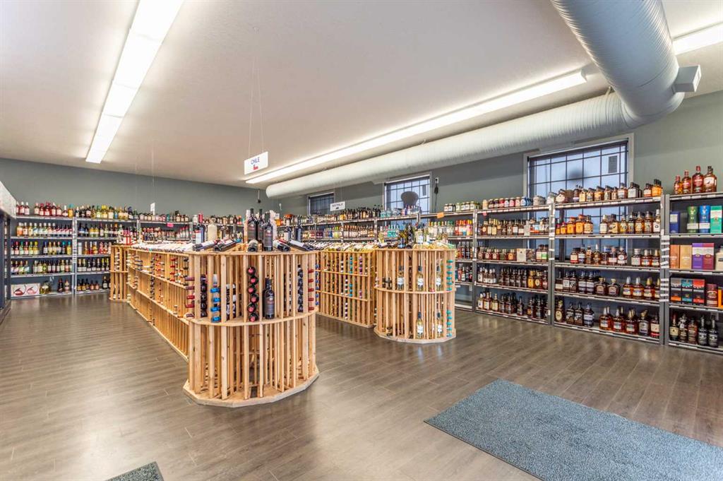 This is an awesome business opportunity for investors or entrepreneurs, right in the bustling town of Stettler, AB. This successful liquor store is complete with the building on a 100' X 150' lot, so you don’t have to rent. The building was constructed in 2014, and you won’t find a much better location. Situated right on the busy hiway 12, this lot has high exposure, both to local traffic and people just passing through. There is a large store front, with bright overhead lighting and durable flooring. The shelving is included and the custom-built wine shelving is a brilliant addition. The front desk is L-shaped and has plenty of display space on the counter and cabinets underneath. The walk-in cooler measures 23' x 20' There is an office directly behind the front desk, which also has a long work surface and cabinets. The back storage room has space for shelving and pallets. The washroom and mechanical room are accessed here as well as a door into the cooler making restocking easy. There are double doors opening up to the back of the lot for incoming shipments. There is also a security system, cash register, and everything you need to carry on with business. The exterior is attractive with a covered entry, rock along the bottom, and a sidewalk along the front. There is plenty of paved parking and there are access points off of hiway 12 and 60th street. There is a 14' x 32' garage for storage and there is a spot for a dumpster (fenced in on 3 sides). This business has been successful for many years and has a consistent customer base.