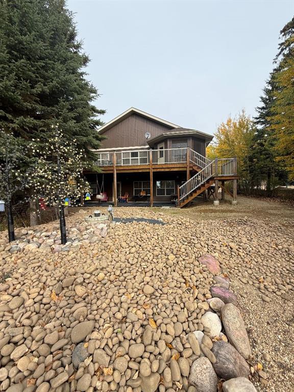 This cottage has 2,120 square feet of finished living space within the exclusive gated community of Hilliards Bay Estates, situated on Lesser Slave Lake, Alberta's second-largest lake. The second floor features an inviting kitchen, spacious living room, and master bedroom, all designed to maximize the lake views. The walk-out basement includes two additional bedrooms, a full bathroom, and a cozy family room, making it perfect for gatherings. You'll appreciate the generous front entrance with ample storage for outerwear, as well as a walk-in pantry and a large upper deck for outdoor enjoyment. The home comes furnished and features convenient amenities such as hot water on demand and heavy-duty recycled rubber tiles in the walk-out area, ensuring durability and low maintenance. An octagonal shelter, or enclosed gazebo, on the upper deck, is equipped with a fire pit, creating an ideal spot for friends and family to gather and enjoy each other's company. The property is thoughtfully landscaped with mature trees for added privacy and includes a dedicated outdoor fire pit area. Additionally, there is a shed for extra storage, making this property both functional and inviting with minimal yard upkeep required. Call today to book your lakefront resort tour. Click the Video Link to see more.