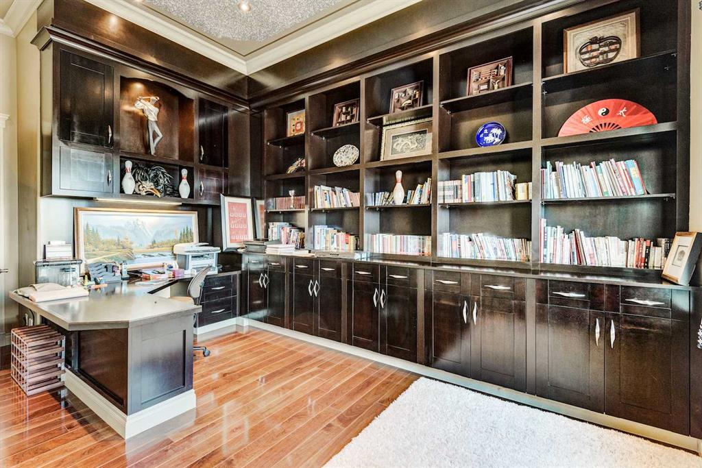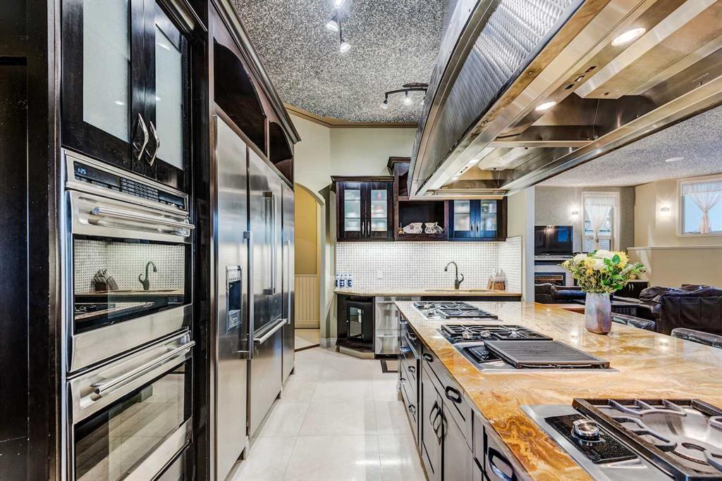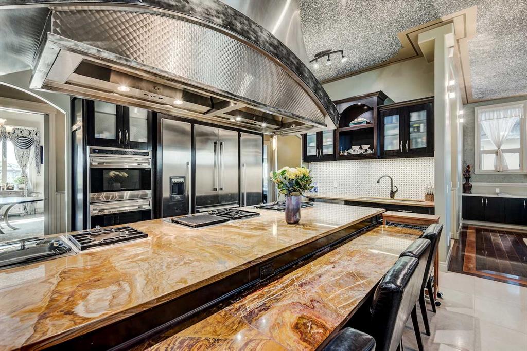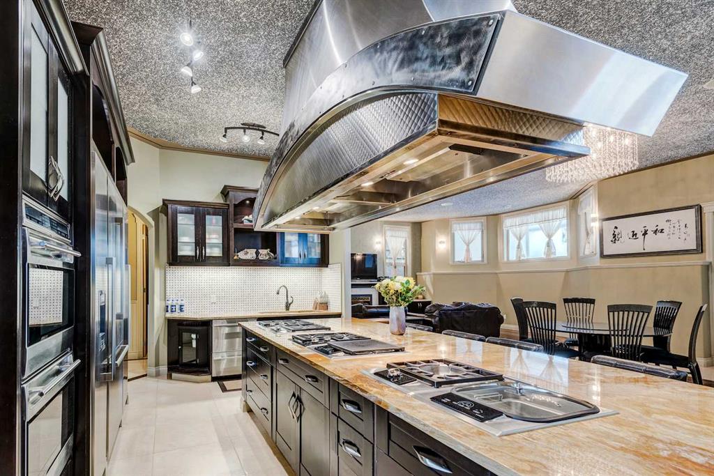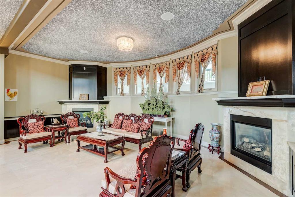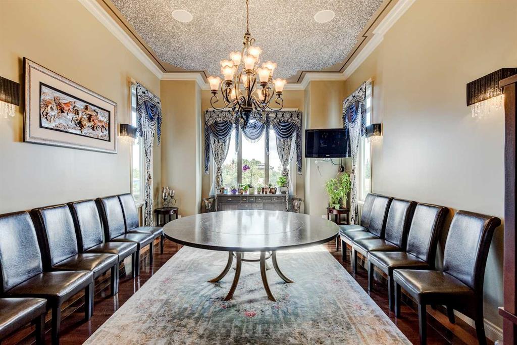 This architectural masterpiece offers an impressive fully furnished 13,500 SF of lavish living space, including a sprawling 2,700 SF gymnasium. A grand foyer, adorned with an imperial spiral staircase, warmly welcomes your guests. High ceilings grace this abode, featuring 7 bedrooms, 6 ensuite bathrooms, 3 additional bathrooms, an exercise room, a theatre room, and a formal dining room. This custom-designed residence offers an array of luxurious amenities, meticulously crafted for your entertainment and pleasure. The interior spaces are versatile, accommodating everything from formal dinners and cocktail soirées to movie nights, fully equipped karaoke system and lively games of basketball or badminton. The main level also boasts a bright sitting area with a well-appointed bar, a games area, and a magnificent sunroom. The open gourmet kitchen comes equipped with high-end built-in appliances, satisfying even the most discerning chefs. The primary bedroom retreat is a true oasis, complete with a cozy sitting area, a balcony, a walk-in closet with custom organizers, a soothing waterfall shower, and a rejuvenating Jacuzzi tub. Outside, a multi-level deck and terrace provide covered and open spaces for outdoor entertainment, all while offering panoramic views of the rolling Calgary hills. The private backyard is enveloped by lush landscaping and towering trees. With a 5-car insulated oversized garage and ample paved parking for guests, convenience is never compromised. Ideally situated, this home is just a short 5-minute drive from Bearspaw Golf Club and only 10 minutes away from Calgary's shopping, restaurants, schools, and more. Designed with the principles of Feng Shui, this estate fosters balance and harmony between you and the natural world that surrounds it. Don't miss the opportunity to make this stunning property your own.