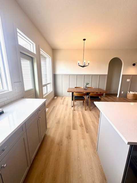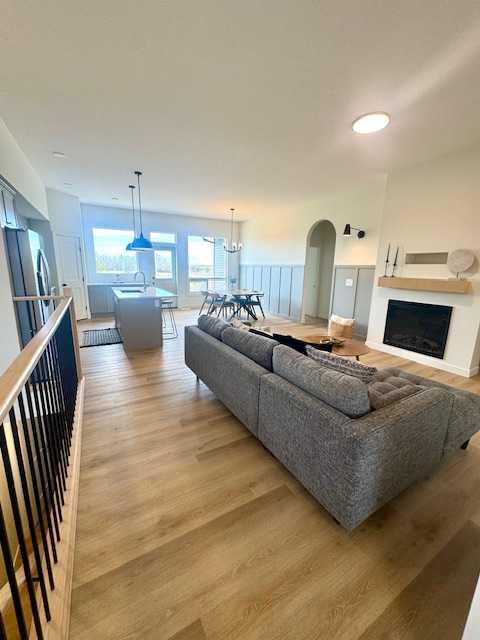 Beautiful 5 bedroom and 3 bathroom bungalow located in Kensington!!! This 1395 sq ft home has an amazing view!!! The kitchen has grey cabinets and an island, granite counter tops, a large undermount sink, white subway tile, and a corner pantry. The dining area has a very nice view of the pond and a walking trail. The living room has an electric fireplace. Vinyl plank flooring through-out the entire home!!! The master bedroom has a walk-in closet with custom built-in shelving, 3 piece ensuite with a double walk -n shower, and a double vanity. The 2nd bedroom is a good size and main floor laundry room with storage. The basement will be finished with 3 more bedrooms, a full bathroom, and a family room. The attached triple garage is 23 x 26. The backyard is landscaped, deck and access to the pond and walking trails. HOA fee of $175/per month and includes water, snow removal, and park/playground/walking trails maintenance. Don't miss out and book your showing today!!!
