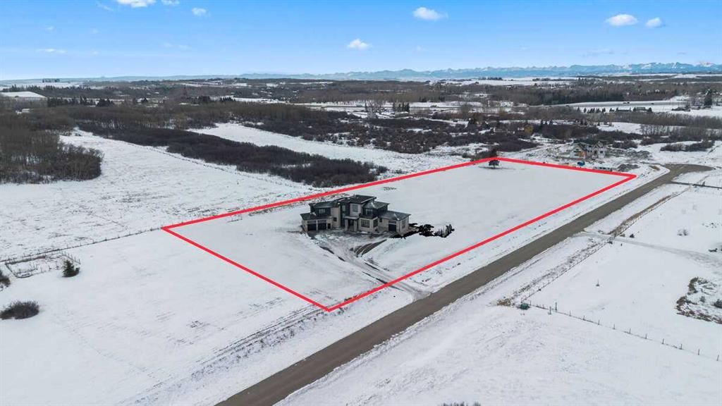 For more info, please click the "More Information" button. Welcome to an extraordinary blend of modern elegance and countryside charm. Built in 2023, this stunning 6-bedroom, 5.5-bathroom estate offers over 7,200 sq. ft. of meticulously designed living space, nestled on a picturesque 5-acre property. More than just a home, it’s a peaceful retreat surrounded by nature, yet conveniently close to Calgary’s South Campus hospital, top-rated schools, and urban amenities, offering the perfect balance of serene country living and city convenience. As you enter through natural flat stone pillars, a grand entryway welcomes you into warm and expansive living areas set against the breathtaking backdrop of the Rocky Mountains. The living room features a towering stone fireplace that serves as a centerpiece, while a glass-surround walkway bathes the space in natural light. Telescoping glass doors seamlessly connect indoor and outdoor spaces, making it ideal for entertaining or relaxing with loved ones. The chef’s kitchen is the heart of the home, featuring double islands perfect for hosting, high-end appliances including a combination steam oven, and two butler’s pantries. These pantries provide ample storage and include access to a hidden workspace and a single garage, adding both functionality and convenience to the kitchen’s design. The main-floor primary suite is a true sanctuary, boasting floor-to-ceiling west-facing windows that frame stunning views. The spa-inspired en-suite includes luxurious stone-accented walls, an oversized soaker tub, and a walk-in shower, while the custom-designed closet caters to a modern lifestyle with ample space and organization. Upstairs, three spacious bedrooms, each with walk-in closets and private bathrooms, provide comfort and privacy for family or guests. A striking glass walkway connects a custom home office and a cozy family room, creating a unique and inviting upper-level retreat. The lower level is designed for both relaxation and activity. Highlights include a home gym with a pro-height basketball hoop, a luxurious steam shower for post-workout relaxation, an additional bedroom, and a versatile flex room that opens directly to the backyard. The outdoor space offers endless possibilities. The expansive backyard is a blank canvas awaiting your vision—whether it’s a vibrant garden, a playground, or even space for animals. The property’s 5-acre expanse ensures privacy and room to customize. Behind the beauty of this estate lies impeccable functionality. Two mechanical rooms house high-end systems, including advanced A/C, on-demand hot water, and multiple furnaces and boilers, ensuring comfort year-round. Premium finishes, custom flooring, and thoughtful details elevate the home’s design. This property is more than a residence - it’s a lifestyle. Whether hosting grand gatherings, seeking a tranquil retreat, or making cherished family memories, this estate delivers it all. Don’t miss your opportunity to own this incredible country home.