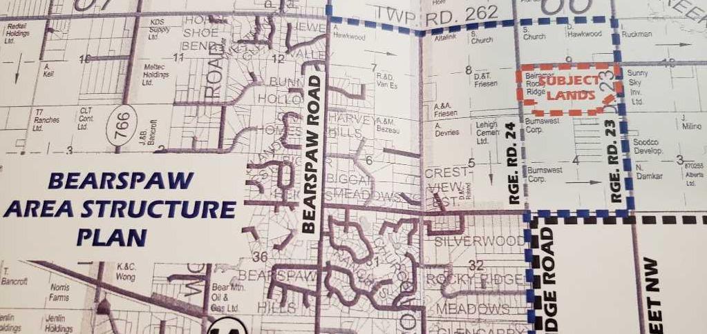 Sellers would look at vendor financing (VTB). This area is being identified as a future residential growth area between Calgary and Bearspaw, Currently zoned AG, Prime development location. This property provides an excellent opportunity for a developer/investor.281 ACRES of land. It is inside the Bearspaw Area Structure Plan. .Located 1/4 mile north of the Calgary city limits near the northwest Calgary community of Rocky Ridge Ranch. Between Rocky Ridge Road and Range Road 23. .- This land is extremely well situated to benefit from the continuing expansion around it. With each major announcement, the land becomes more valuable. The MD of Rocky View has set records for development to meet strong real estate demand in the surrounding areas. This property a minute from Calgary.. This property is located within an approved Area Structure Plan in Rocky View County