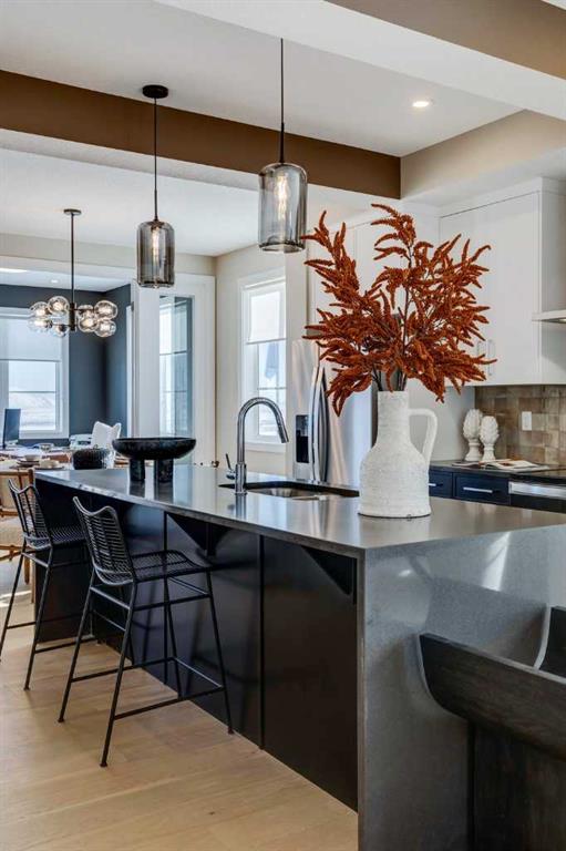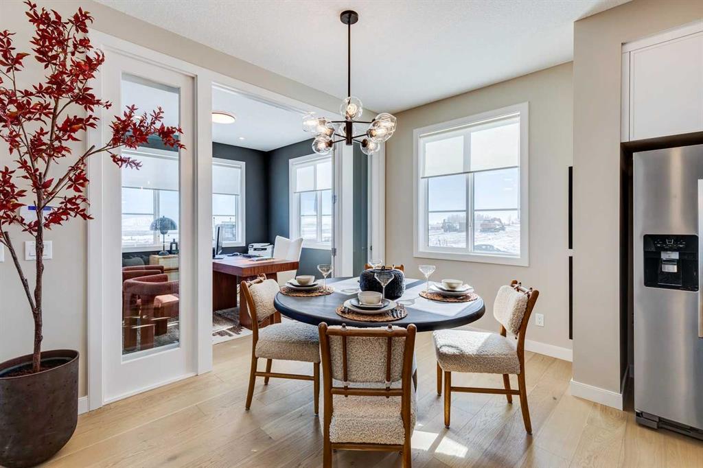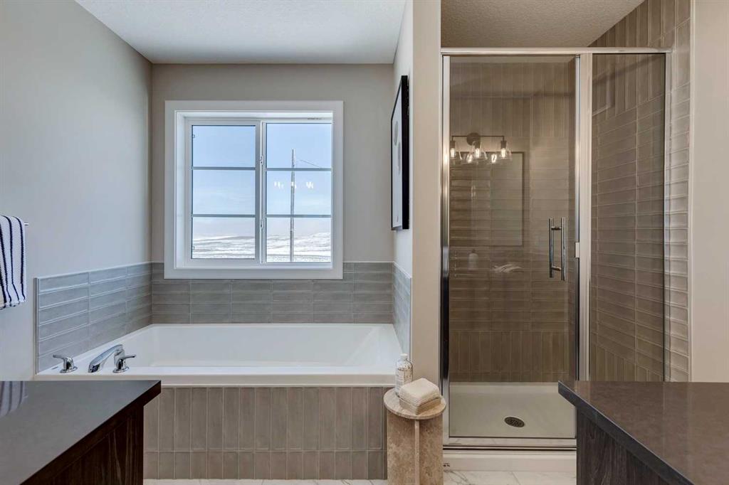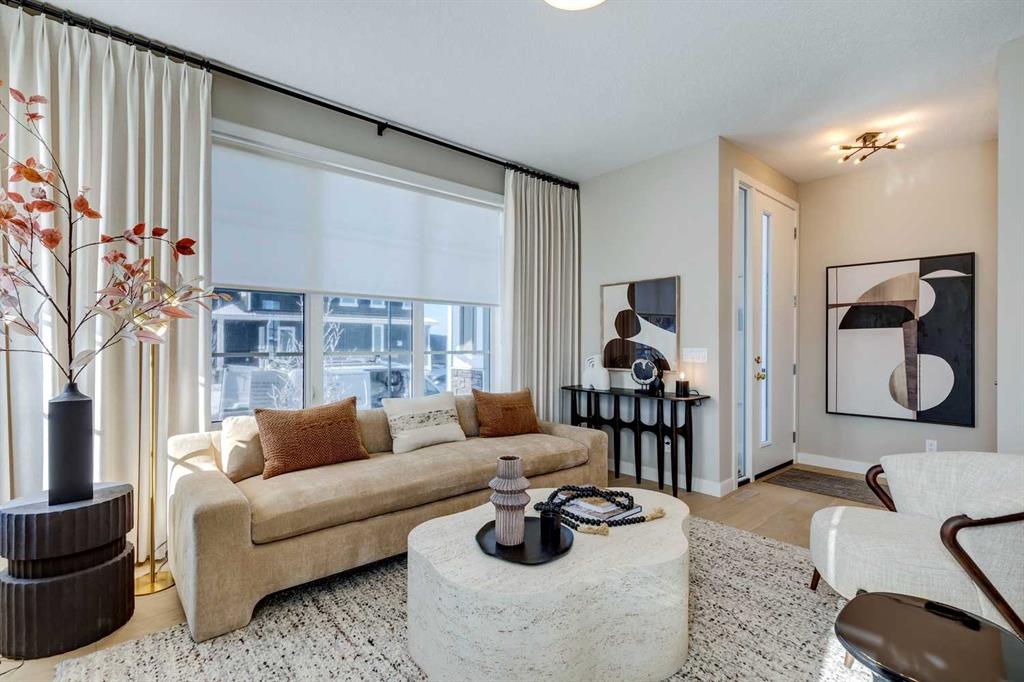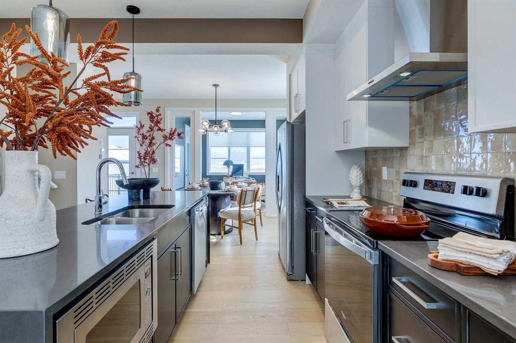 NEW PRICING! IMMEDIATE POSSESSION - CONFIRMED BY THE BUILDER. BRAND NEW HOME by Douglas Homes, Master Builder in central Greystone, short walking distance to parks, the Bow River, major shopping & interconnected pathway system. Featuring the Fernie 3 with main floor rear enclosed Flex Room & separate side entry on an R-MX zoned home site for POTENTIAL future lower level suite. NOTE: a secondary suite would be subject to approval and permitting by the city/municipality. This gorgeous 3 bedroom, 2 & 1/2 half bath home offers over 1510 sq ft of living space. This home is located on a River Avenue which provides immediate access to the interconnective pathway system, perfect for those looking for a outdoor lifestyle. Loads of Designer & upgraded features in this beautiful, open floor plan. The main floor greets you with 8' front door, soaring 9' ceilings, oversized windows, built-in niches & fireplace. Gleaming Hardwood floors flow through the kitchen, hall & nook adding a feeling of warmth & style. The two sided Kitchen is completed with Quartz Countertops, two tone Kitchen Cabinets, 42" uppers with decorative enclosed bulkhead, plenty of drawers including Pots & Pan drawers, twin accented beam ceiling detail, soft close doors & drawers, convenient tech space/desk with twin drawers & new stainless steel Kitchen appliance package. At the rear of the home you'll find an enclosed bright Flex Room with double 8'0" French Doors for the work from home crowd. Upstairs you'll find a generous Primary Bedroom with Ensuite - Quartz Counters with double vanities, 6'0" soaker tub with large window above & tiled skirting/trim, 5' shower with Designer tiled walls, private water closet all completed with ceramic tile flooring & large walk-in closet. The 2nd floor is completed by two good size additional bedrooms, main bath tub/shower combination with tiled walls, Quartz countertop, undermounted sink & ceramic tile flooring. You will love the convenience of 2nd Floor Laundry for side by side laundry completed with ceramic floor tile. This is a very popular plan, great for young families, investors or the down sizers. Spacious, Beautiful and Elegant! The perfect place for your perfect home. Call today! Photos are from prior build & are reflective of fit, finish & included features. Note: Front elevation of home & interior photos are for illustration purposes only. Actual elevation style, interior colors/finishes, & upgrades may be different than shown & the Seller is under no obligation to provide them as such. Directions: Directions: Come to the Show Home first located at 500 River Avenue. Showings only during Show Home hours & days. THIS HOME IS UNDER CONSTRUCTION