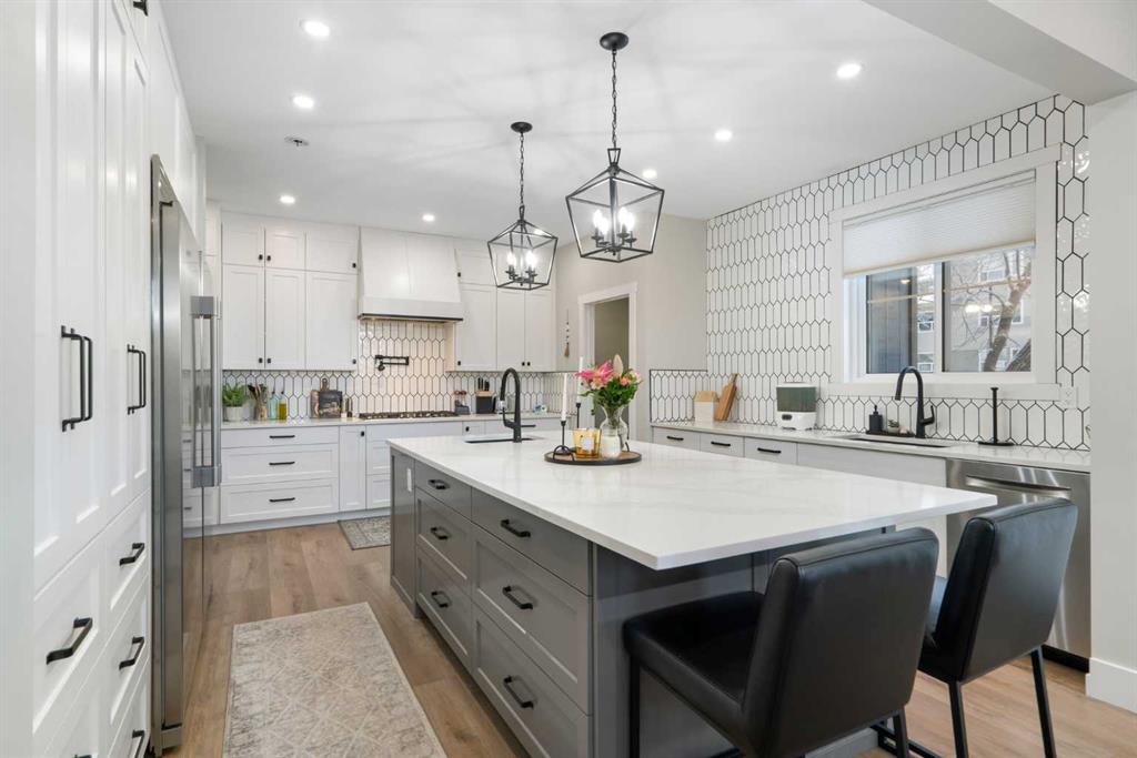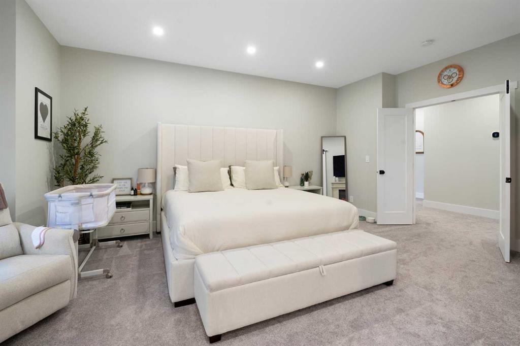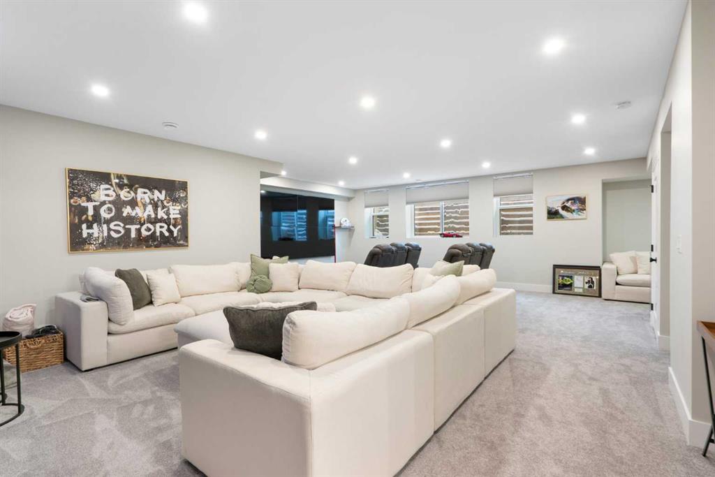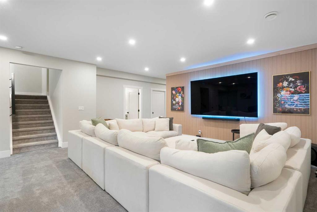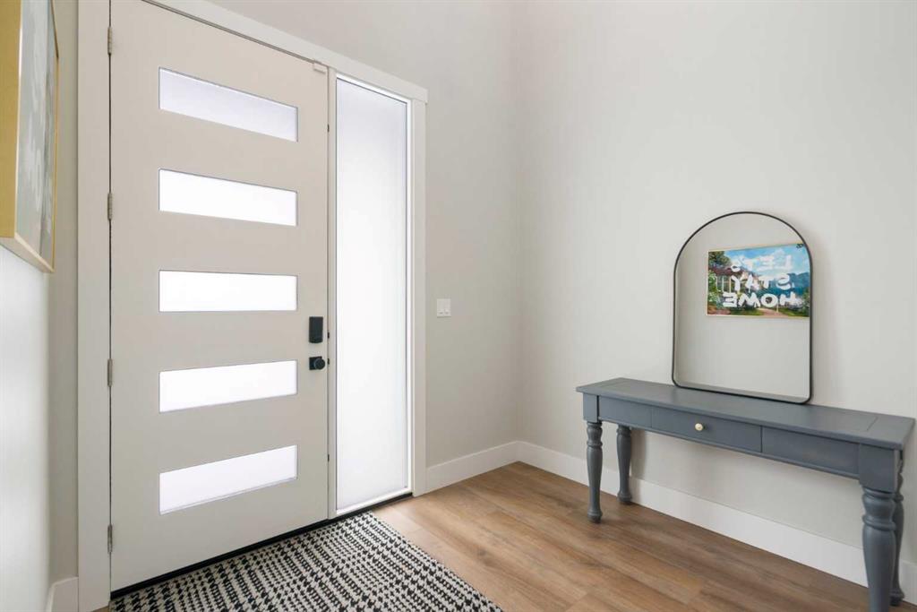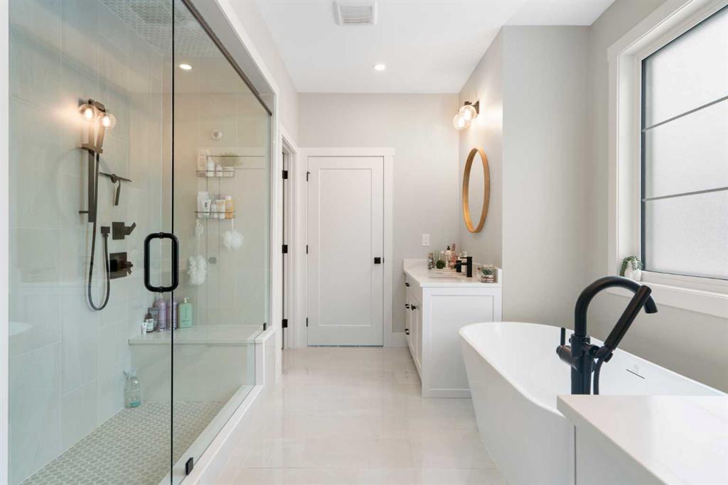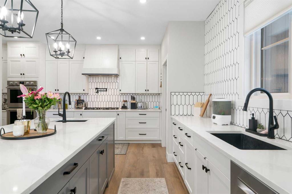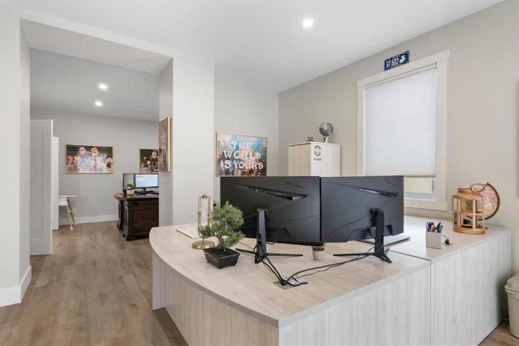 Welcome to this architectural masterpiece by Studio Wolf Designs in one of Airdrie’s most sought-after locations - The Village. This nearly new modern ranch-style estate offers an unparalleled blend of luxury, design, and functionality. Situated on an expansive 6,490 sq. ft. CORNER LOT, this home spans 3,704 sq. ft. above grade plus a fully developed 1,612 sq. ft. basement, bringing the total living space to over 5,300 sq. ft. As you enter, be captivated by 18-foot soaring ceilings in the foyer and living room, complemented by a custom-designed fireplace and surround. The gourmet kitchen is a chef’s dream with premium appliances featuring a full side-by-side freezer and refrigerator, cooled beverage centre, built-in gas cooktop, dual built-in convection and conventional ovens. Two kitchen sinks make dishes a breeze, while keeping the island sink free of clutter for your family and guest’s comfort. The oversized walk-in pantry and high-end finishes elevate this kitchen to its ultimate potential. The main floor also offers a private office/den area, flex room with courtyard access, 2-piece bathroom, and spacious mudroom leading to an oversized double attached garage with custom epoxy flooring. Upstairs, an open rail gallery provides a panoramic view of the main floor and vaulted ceilings. The upper level is designed for both comfort and sophistication, boasting 4 spacious bedrooms, including a large primary bedroom with a spa-like ensuite featuring a custom glass shower, freestanding bathtub, dual vanities, and a large walk-in closet with built-in storage. Two bedrooms share a Jack-and-Jill ensuite, while the fourth bedroom enjoys its own private 4-piece bathroom. A good size laundry room with built-in sink and folding area, and a bonus room with a covered balcony and quiet sitting area complete the upper level. The fully developed basement is an entertainer’s dream - offering a spacious recreation room, bar area, 3-piece bathroom, fifth bedroom, and sixth bedroom-turned-gym with sauna. Step outside to your private backyard retreat featuring new fencing and professional landscaping. This smart home is fully equipped with premium security and technology, including a full-perimeter surveillance system with 2TB storage, 12MM smash-proof window film & tint for added privacy, and custom exterior GEM lighting. Additional upgrades include two AC units and custom window coverings throughout. Nestled within walking distance to Airdrie’s downtown core, top-rated restaurants, shops, Jensen Park, Plainsmen Arena, and the Airdrie Farmers Market, with quick access to Highway 2, this residence offers the perfect blend of luxury and convenience. Experience the finest in modern ranch-style living—this exceptional estate is one of Airdrie’s most coveted opportunities.