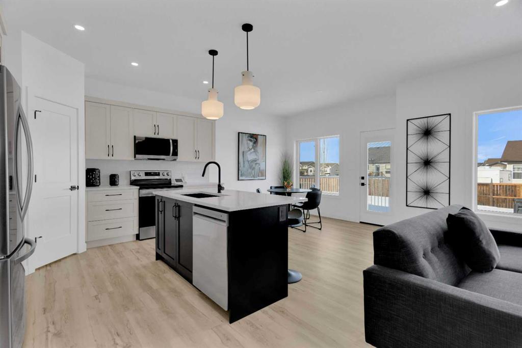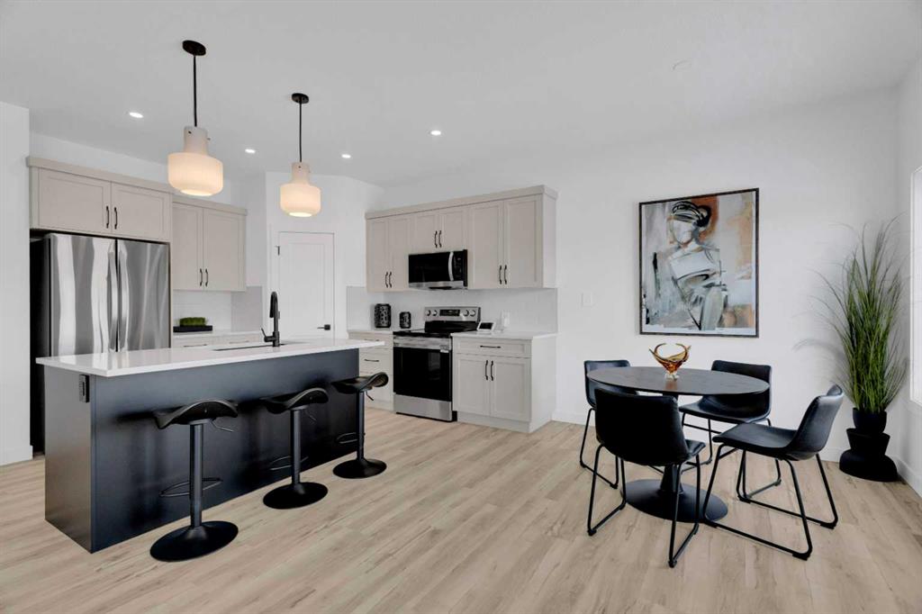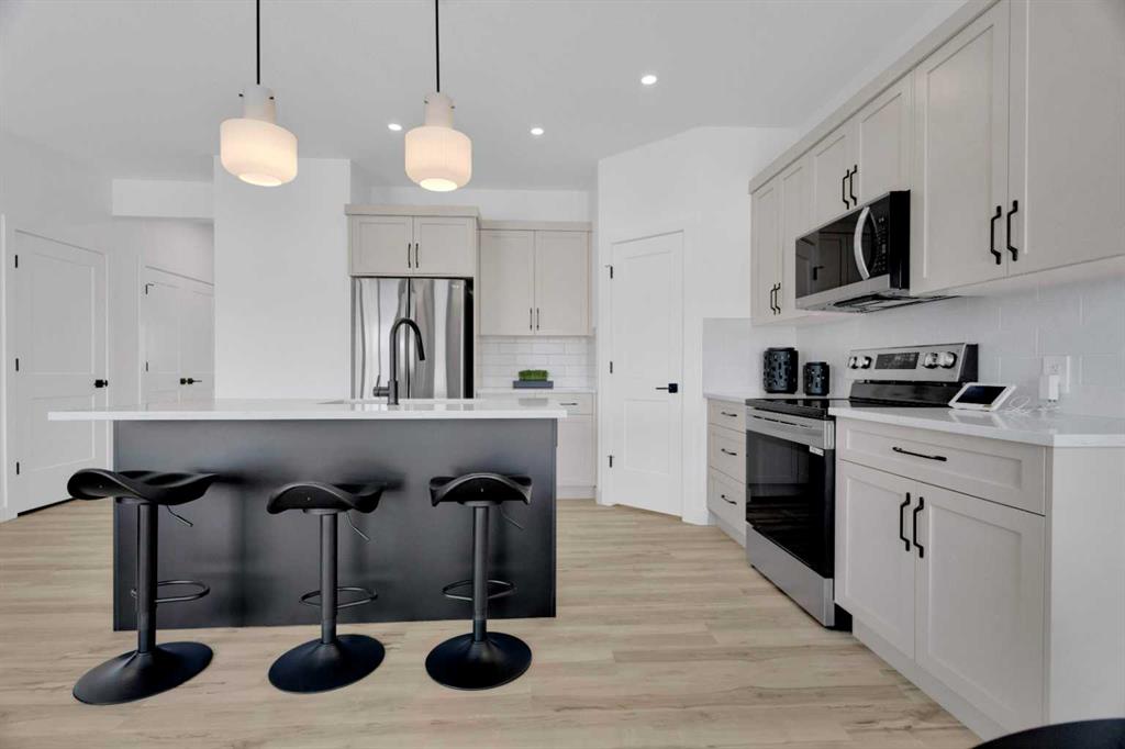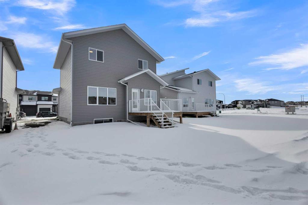 Modern Elegance Meets Everyday Comfort in This Stunning Show Home! Welcome to this beautifully designed two-storey show home, offering 1,650 sq. ft. of thoughtfully crafted living space. With an inviting open-concept layout and soaring 9-foot ceilings, this home is perfect for modern living. The stylish kitchen is a chef’s dream, featuring sleek quartz countertops, stainless steel appliances, two-toned cabinetry, and a large island—ideal for entertaining. A walk-through pantry ensures plenty of storage and easy access. The durable luxury vinyl plank flooring adds a touch of sophistication while being easy to maintain. Step outside onto the spacious deck, perfect for summer barbecues or relaxing evenings. Inside, the mudroom provides extra convenience, leading to an attached double car garage for all your storage needs. Upstairs, the primary suite is a private retreat, complete with a 3-piece ensuite for added comfort. Nestled in a thriving community with a charming small-town feel, this home is surrounded by growing families and endless opportunities to create lasting memories. Built by Abbey Platinum Master Builder, this home blends quality craftsmanship with modern design.