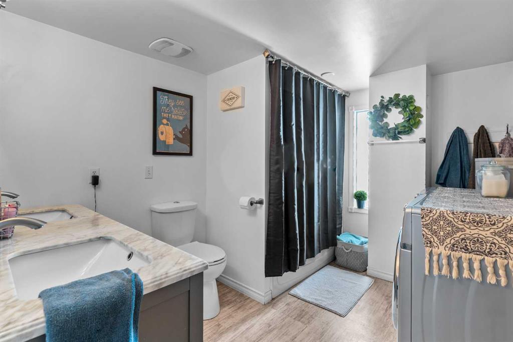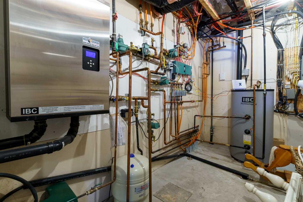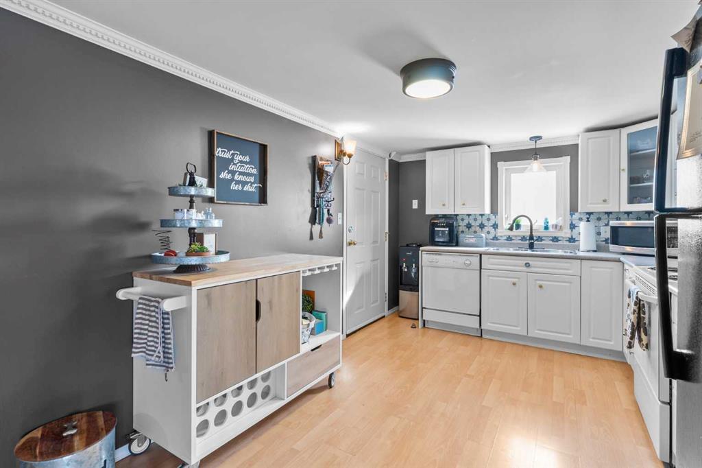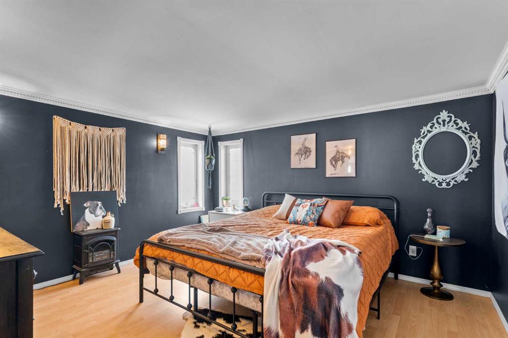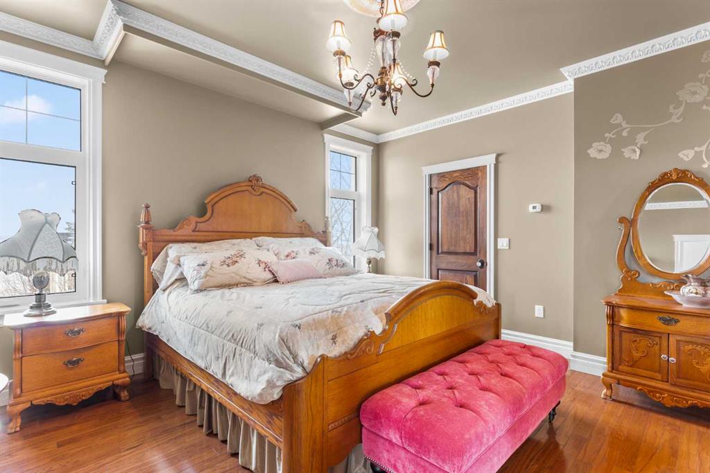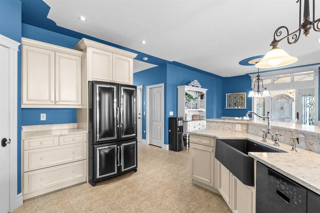 This beautifully landscaped 5.49-acre acreage offers exceptional potential for a small/medium-sized business and additional housing for extended or blended families. Located 5 minutes north of Didsbury, AB, and 10 minutes south of Olds, AB, just off Highway 2A, it boasts gorgeous mountain views. The main house, with 2,017 sq ft of French country charm, features crown moldings, barn and French doors, and hardwood floors. The spacious kitchen, updated in 2023, has a two-tiered island, quartz countertops, a farmhouse sink, hard wood floors and ample cabinet space. The main floor also includes a dining room, living room, covered maintenance-free veranda with an outdoor kitchen. Master bedroom with a 4-piece ensuite, fireplace, soaker tub, and walk-in closet. Additional spaces include a 2-piece bath, second bedroom, laundry room, mudroom, and garage entrance. The fully finished walk-out basement provides 1,735 sq ft, featuring 2 bedrooms, a media room, a 4-piece bath, a playroom, and storage. ICF construction, crown moldings, fresh paint (2023), and in-floor heating throughout enhance the home's appeal. The oversized, heated double garage has a paved driveway. The property includes a 6,400 sq ft shop (128' x 50') with three-phase power. Features include a 50’x24’ drive-through wash bay with 12’ overhead doors, a 50’x24’ welding bay with a 16’ overhead bay door and crane. 50’x80’ main shop area with two 14’ bay doors and 16’ clearance. The shop also has a wood workshop, paint storage, front office space, and a 3-piece bathroom. A new boiler (2024) ensures in-floor heating. Above the woodworking shop, a spacious living area includes a kitchen, laundry, 4-piece bathroom, 3 bedrooms, a master bedroom with a walk-in closet, and a storage room. The mezzanine adds additional living space, perfect for additional family members. This exceptional property has been meticulously maintained and offers an unparalleled combination of country residential comfort and business potential. Whether you are seeking a spacious family home, a live-work opportunity, or a combination of both, this acreage provides a rare and sophisticated setting with limitless possibilities.