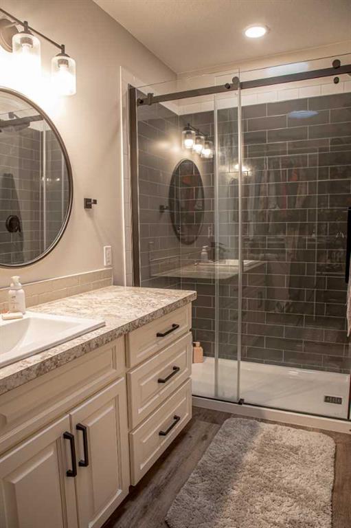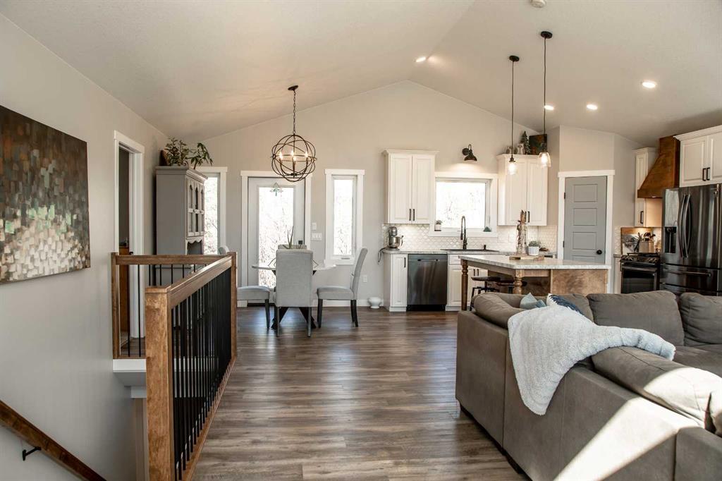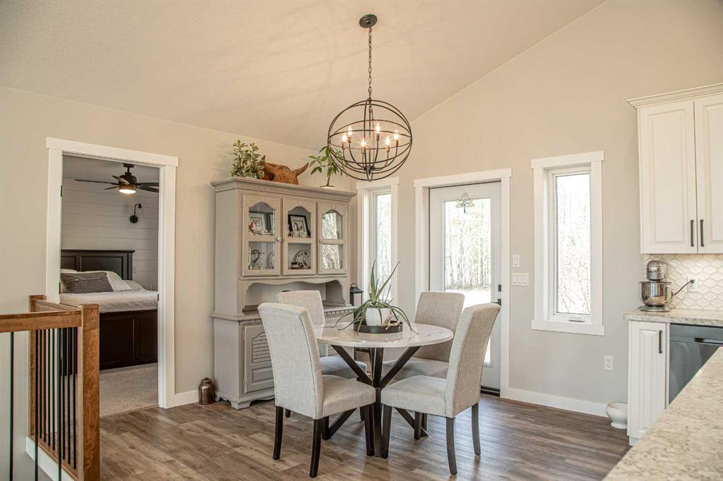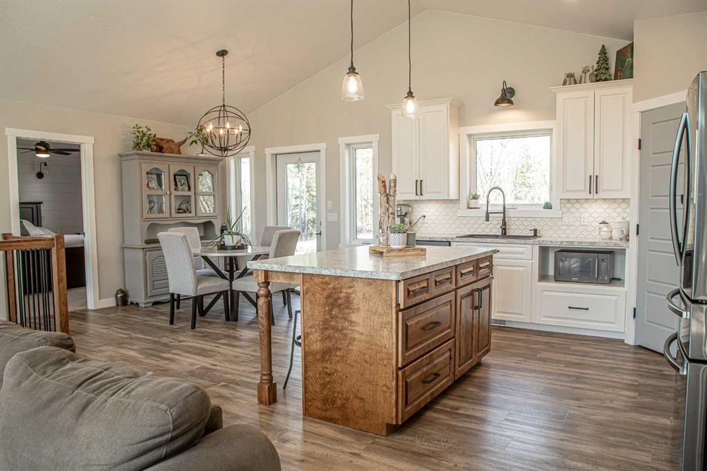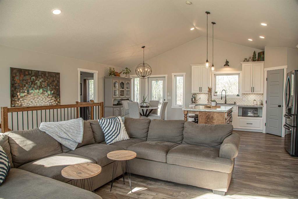VENDOR MOTIVATED!!!! THE ABSOLUTE DREAM PROPERTY CAN BE YOURS !! The endless fresh air and privacy, the peaceful elements relay a life lived with balance in nature, you are bound to find and so much more all on this amazing 12 Acre property, only minutes from High Level. Before entering this warm and inviting modern farmhouse home, spend a quiet moment savoring the beauty and tranquility of the peaceful setting and the soft whispers of the winds in the trees. The home offers over 2800 sq ft of living space, featuring 5 bedrooms and 3 bathrooms. From the moment you walk in you will enjoy the open concept of this home with soaring vaulted ceilings , the oversized Sitting Room featuring a wall of windows to enjoy the morning sunrises, a very handsome fireplace with a beautiful wood mantel and shiplap, leading to the DREAM spacious kitchen with tons of cabinetry, complete with a Stunning custom wood island, tiled backsplash, top of the line appliances with a gas range, a great corner pantry and the perfectly placed sink overlooking the backyard thats home to garden space galore and mature fruit trees . Off the kitchen you will find the Primary featuring a walk-in closet with STUNNING barn door and ensuite boasting a beautiful tiled walk-in shower . On the other side of the wing you will find 2 more bedrooms and the main bathroom. Leading down the stairs to the inviting lower level is where you'll find another 2 bedrooms, ful bath with double sinks and a very spacious Entertainment Room or Drop down the big screen and enjoy hours of bonding , entertaining and games nights with the most amazing storage area , a Cold Room and finished Laundry Room .the good life is certain!! Add to this many outbuildings including a older shop with radiant overhead heat,including fencing for all your animals , you are sure to make all your outdoor dreams come true. Enjoy the beautiful northern evenings around the fire with family and friends laughing and making memories that will last a lifetime. Located just north-east of town! This warm and elegant home awaits your admiration, the ONLY question is: will you be the lucky one ? really are just WAAAY too many features to list ! It's a must see!!