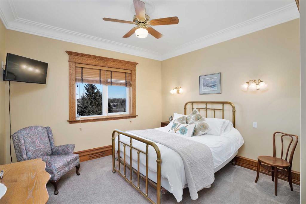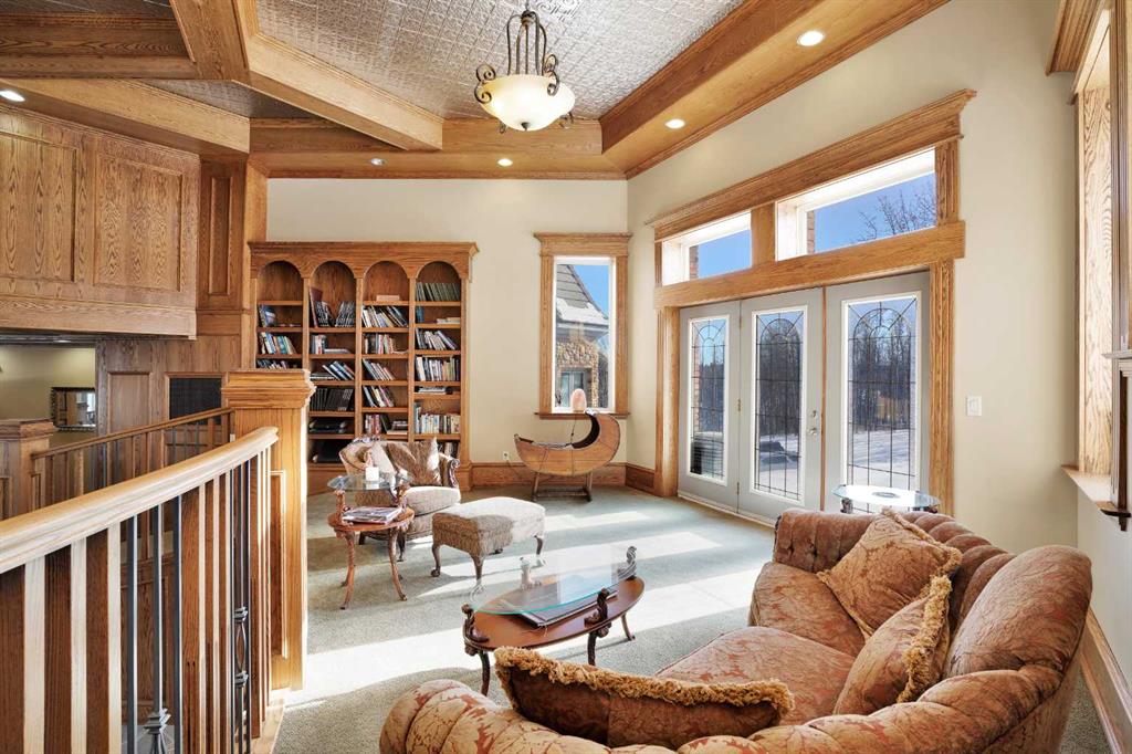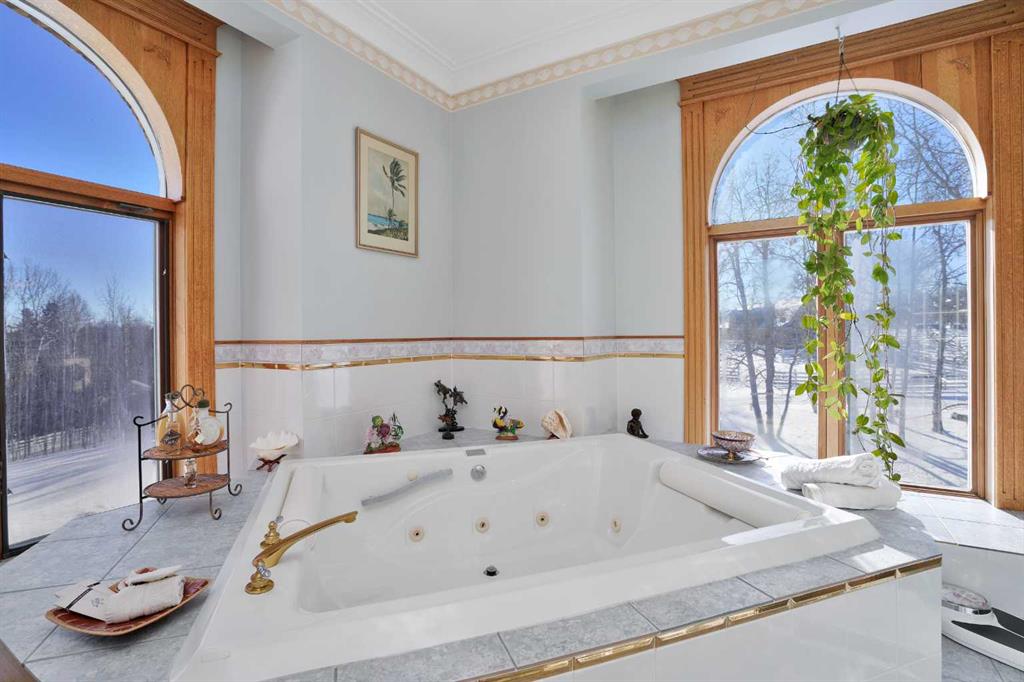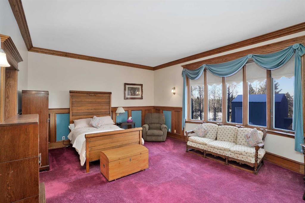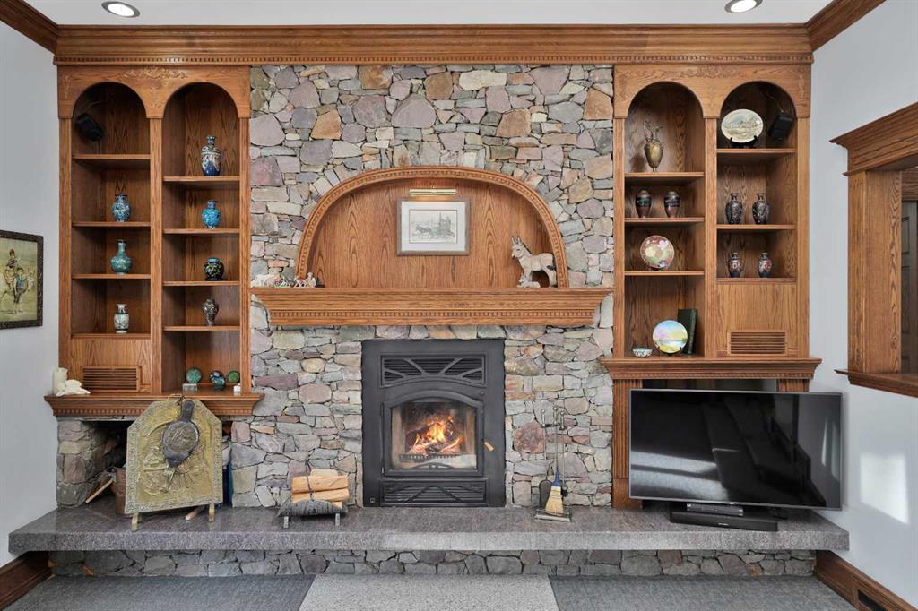 Nestled deep in the foothill, 45 minutes west of Calgary International airport, this completely custom-built masterpiece is a true work of art, designed for those who appreciate craftsmanship, privacy, and timeless beauty. The exterior is a testament to authentic, old-world craftsmanship, featuring hand-picked field stone sourced directly from the owner’s properties. The home hosts a level of craftsmanship rarely found today. Stepping inside, the grand foyer set the tone for the rest of the home. A vintage bronze fountain, meticulously built using porcelain, Alberta river rock, and Ammonites, adds an organic, artistic touch. The grand staircase, a structural and artistic masterpiece, was engineered for stability and handcrafted. An elevator, that services each floor. Through the main entrance is the stunning games room which is a true showpiece, A wine bar and custom full bar, complemented by a matching coffee bar and built-in window seats that double as discreet storage elevate the space. Off the games room is the indoor pool area which is a luxurious retreat. Whether you want to lounge in the warmth, swim at your leisure, soak in the hot tub , relax in the sauna, this space offers endless possibilities. At the heart of this home is a true “working” country kitchen, designed for multiple people to cook, prep, or gather. Conveniently located near the formal dining room and oversized pantry, it allows for providing both elegance and seamless functionality, while the spacious layout ensures effortless entertaining and everyday comfort. The basement level is a fully finished entertainer’s dream. Includes entertaining area with a 2 Pce bathroom and the theater room . The theater room is a dedicated cinematic retreat, featuring a custom-built permanent movie screen. Designed for peak sound retention, the entire space is fully insulated, ensuring an immersive experience. The main house includes 5 full bedrooms each with ensuites. The master suite is a private sanctuary, blending warmth, history, and comfort. A striking fireplace wall, handcrafted from solid oak, serves as a focal point, 2 walk-in closets and the private loft/turret. A hand-milled solid oak spiral staircase leads to this secluded space, which is bathed in natural light from multiple skylights. This loft offers a serene escape from the world below. An underground tunnel provides access between the lower agricultural level and the home. Three springs supply fresh, naturally sourced water straight from the property. A 3-bedroom suite above the garage and two apartments above the barn provide independent living space for staff, guests or family. The Upper Barn includes 9 Stalls, a wash bay & office perfect for an equestrian lifestyle. The original farmhouse & working barn yard adds to its functionality, charm and history. Every detail of this home has been carefully considered, combining expert craftsmanship, rare materials, and thoughtful design. This is more than a residence—it’s a true legacy property.