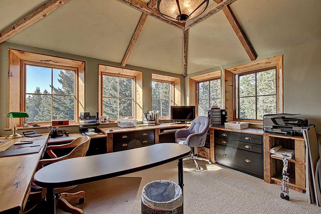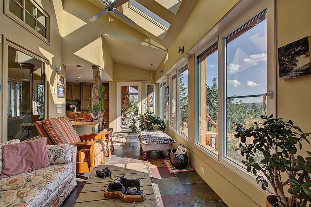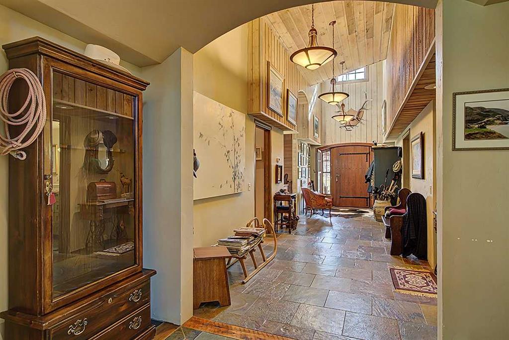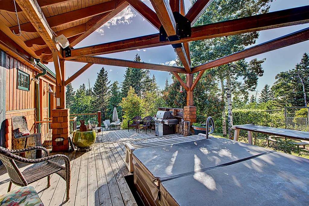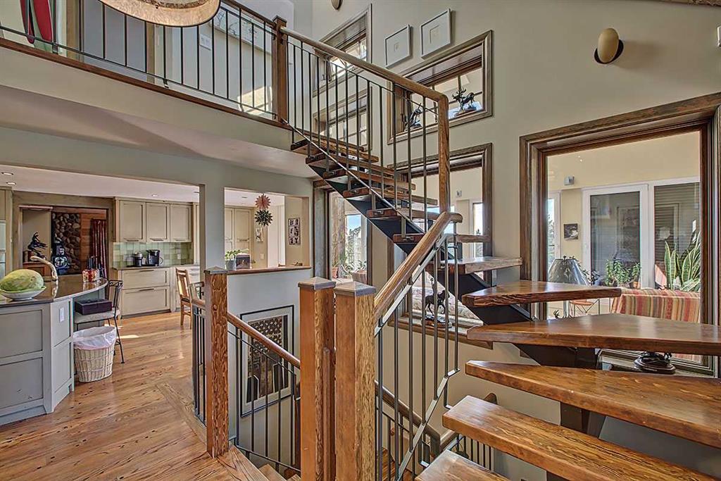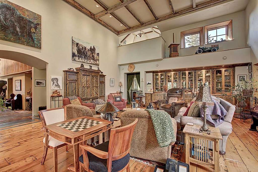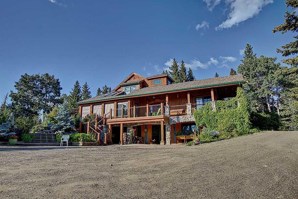 Welcome to Rancho Relaxo less than 20 mins from the edge of Calgary, this one-of-a-kind property is nestled atop a hill withbreathtaking 360 degrees views of the rolling foothills of southern Alberta. This 23-acre paradise could be the perfect haven for any horse lovers, boasting miles of fencing allowing your livestock free to roam the property. With over 5,000 square feet of developed living space, this homeoffers plenty of room for you to live and grow and to come home from a busy day to the peace and comfort of a one-of-a-kind property. Inside,you’ll find three spacious bedrooms, with the option to convert the entire lower level into a place to hangout, games room or an additional fourthbedroom. The home features five well-appointed bathrooms, ensuring convenience for family and guests. Once you have stepped foot into theproperty take note of the high ceilings and the long hallway which leads you towards the massive and inviting family room, with its large windowsto make it light and bright, perfect to showcase the original wide plank hardwood floors, and cozy up to the wood-burning stove, it’s a perfectgathering spot during those Christmas holidays and could you just imagine in the corner a 15-foot-tall Christmas tree. The charming kitchenoffers ample storage and custom cabinetry, opening to a bright sunroom perfect for morning coffee or evening glasses of wine. Just off thekitchen is a quaint living room, complete with a gas fireplace, makes this space inviting, comfortable and forces you to relax and unwind at theend of each day. Adjacent to the kitchen across the hallway is the large dining room which is built for hosting and entertaining and features anadditional wood-burning stove for warmth and ambiance. Step outside in any direction onto one of the several decks, each positioned to capturestunning views of the surrounding property. Down the wooden walkway it leads you to the oversized three-car garage which includes acraftsman’s workshop, a dream space for any aspiring finishing carpenter. In addition to the main residence, and the HIDDEN JEM of this theproperty, features a hidden dream cabin, offering the ultimate escape for relaxation and perfect place to unplug. Two additional outbuildings anda large shed provide ample storage and utility for caring for horses or other creative adventures. Rancho Relaxo is a meticulously maintainedsanctuary ready for you to call home. Whether you’re seeking tranquility or an active rural lifestyle, this extraordinary property delivers the bestof both worlds.