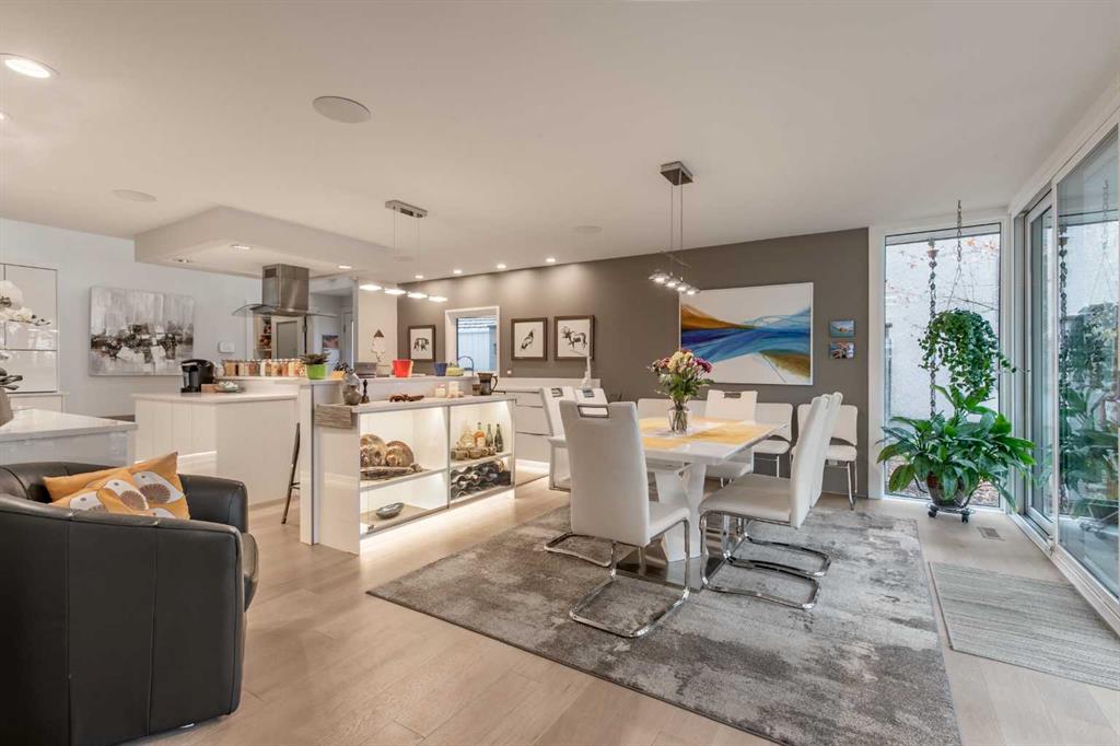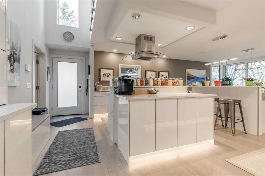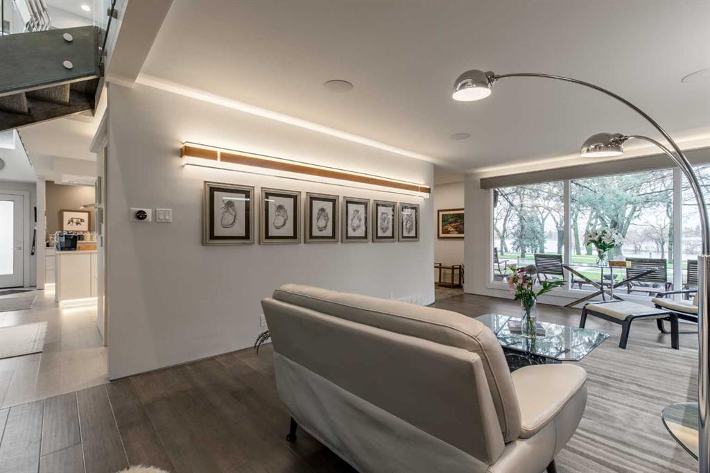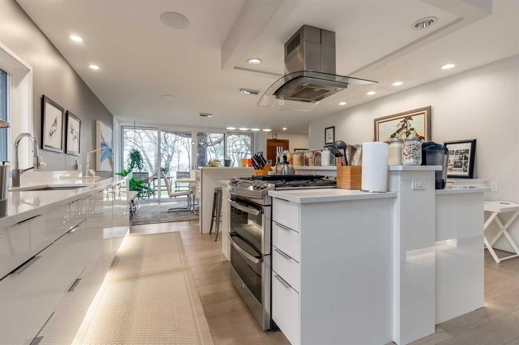 This stunning 4-level split home boasts a modern design with sliding doors opening the dining area to the outdoors. Enjoy a kitchen with a minimal, modular, straight-lined work area emphasizing efficiency and cleanliness. Large south-facing windows provide natural light and gorgeous views overlooking Henderson Lake. The double garage features an EV charger and a heated driveway. Upstairs, you'll find an office set up or hosting area, while a large patio awaits for city festivities by the lake. Please contact your REALTOR® to book a showing on this luxurious and functional home.