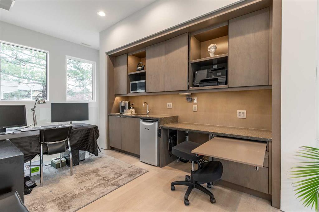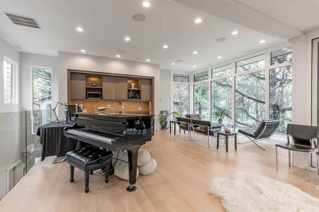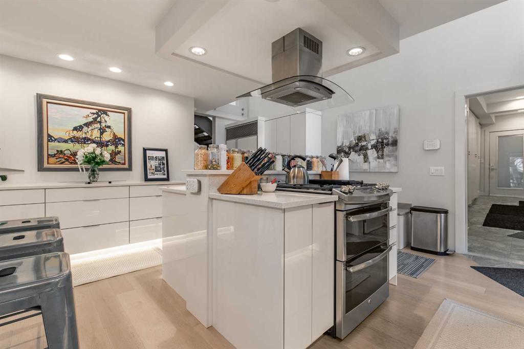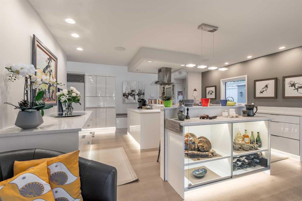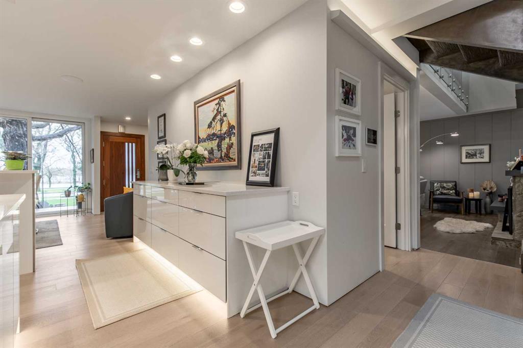 This stunning 4-level split home boasts a modern design with sliding doors opening the dining area to the outdoors. Enjoy a kitchen with a minimal, modular, straight-lined work area emphasizing efficiency and cleanliness. Large south-facing windows provide natural light and gorgeous views overlooking Henderson Lake. The double garage features an EV charger and a heated driveway. Upstairs, you'll find an office set up or hosting area, while a large patio awaits for city festivities by the lake. Please contact your REALTOR® to book a showing on this luxurious and functional home.
