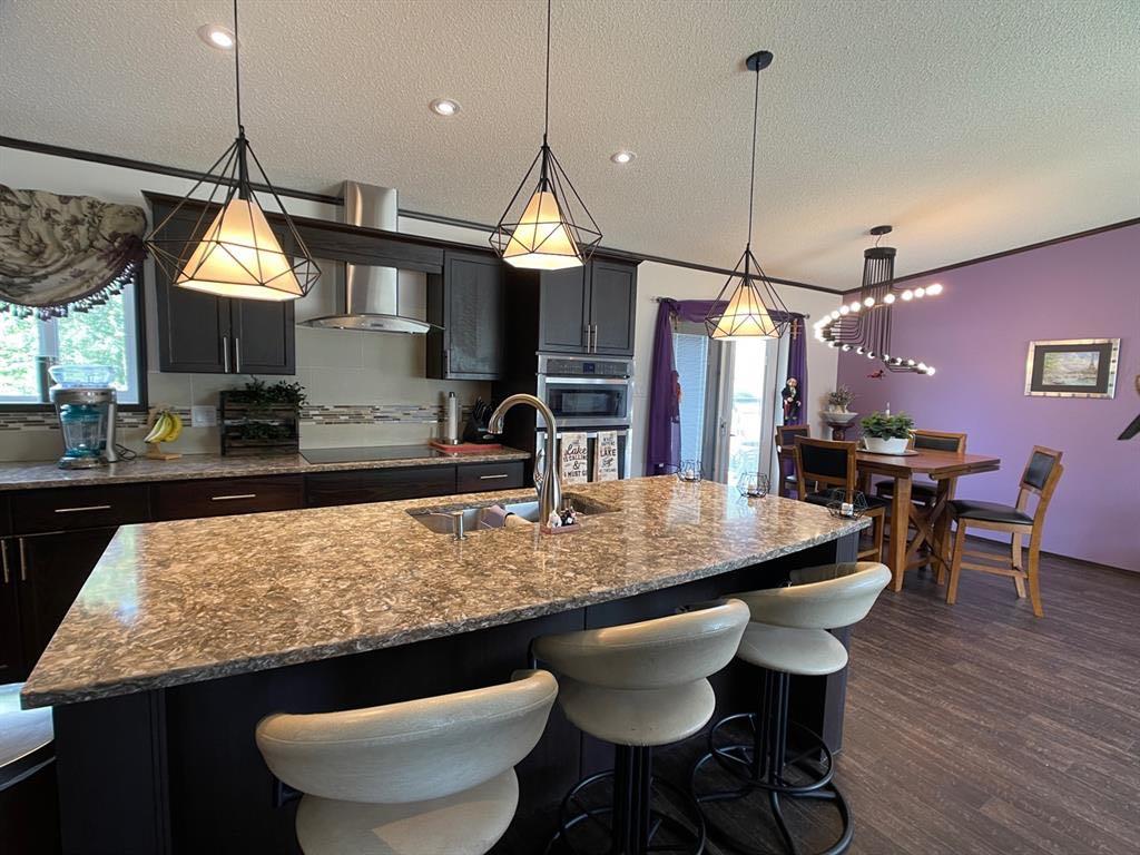 Discover an air-conditioned 1672 sq ft modular home in the desirable Red Sky community of Joussard! The thoughtfully designed layout features a private primary suite with a 4-piece bathroom on one side, separate from the 3 additional bedrooms and full bathroom on the other – ideal for guest privacy. Entertain effortlessly in the open kitchen, complete with granite countertops and a large island featuring a built-in wine cooler. The primary bedroom provides direct access via garden doors to the full-length deck, where you can enjoy a relaxing hot tub. Located in the family-oriented Red Sky lakefront community, this property offers year-round or seasonal living and the convenience of municipal water and sewer. Schedule your personalized viewing today by calling, texting, or emailing!