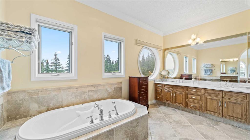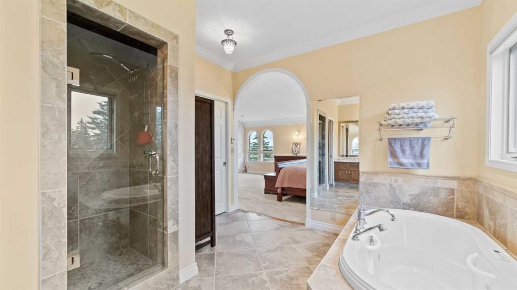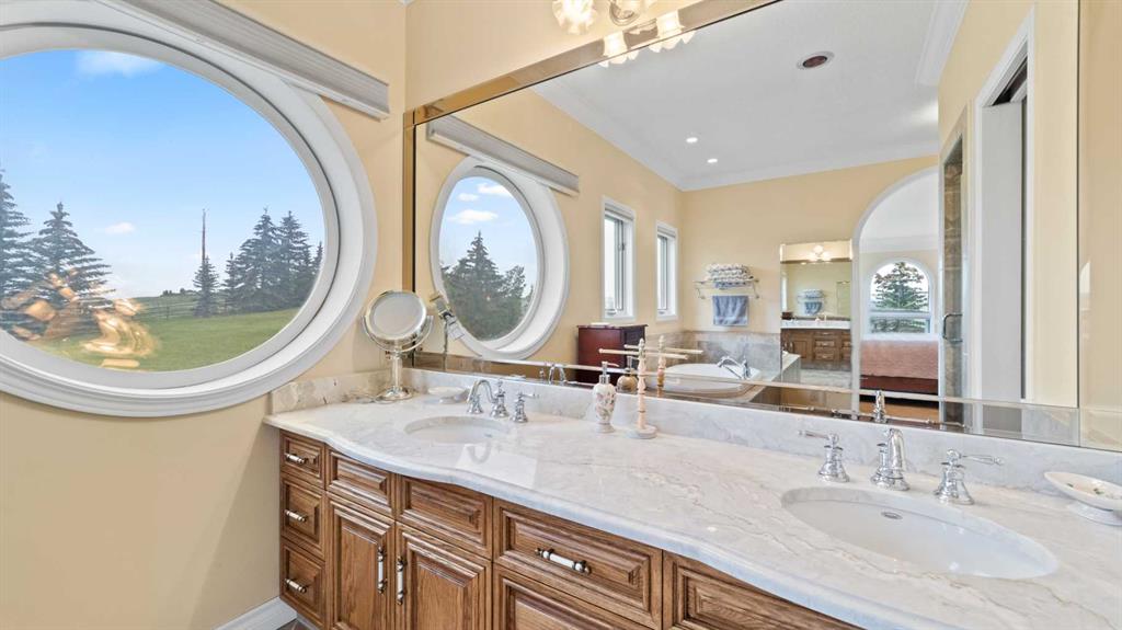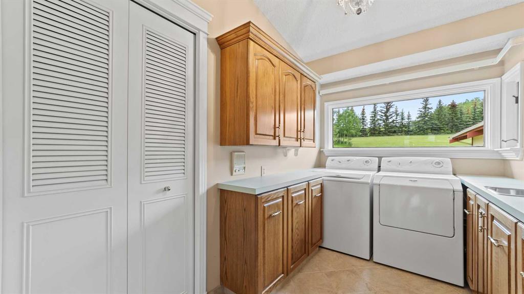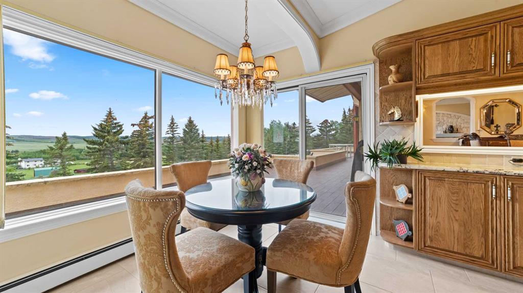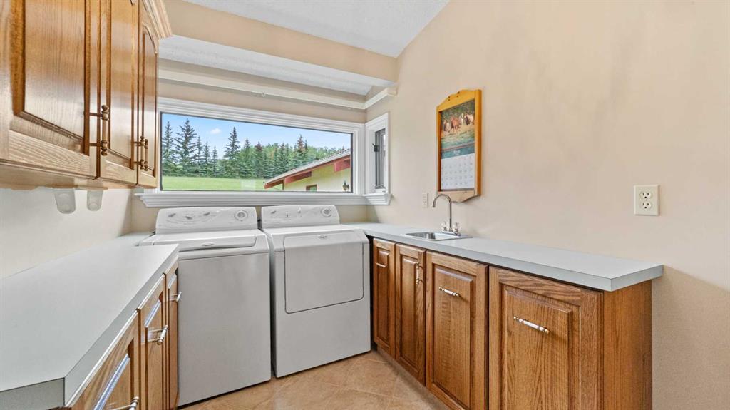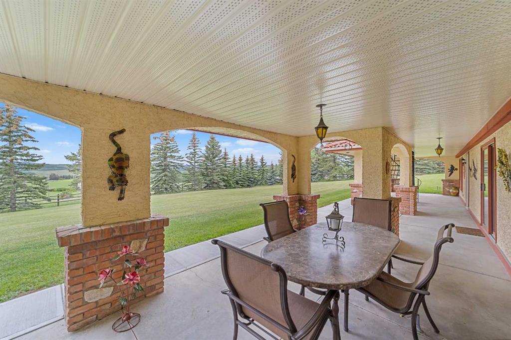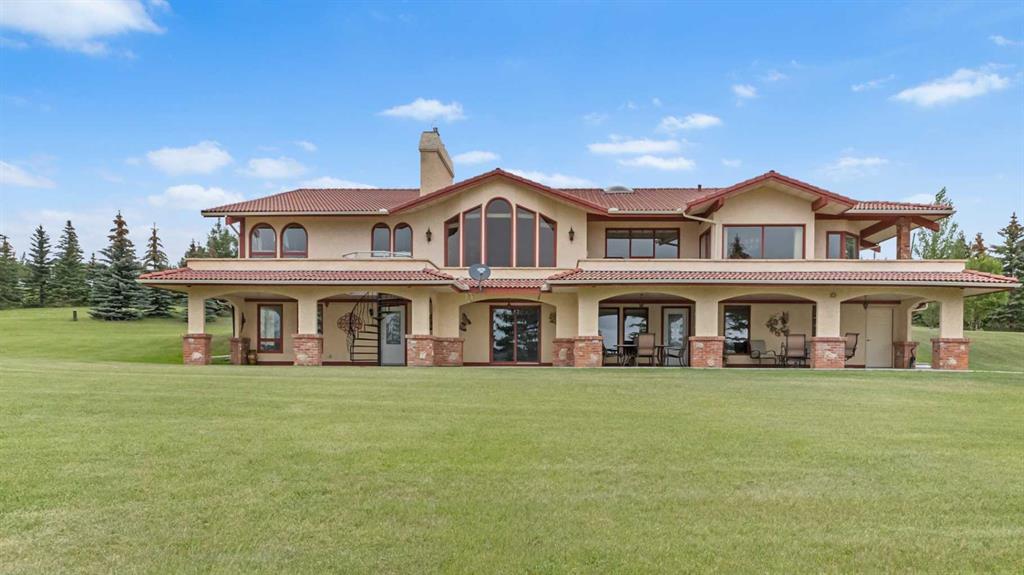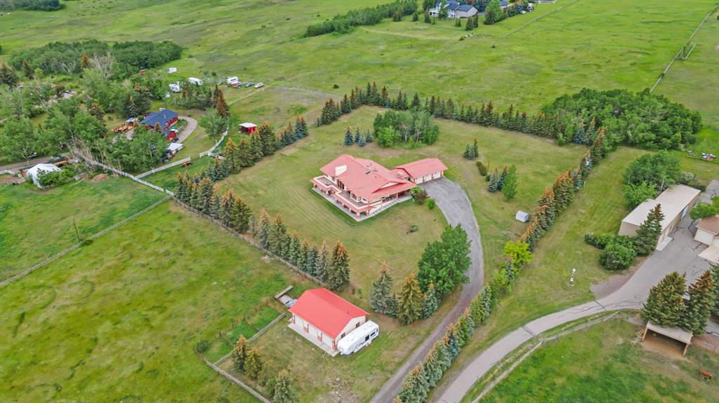 An exceptional opportunity to own nearly 20 acres just minutes from SW Calgary, Spruce Meadows, and the SW Ring Road, with breathtaking mountain views and room to grow. This property offers a rare combination of peaceful rural living, horse-ready infrastructure, and future development potential (subject to MD approval for subdivision). Ideal for equestrian enthusiasts, the land is cross-fenced into three separate pastures and includes a horse shelter, with plenty of space to expand. The custom-built walkout bungalow offers nearly 3900 square feet on the main floor and features 4 bedrooms, 3.5 bathrooms, a gourmet kitchen, curved staircase, vaulted ceilings, skylights, and 3 fireplaces—an elegant, spacious home designed for comfort and entertaining. Enjoy the convenience of a heated triple-attached garage plus a separate 3-car detached garage, ideal for vehicles, a workshop, or potential conversion into a barn. The walkout lower level is partially finished and offers flexible space, including the option to develop a self-contained living space. Whether you're seeking space for horses, investment potential, or simply a private retreat close to the city, this unique property delivers incredible value and versatility. Don’t miss this chance to own in the foothills with views, privacy, and potential.