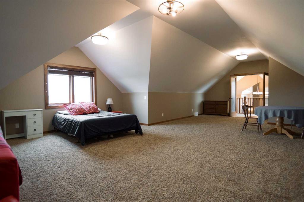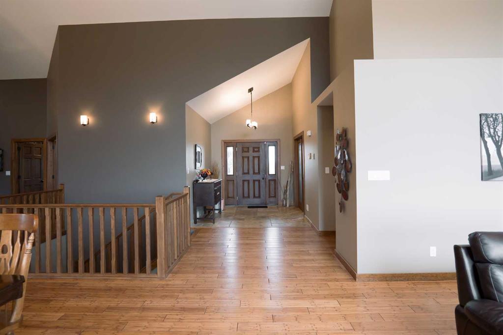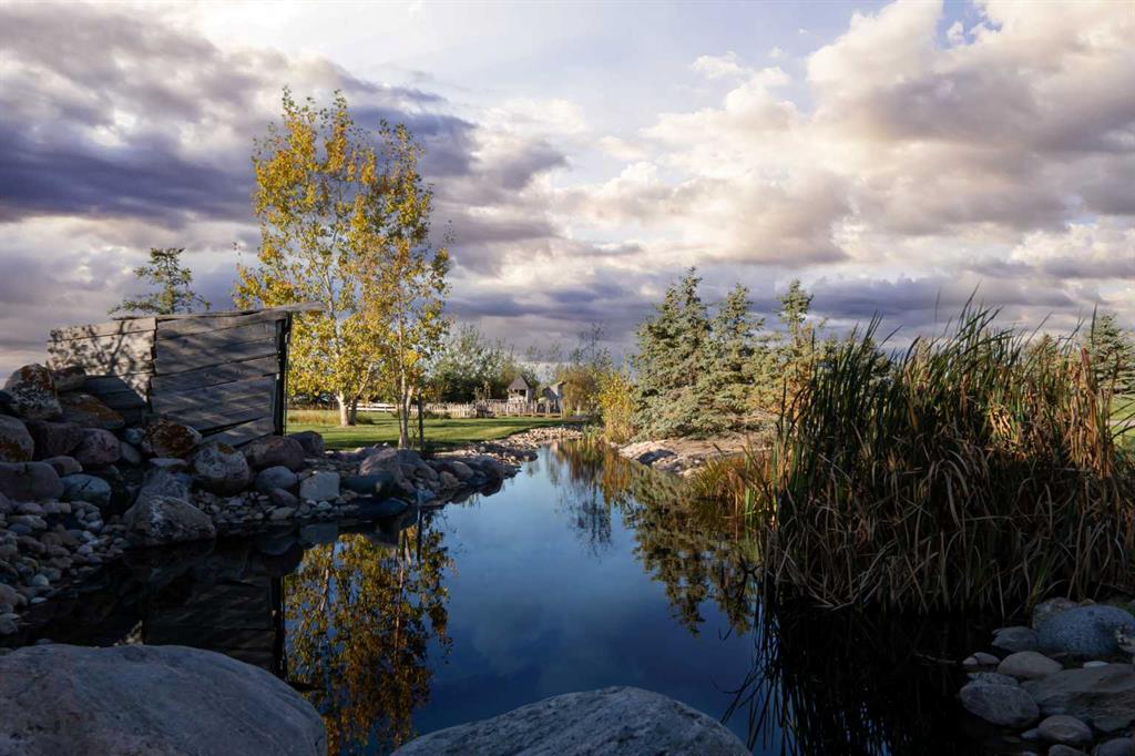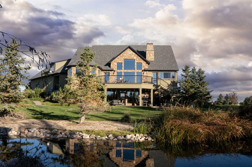 Welcome to this one-of-a-kind custom-built estate, where luxury meets practicality on a beautifully landscaped 4.49 acre property with unique features throughout. This stunning 3,682 sq ft home with an attached triple car garage is only 10 minutes east of Lethbridge on a paved road and has the convenience of CITY WATER. It offers 5 bedrooms, an office, main floor laundry, 3.5 bathrooms and a 780 sq ft loft/flex area above the triple car garage. Showcasing exquisite craftsmanship with a stone exterior, bamboo hardwood flooring, and soaring 20-foot vaulted ceilings. The home is perfectly positioned to capture the warmth of the winter sun while reflective windows keep it cool in the summer. Step inside to find a grand living area with a double-sided gas fireplace adorned in stone and live edge wood. The gourmet kitchen features granite countertops, a gas range, a built-in stove, microwave, and impressive travertine tile backsplash. The luxurious primary suite boasts double vanities, a jetted tub, a steam shower, and marble tile. Stay comfortable year-round with in-floor heating in the tiled areas, basement, and attached garage. The bright walk out basement is a perfect entertainment space equipped with a full wet bar and a soundproof music room (possible theatre room). It also has 3 bedrooms with walk in closets and an additional gas fireplace. Enjoy the tranquility of the outdoors with a private boardwalk along the river, a beach area, and a fire pit for cozy evenings. The property also features a charming gold mine and water wheel feature, both powered, adding unique character to the landscape. Relax and entertain with ease on the upper and lower decks, each equipped with gas hookups for barbecues. The lower deck also includes hookups for a hot tub. This property is truly an oasis with a lofted barn that has power, perfect for storage or hobbies, and an outdoor pool with a deck for summertime fun! The extensive yard includes an underground sprinkler system easily managed through a smartphone app. A 1-acre garden is also integrated into the irrigation system to keep your garden thriving. Additional highlights include a Sonos sound system with built-in speakers, reflective windows that optimize natural light and convenience of hot water on demand. The private driveway secludes the property from the accessible highway while offering low winter maintenance, well-suited for year round living. The rural agricultural zoning makes this estate not just a home but a lifestyle with many possibilities (plenty of room to build a shop) family photo area, space for weddings or entertainment, ideal for making lasting memories. Don’t miss this unique opportunity to own a truly special property!