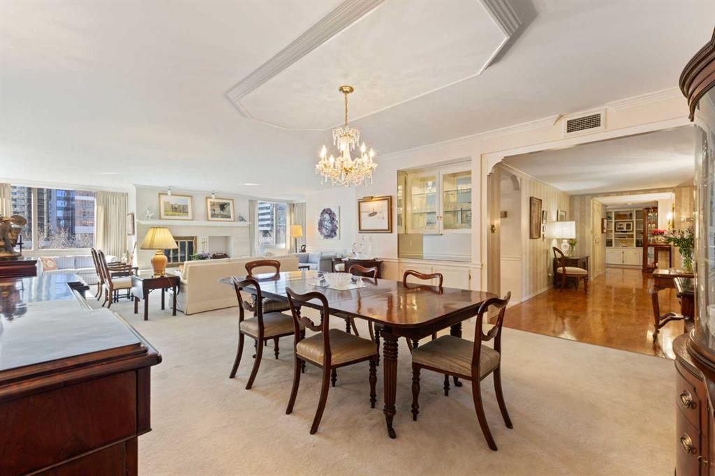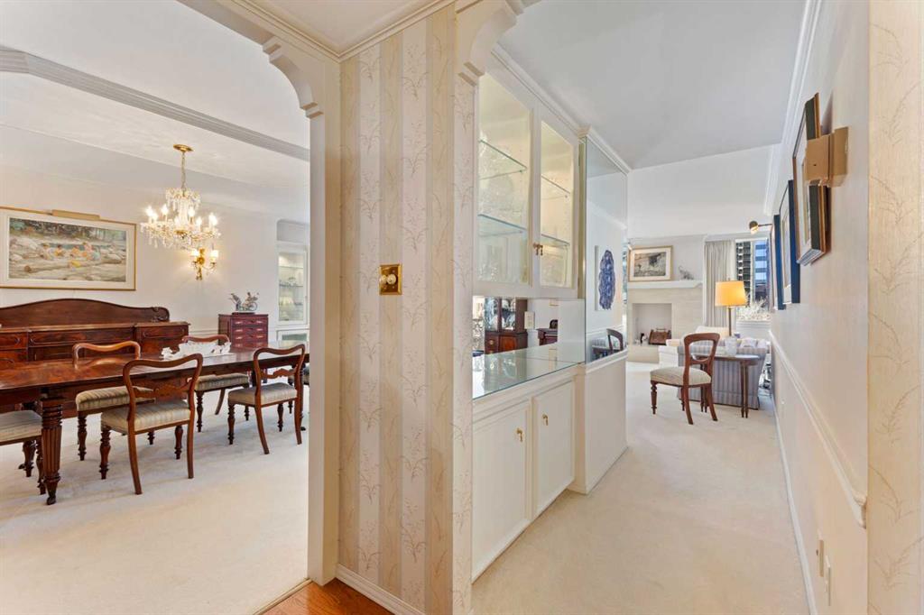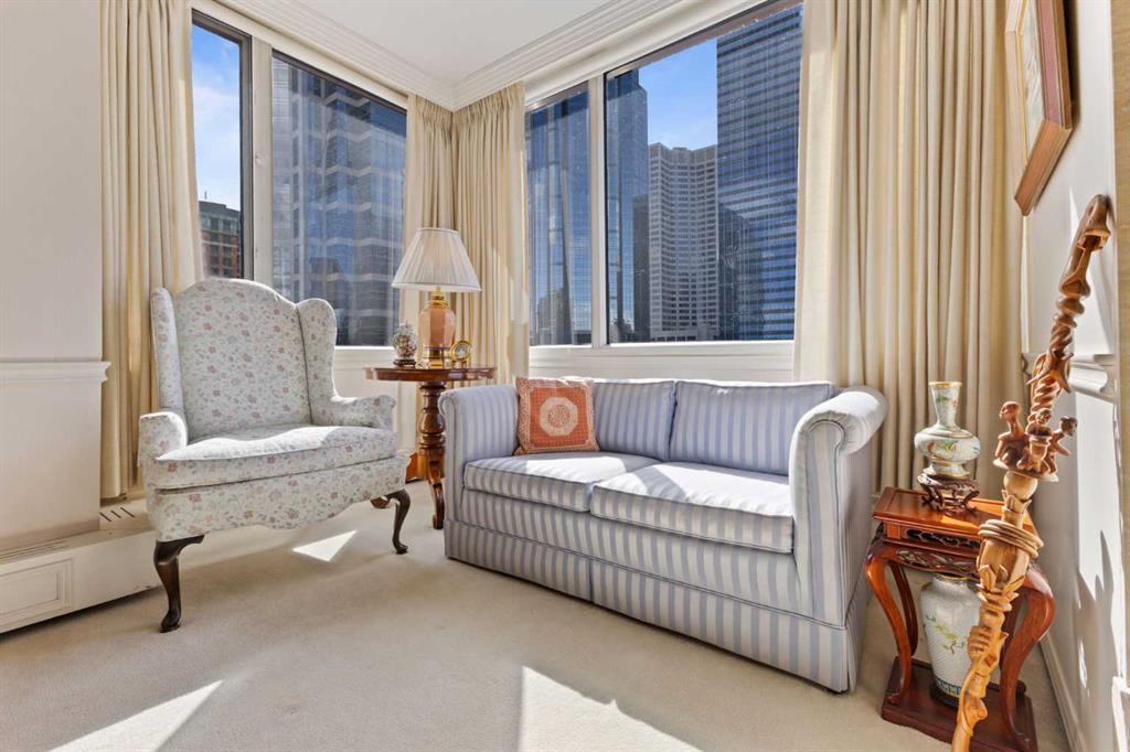 The Pinnacle of Urban Sophistication. This exceptional 3,022 square foot sub-penthouse residence offers an unparalleled standard of refined living. Situated within the distinguished address of 500 Eau Claire Avenue SW. This two-bedroom, three-bathroom, plus den apartment is a testament to classic design, meticulous craftsmanship, and an unwavering commitment to sophisticated comfort. Upon entering via a private lobby landing, residents are immediately enveloped in an atmosphere of understated grandeur. The meticulously designed living and dining areas flow seamlessly, offering an ideal setting for both intimate gatherings and grand entertaining. Thoughtfully curated finishes, including bespoke millwork underscore the residence's exceptional quality. Adjacent to the kitchen, the versatile den provides a dedicated space for a home office, library, or media room, adapting effortlessly to the discerning homeowner's needs. The primary bedroom is a sanctuary of tranquility, boasting generous proportions, a private loft, and a ensuite bathroom. The well-appointed second bedroom offers ample closet space, ensuring comfort and privacy for guests or family. Beyond the exquisite interiors, residents of this sub-penthouse enjoy exclusive access to premium building amenities, including fitness center, indoor pool/spa, a residents' lounge, and dedicated concierge services. Featuring two side by side parking stalls with close proximity to the elevator. A rare opportunity to acquire a truly exceptional property in the heart of the city, with quick access to the downtown core and the new Eau Claire Athletic Club.