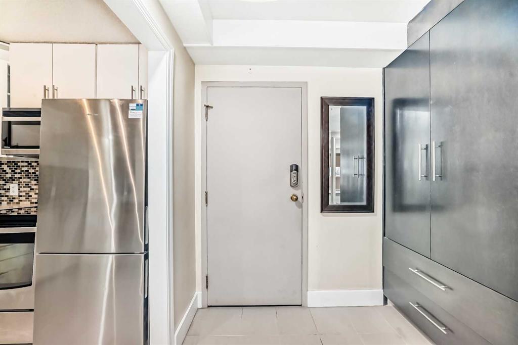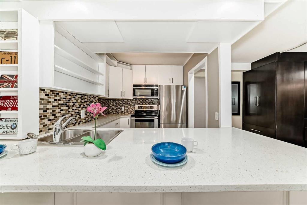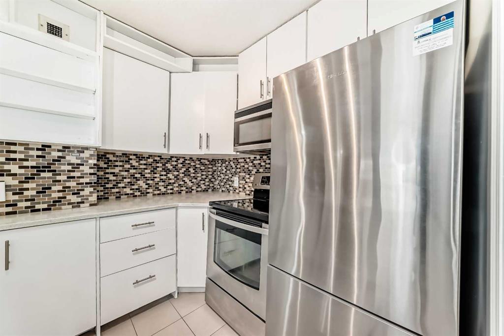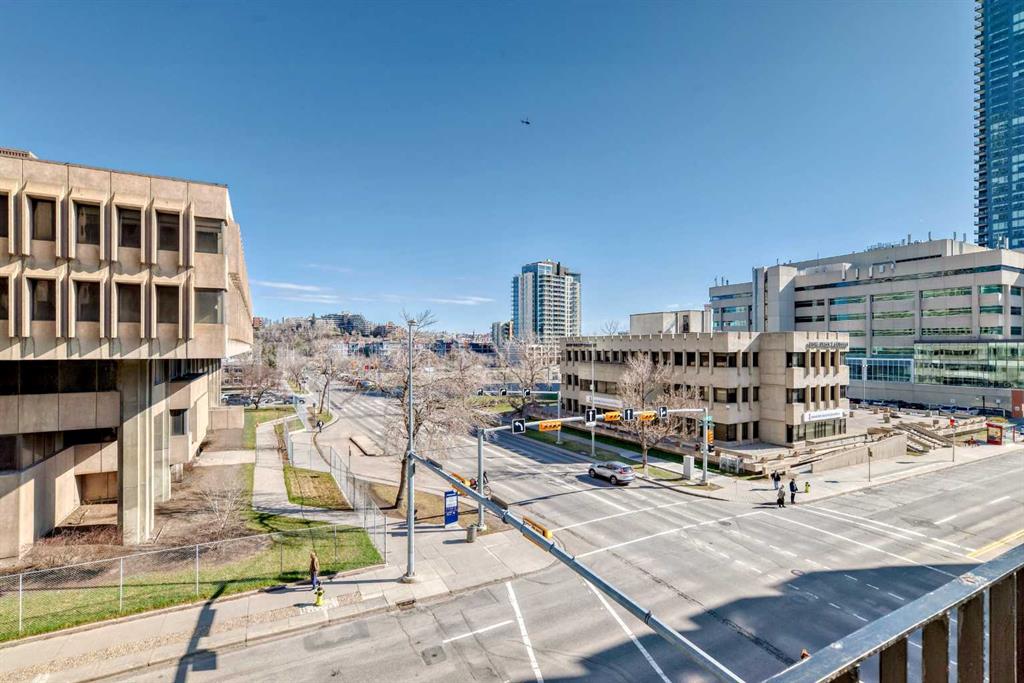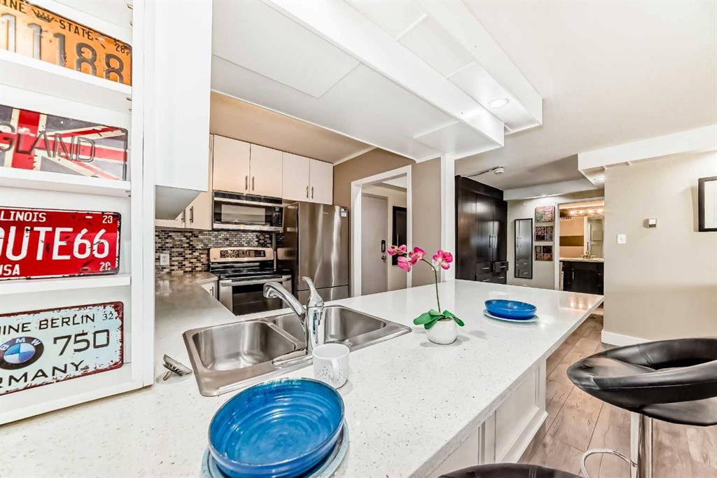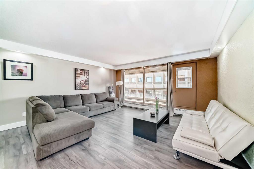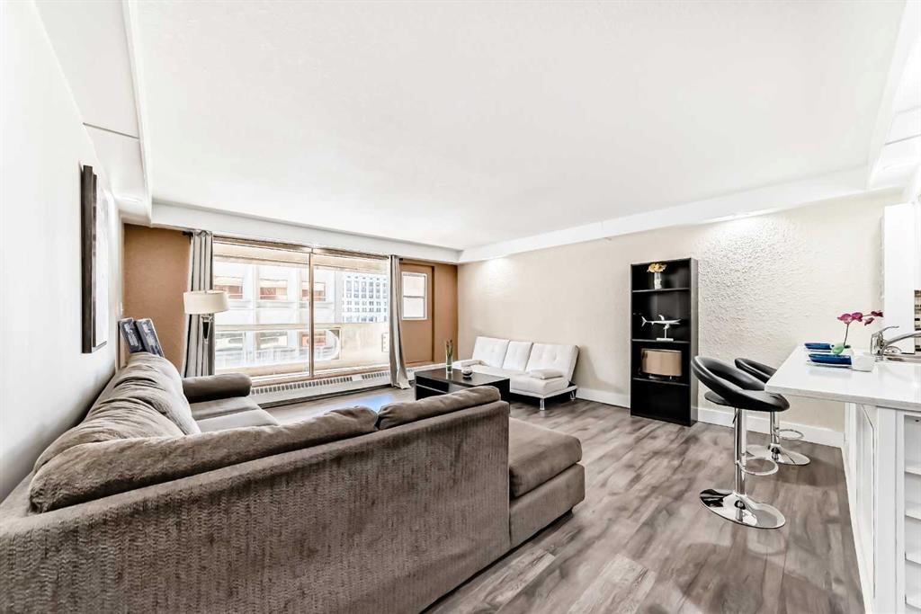 Beautifully renovated 1 bedroom unit at the popular Rocky Mountain Court right in the center of Downtown. Approx. 700sf + 200sf balcony + one covered parking stall, P2-5. Open & spacious floor plan. Bedroom can easily fit a king size bed. Renovations were just completed, including laminate flooring, fresh painting, recessed lighting fixtures. Updated kitchen with granite counter top, stainless steel appliances (fridge, stove, dishwasher & microwave hood fan). Bathroom has walk-in shower. It is conveniently located, in the free-fare Calgary Transit zone perfect for those working Downtown. You can leisurely walk to Chinatown, shops, restaurants, theatre, concert halls, Central library, Bow Valley College, Superstore, Western Senior High . Or you can cycling on the pathway systems along Bow River & Prince island. The building is well managed. There is a recreation/fitness center, racquetball court, sauna, roof top patios at the 4th floor and 30th floor for residents to enjoy.