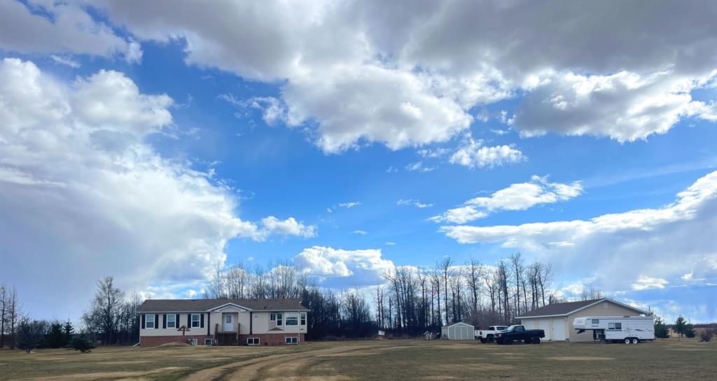 A charming 2008 - 1760 sq ft bungalow sits on a 6-acre lot with views of the South Heart River, offering the perfect blend of rural tranquillity and modern comfort. The home features three bedrooms and two bathrooms, which includes a light-filled ensuite with a luxurious four-piece bathroom complete with a stand-up shower and a deep soaker tub—ideal for unwinding after a long day. The open-concept kitchen and dining area are bathed in soft natural light from northeast-facing windows, eliminating harsh glare while creating a warm and inviting atmosphere. Convenient main-floor laundry makes everyday living effortless. Downstairs, the full basement is already wired and framed for future expansion, offering the potential for two additional bedrooms, a bathroom, and a family room—perfect for growing families or hosting guests. Outside, the property includes a detached three-car garage with a cement apron, a sturdy dog house, and a large dog run for pet owners. With central air conditioning ensuring year-round comfort and a peaceful location just 10 km from High Prairie, this home is a rare find for those seeking space, serenity, and endless possibilities.