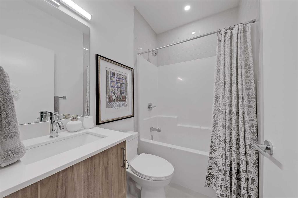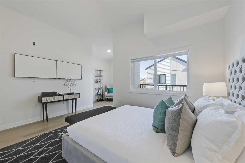 **ATTENTION FIRST-TIME BUYERS: You could qualify for up to a 100% GST rebate on this new home! Enquire today to find out more!** BRAND NEW TOWNHOME PROJECT COMING SOON TO GLENBROOK! With 5 upper-level units, and 5 lower-level units, this modern townhome project is sure to impress, with an unbeatable inner-city location and time still left to upgrade or customize! This upper-level 2-storey unit features nearly 1,100 sq ft, with 2 beds, 2.5 baths, and a single detached garage. Accessible by a private stairwell, the raised first floor offers a sunny and bright open-concept living space, with sleek, low-maintenance luxury vinyl plank (LVP) flooring and large windows throughout. Fully equipped, the modern kitchen features 2-tone slab-style cabinetry, quartz countertops including a breakfast bar with seating for three, and Samsung stainless steel appliances, including a French-door refrigerator and ceramic-top stove. The adjacent dining room is perfect for family meals and entertaining, while the living room's oversized window fills the space with natural light. Completing this level, a stylish 2-piece powder room offers custom cabinetry, quartz counters, an undermount sink and a full-height mirror – perfect for guests. A lacquered spindled railing leads to the sunny upper floor, where 2 bedrooms and 2 full bathrooms await. The primary bedroom boasts a 3pc ensuite and a private balcony overlooking the residential street out front. Down the hall is a well-sized 2nd bedroom boasting easy access to the main 4pc bathroom. Each bathroom features custom cabinetry, quartz countertops, undermount sinks, and fully tiled showers. The upper floor also houses a conveniently located laundry closet. Durable and stylish, the exterior features Hardie Board and Smart Board detailing, and brushed concrete steps and walks. Located in the heart of the sought-after SW inner-city community of Glenbrook, these brand-new townhomes boast a fantastic location right across the street from Glenbrook School and the Glenbrook Community Association. A number of major amenities are located within an easy 15-min walk, including Safeway, Glamorgan Bakery, and multiple restaurants including Richmond’s Pub. Plus, nearly every imaginable amenity can be found in nearby Westhills and Signal Hill Centres which are just a 6 minute drive away. Although peacefully tucked away on a lovely residential street, Sarcee Trail and Richmond Rd are both readily accessible, making everyday commuting around the city a breeze! Make this new townhome yours! *Interior photos are samples taken from past projects - actual finishes may vary. **RMS measurements derived from the builder’s plans and are subject to change upon completion. *VISIT MULTIMEDIA LINK FOR FULL DETAILS & FLOORPLANS!*