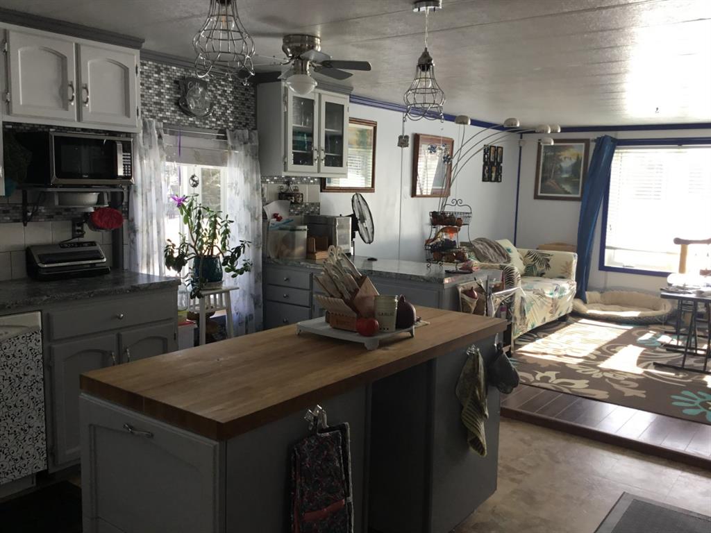 Spacious home, lots of room for a growing family! Don't let the age of this home keep you from viewing it.....lots of upgrades in recent years include a huge addition that almost doubled the sq. footage, mobile and addition are on pilings, metal roof, new insulation on walls and roof, newer windows, flooring, cabinets, counter tops, paint throughout, newly renovated bathroom with soaker claw foot tub, extra large shower and double sinks. The living room, kitchen and dining area with garden doors are all spacious... great space to entertain, the craft room is well lit with plenty of natural light. , Master bedroom is spacious with plenty of closet space. Outdoors features a nice deck with a covered barbeque area, fire pit area and flower beds with lots of perennials for easy maintenance. The quonset shop is insulated, heated , with built-in work benches and has a 9' X 9' overhead door. There is a green house and several storage sheds.