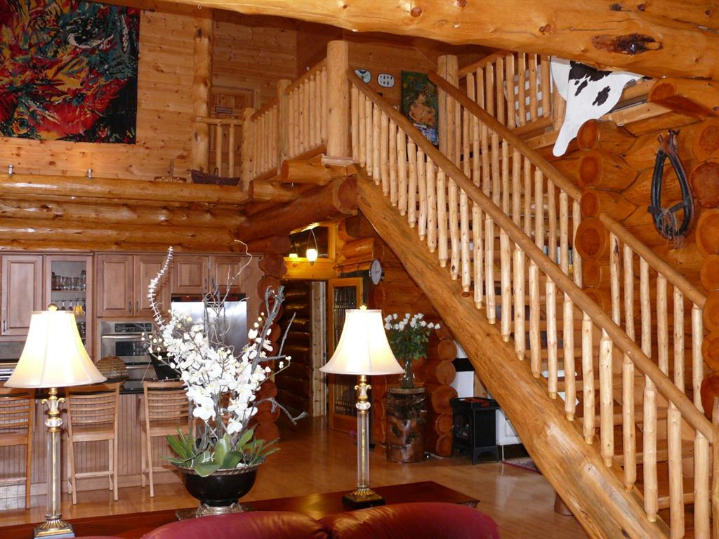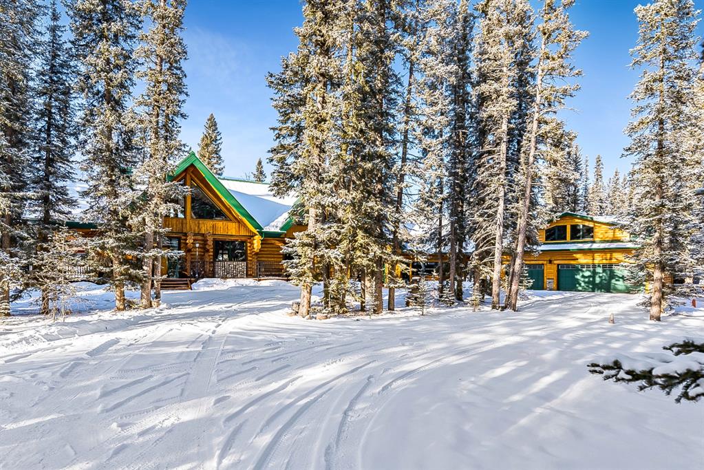 Rare lifestyle at the foothills of The Canadian Rocky Mountains. Only 30 min. drive to Calgary downtown. Welcome to the 104 White Ave. property, a unique 1.34-acre contemporary log home country estate nestled between the hamlet of Bragg Creek and Bragg Creek Provincial Park within walking distance to both and bordering 16 acres environmental reserve along Elbow River. The Douglas fir log elegant manor home features 6+1 bedrooms including 3 en-suites, a self-contained bachelor with separate entry and featuring in-floor heating and wood-burning stove, and a separate kitchenette living space above the detached 3-car garage. The bright & elegant 5000 sf south-western exposure main lodge features an impressive 26’ vaulted ceiling with river rock stone masonry/indoor gas fireplace, maple hardwood floors throughout, a pair of stained glass doors, gourmet Chef’s Alder kitchen with granite countertops, stainless steel appliances/gas range and an impressive granite 9’x 3’ kitchen island. Underneath the entire main house runs heated concrete crawling space (5’ height). In addition, there is a fully restored & electrified 1927 vintage cabin with water rough-in and adjacent storage shed. The house is connected to the townsite water/sewer system and it is supplied by tankless/on-demand water heater. There is a separate/emergency back-up cistern system/septic tank. This R-URB zoned trophy property is within coveted commercial designation; it has a potential to serve as a unique multi-generation family home. The forested parcel has direct access to the low bank Elbow River/pebble beach, is protected by the newly constructed dyke, features detached infrared heated 3-car garage with 220V outlet for EV car charger, newly professionally surfaced asphalt driveway and spacious guest parking area, wrap-around veranda with a river rock stones masonry outdoor gas fireplace, outdoor 6-person deep-soak cedar jacuzzi tub, 4-person wet sauna, fire pit, commercial 200 Amps main electric panel. This is your rare opportunity to capitalize on various life opportunities at the very footsteps of pristine Kananaskis Country and in the thriving Bragg Creek hamlet. Showings are by appointment only.