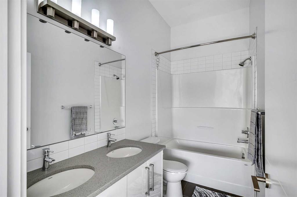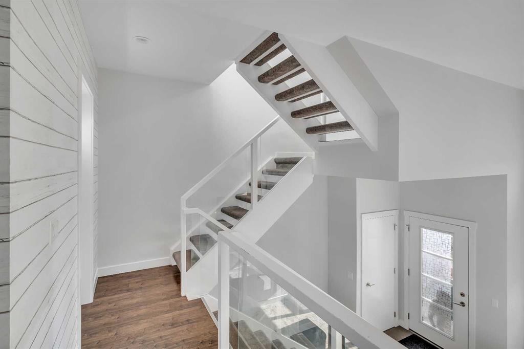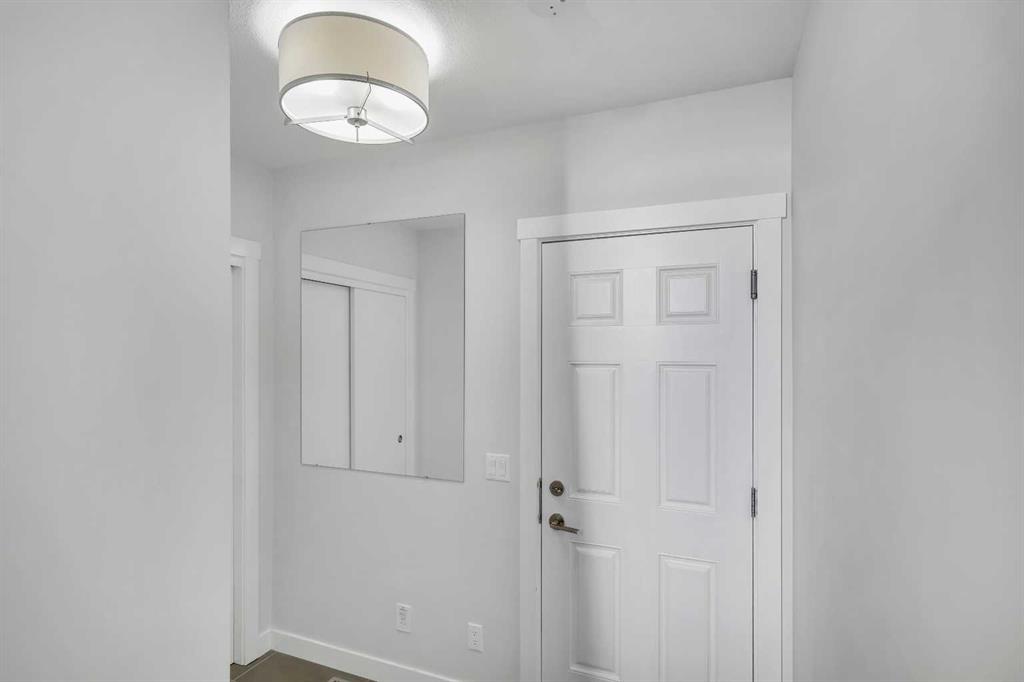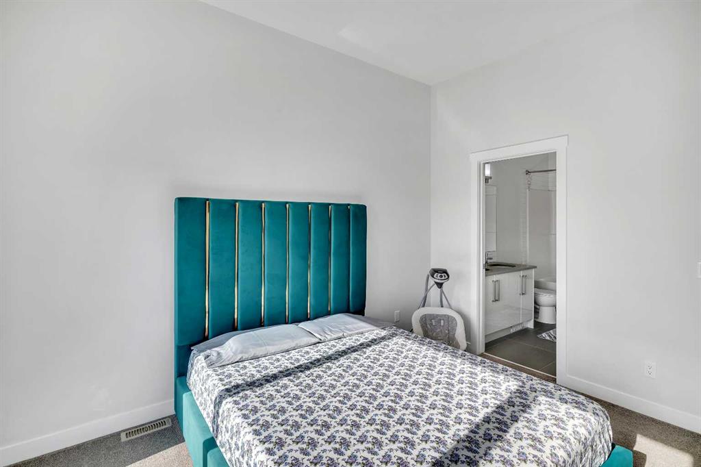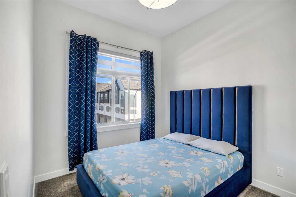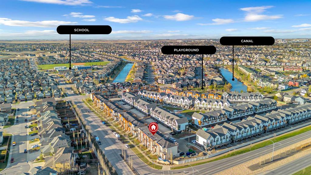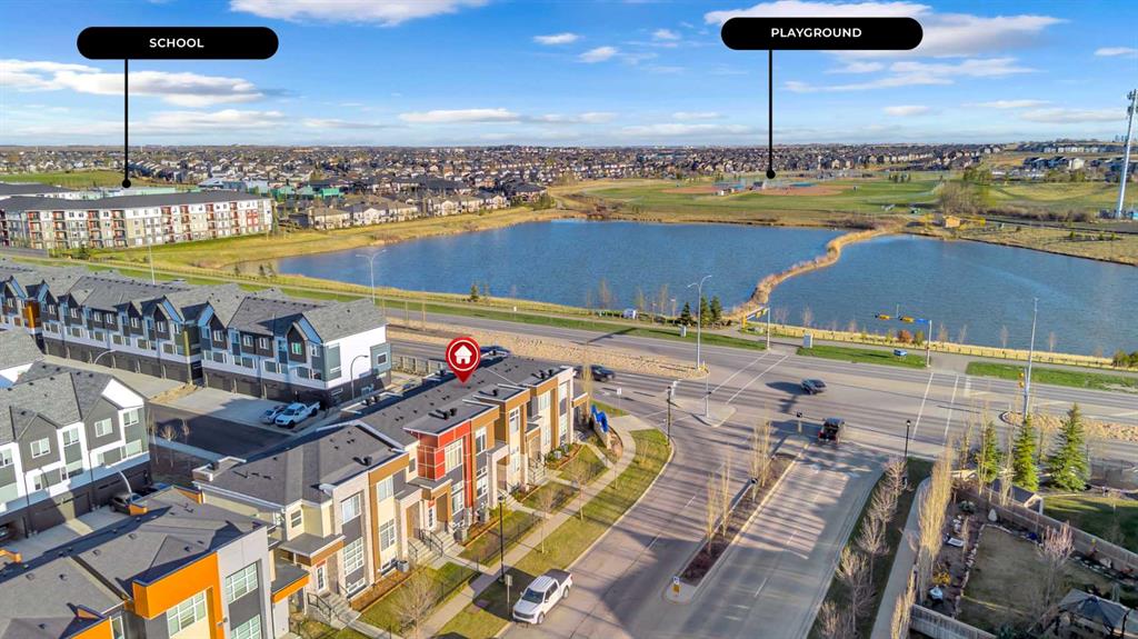 Your Airdrie haven awaits at 404-1530 Bayside Ave SW, a delightful townhouse nestled within the highly desirable Bayside community. Featuring 3 BEDS|2.5 BATHS| DOUBLE ATTACHED GARAGE| AIR CONDITIONER| FENCED FRONT YARD| EXTENDED BALCONY| GLASS RAILINGS| HIGH CEILINGS| OPEN TO ABOVE|, this home offers a wonderful living experience. Step inside to discover a perfectly designed main level, where the living room boasts an impressive open-to-above concept and soaring windows, bathing the space in warm natural light. For those moments of quiet relaxation, an electric fireplace adds a touch of cozy ambiance while you read or watch television. Ascend to the split-level upper floor, thoughtfully designed for all your daily dining needs. The open kitchen, complete with intelligently placed cabinetry offering ample pantry storage, is equipped with sleek stainless steel appliances to inspire your cooking needs. The adjacent dining space provides generous room for hosting large family meals and gatherings. Extend your living space outdoors onto the substantial balcony, enhanced with modern railings and offering a pleasant side view of the lake – a perfect spot to enjoy your afternoon tea with a smile. A convenient powder room completes this level. The upper floor also features a stacked laundry area with a contemporary washer and dryer unit for added convenience. Your primary bedroom serves as a true retreat at the end of the day, boasting an ensuite washroom with double vanity sinks. Two additional well-proportioned bedrooms on this floor can easily accommodate queen-size beds, and a full bathroom caters to the needs of a growing family. Benefit from the convenience of a double attached garage, along with an additional parking pad, providing space for up to four vehicles. The unfinished basement offers exciting potential for customization – envision a home office, a cozy den, or any other space to suit your unique lifestyle. Don't miss the opportunity to truly experience the charm of this wonderful townhouse. Book your personal showing today and take the first step towards making 404-1530 Bayside Ave SW your new address. Check 3D tour.