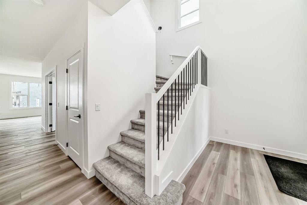 Welcome to 6 Appaloosa Way in Cochrane, a beautifully designed family home offering over 2,200 square feet of modern, functional living space in a growing and family-friendly community. Built by Daytona Homes, this three-bedroom, two and a half bathroom property is packed with features that balance everyday convenience with long-term potential, including a side entrance and zoning for a future legal suite, a valuable option for multi-generational living or additional income down the road. Step through the front door or enter from the double attached garage, and you're immediately welcomed by a well-organized mudroom that connects directly through a walk-through pantry and into the kitchen. This layout keeps things efficient, especially on busy days when unloading groceries or managing the daily rush. At the heart of the home, the spacious open-concept kitchen features a central island with a flush eating bar, abundant prep space, and sleek modern finishes. Whether you're cooking, entertaining, or helping with homework at the island, this kitchen offers flexibility and flow. Just across from the kitchen is a versatile office or den, an ideal space for working from home, setting up a hobby zone, or keeping life organized. The kitchen also opens onto the bright great room and dining nook, offering a connected and inviting layout where natural light fills the space and everyday life feels open and relaxed. Upstairs, the thoughtful layout continues to impress. At one end of the home, the primary suite offers a private retreat complete with a five-piece ensuite that includes dual vanities, a soaker tub, a separate tiled shower, and an enclosed water closet. The walk-in closet provides plenty of room for storage and organization. Down the hall, two well-sized secondary bedrooms are tucked at the opposite end, each with easy access to a modern four-piece bathroom and a dedicated laundry room, making day-to-day living a breeze. Finishing off the upper floor is a large bonus room at the end of the hall, ideal for movie nights, a kids’ play area, or a quiet escape to unwind. The side entrance and future legal suite zoning add serious value and flexibility to this home, whether you're thinking of future rental income, creating a private space for extended family, or simply investing in options for the years ahead. Located in one of Cochrane’s newest and most desirable communities, with access to parks, scenic trails, schools, and local amenities, 6 Appaloosa Way is more than just a home. It’s an opportunity to build a lifestyle in a space that grows with you. Book your private tour today and explore everything this exceptional Daytona Homes build has to offer.
