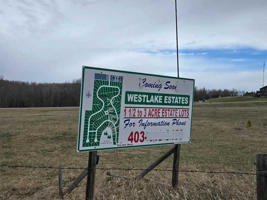 STUNNING ACREAGE (1.80 +/- acres) situated in Westlake Estates, with views of Gull Lake. Located across from the summer village of Parkland Beach, the Community of Sunnyside with the Gull Lake Golf Course, RV Heaven and Marina, Stoners Landing Boat Launch, Jorgy's Hotspot Convenience store and a public beach. Lots of activities to enjoy within close proximity while still maintaining your own space and privacy. Spring and stream fed Gull Lake has a stabilization system to pump water from the Blindman River to maintain its level. Gull Lake offers natural beauty, wildlife, and recreational opportunities that are unmatched - see one sunset on the lake and we are sure you will agree!!! Nearby are the full-service communities of Ponoka, Rimbey, Lacombe, Bentley, and red Deer where festivals, rodeos, shopping, dining and entertainment options are endless. This lot has existing 3 strand barb wire fence on the backside. Conveniently located on paved secondary highway 771. The subdivision is architecturally controlled with restrictive covenants in place to ensure quality of future developments, with oversight through an HOA (Home Owners Association) ($50.00/ann.) Utilities are at front of property.