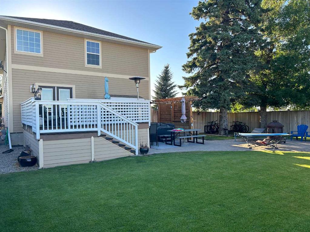 This stunning two-story residence offers the perfect blend of space, comfort, and style with over 2,600 sq. ft. of thoughtfully designed living space, plus a fully developed 1,200+ sq. ft. basement. With 6 spacious bedrooms, 4 full bathrooms, and a half bath, this home is ideal for growing families or those who love to host. Step through the vaulted front entry and feel immediately at home. The main floor features a private home office, a cozy living room, a bright plant or piano room, and a convenient laundry area. At the heart of the home is a beautifully appointed, expansive kitchen that flows effortlessly into the sunlit dining and living areas—perfect for entertaining. Outside, the fully landscaped double lot is a true oasis. Enjoy mature trees, a stone patio, a fully fenced yard, and a hot tub for ultimate relaxation. Whether it’s summer barbecues or quiet evenings under the stars, this backyard is built for making memories. Practicality meets luxury with an attached oversized heated double garage, ample parking, an exterior RV power outlet, central A/C, and a storage shed for added convenience. This exceptional property offers the perfect combination of small-town charm and modern living. Don’t miss your chance to make this stunning Magrath home yours!