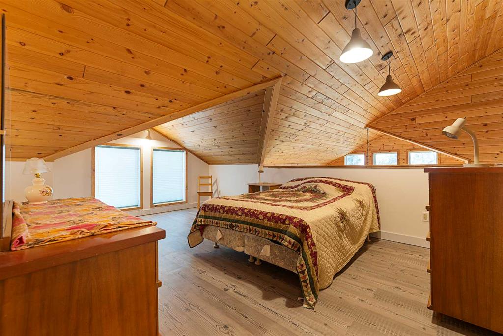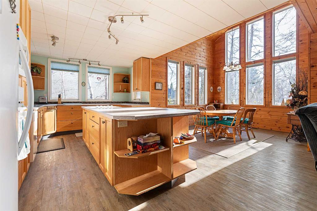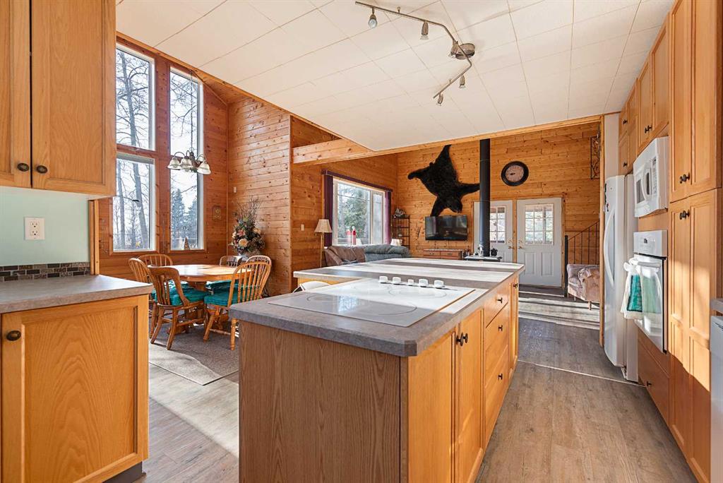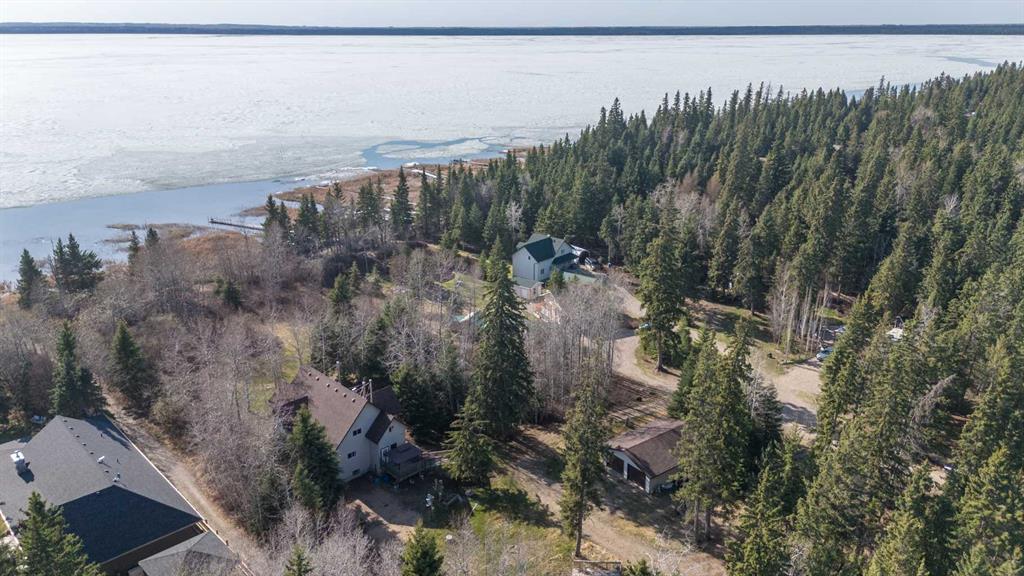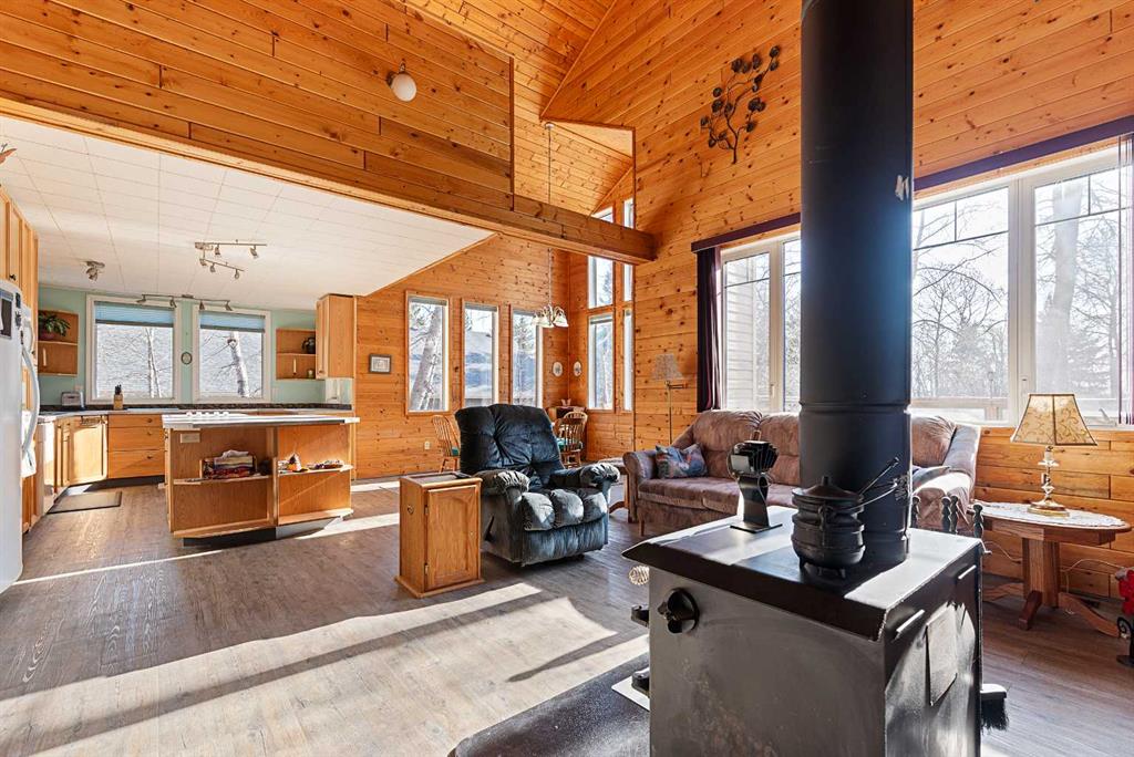 Enjoy year-round living in this spacious 1,900+ sq. ft. cabin set on a picturesque waterfront lot at Evergreen Beach, Brightsand Lake. The main floor features a stunning living room with vaulted pine ceilings and a cozy wood-burning stove, flowing seamlessly into the open-concept kitchen and dining area. The kitchen offers ample cupboard and counter space, a generous walk-in pantry, and scenic views from the dining area. Two bedrooms and a full bathroom complete the main level. Upstairs, an open loft overlooks the living space below and includes additional bedrooms and a convenient two-piece bathroom. The basement offers a third bathroom, laundry area, an additional bedroom, and extensive storage—with space ready for your personal finishing touches. A second wood-burning stove on this level helps circulate warmth throughout the home, complemented by natural gas forced air heating and central A/C for year-round comfort. Outside, enjoy a double detached insulated garage, and direct access to the beach from your backyard. Whether relaxing or adventuring, this beautiful property offers the best of lakeside living on Brightsand Lake. The adjoining lakefront lot is also listed for sale and could be purchased as a package with this beautiful cabin.