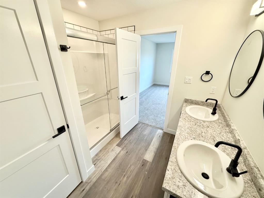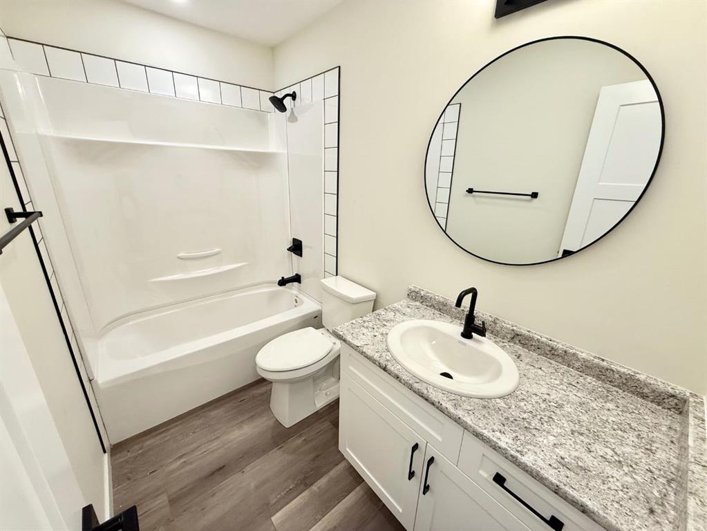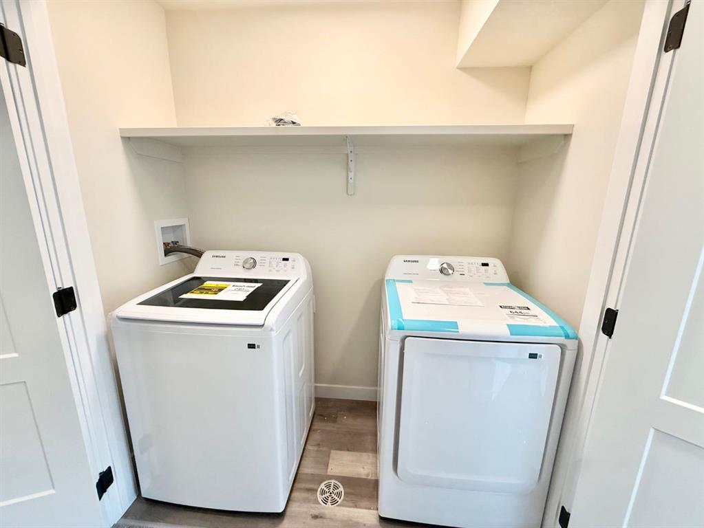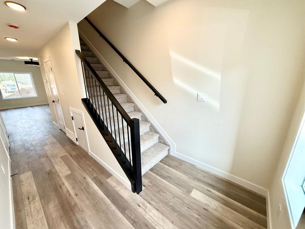 This brand new middle unit triplex, built in 2025, features a modern two-storey design with an attached heated garage! It boasts a fenced and landscaped yard, providing added privacy and outdoor space. Inside, you'll find durable vinyl plank flooring throughout the main, open concept with white cabinets, an island, stainless steel appliances, and a 2 piece bathroom. Upstairs, the large primary bedroom offers a walk in closet and a sitting area, along with a 4 piece ensuite. There are also two additional bedrooms, another full bathroom, and an upstairs laundry for added convenience. Also comes complete with a concrete driveway, new home warranty, and quick possession!