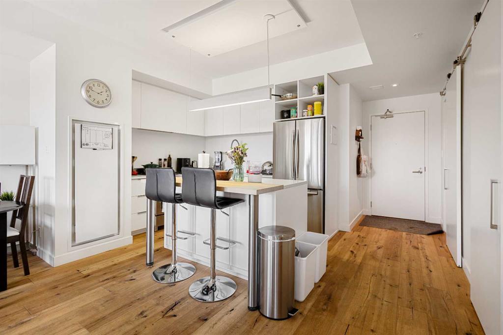 Welcome to the sought-after Sobow building, where modern urban lifestyle meets unbeatable downtown convenience. This beautifully maintained 1-bedroom plus spacious den unit offers exceptional comfort, functionality, and style. Step inside to find an upgraded kitchen featuring high-end finishes and appliances, complemented by stunning hardwood flooring that flows throughout the living space. Enjoy the privacy of a well-designed layout with serene views from both the living room and bedroom. Located just minutes from downtown Calgary, this home provides easy access to public transit, premier shopping, dining, and river pathways. With underground parking included, this is urban living at its finest. Building amenities include day-time concierge, well-equipped gym, owners’ lounge with a billiards table, and a theater room. Don't miss your opportunity to live in one of Calgary's most desirable inner-city communities — book your private showing today!