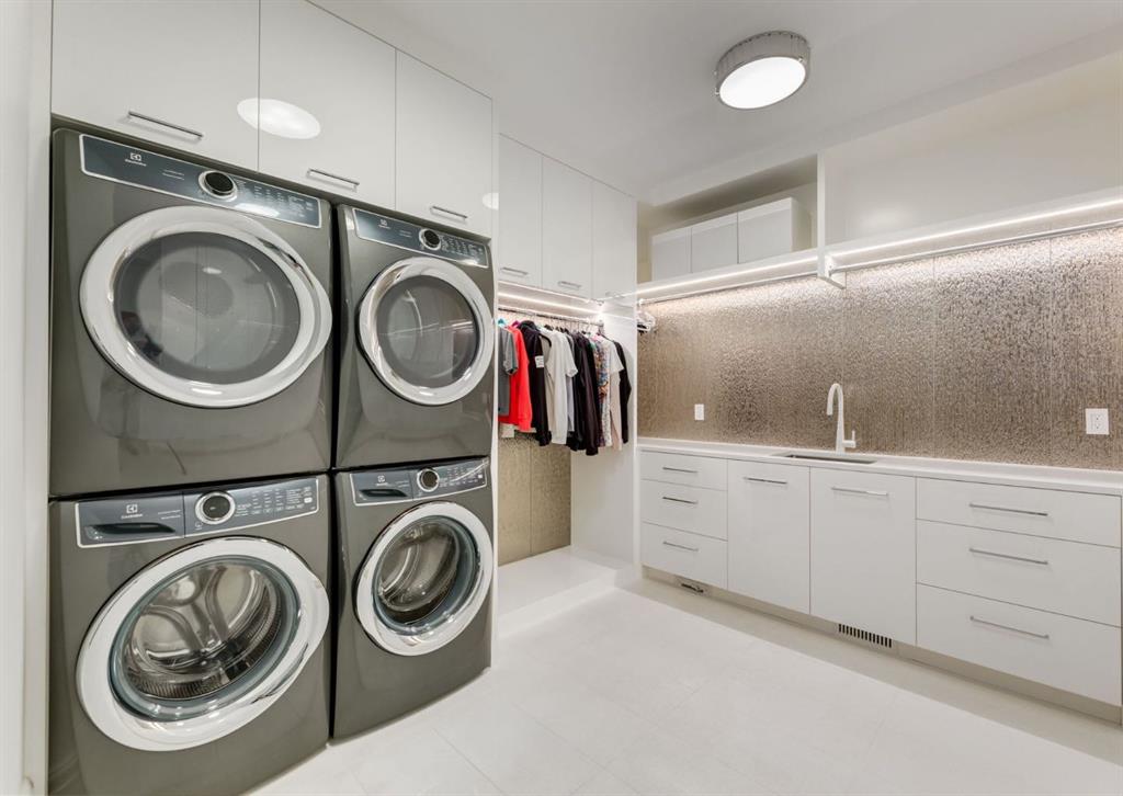 Stunning legacy estate situated on 100 feet of frontage on Calgary’s most coveted street—Crescent Road—offering unparalleled views of the downtown skyline and river valley. This architectural masterpiece boasts over 11,400 sq ft of living space, crafted by boutique luxury builder Maillot Homes in collaboration with Paul Lavoie Interior Design, who drew inspiration from Alice in Wonderland to create a whimsical yet refined family retreat. Built as a forever home and completed in 2022, no expense was spared. The exterior is clad in full-bed Turkish limestone, and the home features high-velocity heating and cooling, an elevator, a roof-mounted solar array, and premium designer finishes throughout. The chef’s kitchen is equipped with a Sub-Zero/Wolf appliance package, steam oven, warming drawers, heated floors, custom millwork with liquid metal finishes, a pot filler, and a fully outfitted butler’s pantry. A highlight of the home is the two-storey library, inspired by Dumbledore’s office in the Harry Potter series—complete with thousands of books, cozy reading nooks, and sweeping city views. The primary retreat features dual private ensuites and walk-in closets, with spa-level features including a steam shower, soaker tub, towel warming drawer, heated floors, custom cabinetry, electronic window coverings, and even a rotating shoe carousel. Additionally, the upper level includes three spacious bedrooms, each with walk-in closets and private ensuites, plus a large laundry room with discreet access from the primary suite. The top floor showcases an elegant lounge with a full bar, wine tasting room, covered patio with gas fireplace, and a designer powder room. Silver-leaf ceilings & a solvable floor maze add to this glamorous space. The lower level mimics a private sports club with an impressive custom gym with soaring ceilings (over 11 feet), nanny quarters, guest suite, recreational room with surround sound, extra laundry, secondary mud room, and ample storage. Outdoors, enjoy the expansive backyard with a retractable-screen patio, gas heaters, fireplace, outdoor dining area, pizza oven, and playhouse. Car enthusiasts will appreciate two heated, attached garages with epoxy floors, custom cabinetry, and a heated front driveway. Ideal for families and grand-scale entertaining, properties of this caliber on the Ridge are extremely rare, this one-of-a-kind estate is a must see.