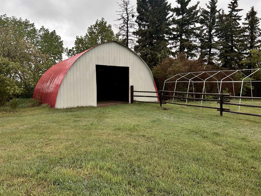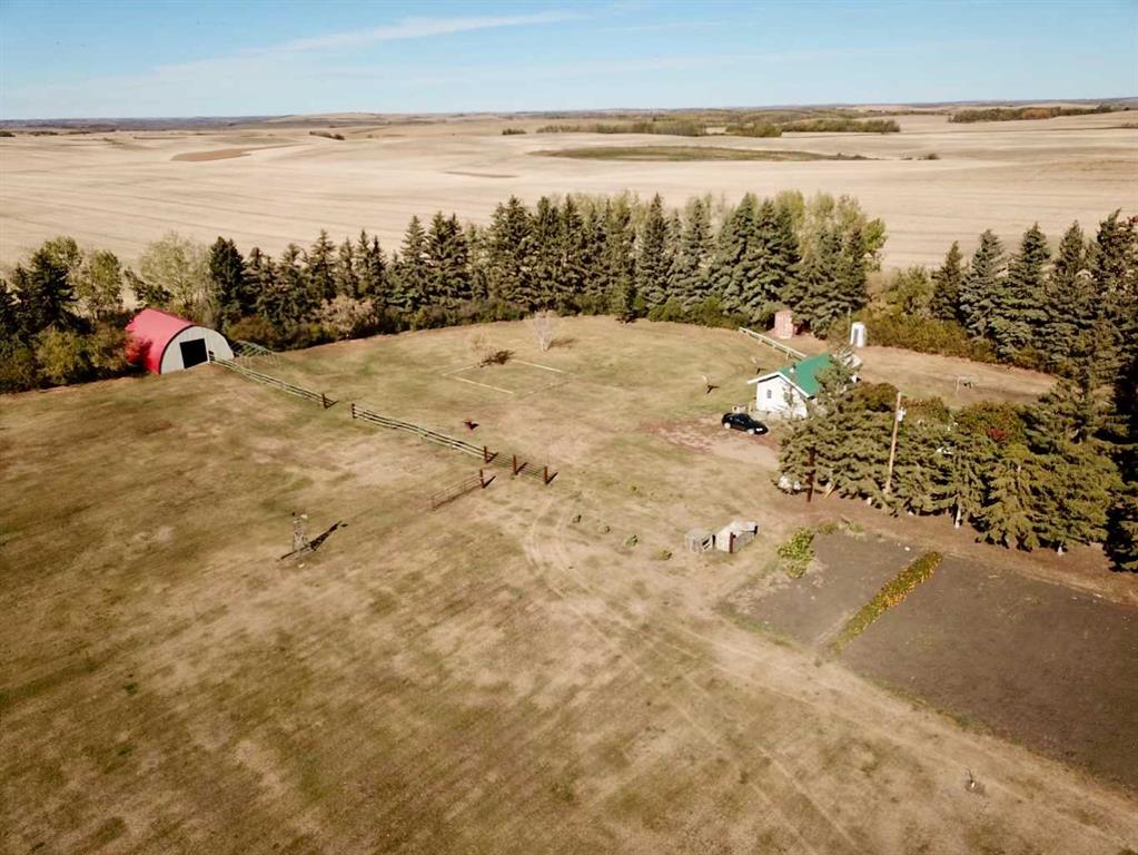 Discover the perfect location to build your dream acreage on this beautifully maintained 4.47-acre flat property, ideally situated between Kitscoty and Islay, just 30 minutes to Lloydminster and 25 minutes to Vermilion. With full services already in place, this is a rare opportunity for an easy and cost-efficient start to your custom home or rural retreat. The acreage features a Fully serviced build site with natural gas, power, drilled well, septic, and RV hookup already established; Flat, open acreage which is ideal for future home construction, shops, barns, or hobby farm expansion; fenced and cross-fenced; 150’ x 50’ garden plot producing vegetables, raspberries, strawberries, garlic, asparagus & more. The existing home (built in 2015) is A move-in ready approx. 500 sq. ft. year-round tiny home that provides immediate living space while you plan your build. Features include: Bright open-concept living area with natural gas fireplace and updated electric baseboard heat; Full kitchen with gas stove, refrigerator, and ample counter space; Queen sleeping area plus three custom double loft beds for guests or storage; Spacious 3-piece bathroom with storage and laundry/utility room; Updated mechanical systems including natural gas hot water heater, water softener, and RO system (2024); Strong well producing approx. 5 GPM. Outbuildings & Additional Improvements: 30’ x 40’ Quonset - excellent for storage, equipment, or livestock potential; 40’ x 9’ sea can with built-in workbench; Outdoor hot/cold taps and levelled spaces ideal for a greenhouse, shop, or future outbuildings. Whether you're looking for a turn-key rural start, a weekend escape, or the perfect site to build your forever acreage, this property offers unmatched value with essential services already in place.