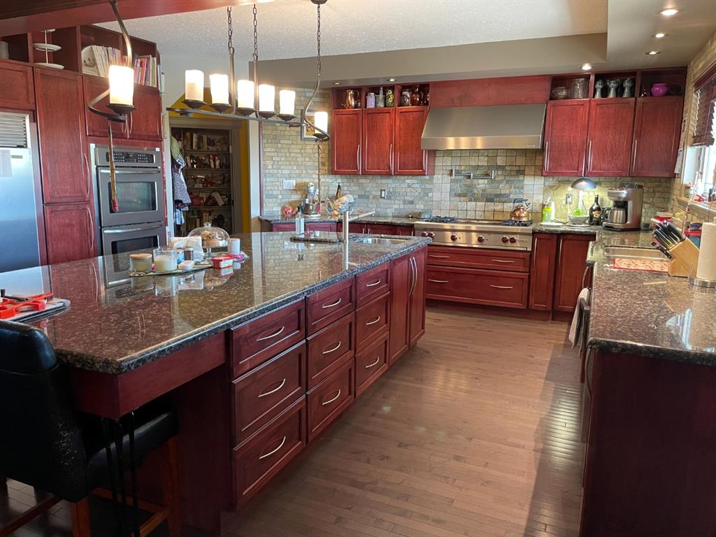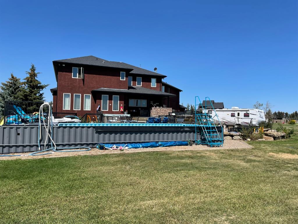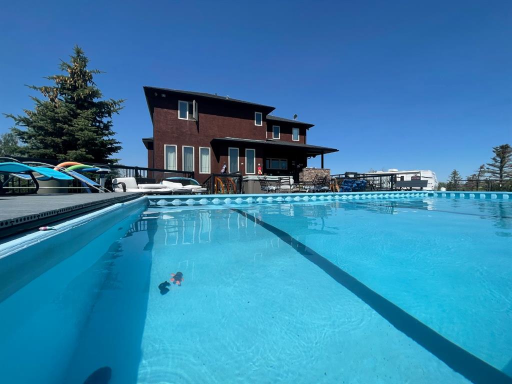 Welcome to Luxury Acreage Living at Its Finest! Step into a truly exceptional lifestyle with this premier custom-built estate, nestled on 5.49 beautifully landscaped acres. Boasting over 5,100 sq ft of developed living space and an impressive 5-car heated garage, this one-of-a-kind property offers both grandeur and comfort in every detail. From the moment you enter the tiled foyer, you’re greeted by rich hardwood flooring that flows into a stunning open-concept great room, perfect for entertaining or unwinding in style. The chef’s dream kitchen is a showstopper, featuring granite countertops, stone backsplash, Wolf natural gas cooktop, double ovens, and a side-by-side commercial-grade fridge/freezer. A butler’s pantry and thoughtful design elevate this culinary space to the next level. (Trust us, you will want to see this kitchen in person!) Gather around the living room stone face gas fireplace, complete with a built-in entertainment nook for cozy movie nights or gameday! Upstairs, retreat to your luxurious 800+ sq ft primary suite, complete with a two way gas fireplace, an incredible spa inspired 6-piece spa (featuring soaker tub, dual sinks, walk-in shower, toilet, and urinal), and a dream walk-in closet. Two additional oversized bedrooms share a stylish Jack & Jill bathroom, making this floorplan ideal for families or guests. Downstairs is all about fun and functionality—with a pool table area, media room (complete with a 131” 3D projector and surround sound system), 4th bedroom, bonus room, and an entertainer’s dream bar featuring dual beer taps, a commercial ice maker, and sleek glass-lit shelving. Step outside into your personal paradise. A tiered wraparound deck flows seamlessly into the custom 9+ ft deep gas heated chlorine pool***complete with built-in underwater barstools and an innovative “below deck” pump room. Relax in the 10-person hot tub after a day in the sun, then gather around the impressive patio stone-surround firepit to savor those warm Alberta evenings. For the outdoor chef, the full outdoor kitchen includes a gas grill and sink—perfect for summer barbecues. Mature trees and a full underground sprinkler system create a lush, private oasis. This is more than a home...it is a lifestyle. A rare, once-in-a-lifetime property in the County that truly has it all. Be sure to explore the immersive 3D virtual tour (best viewed with virtual goggles!) and request the full list of custom features. If you’ve been dreaming of the ultimate acreage retreat—this is it.