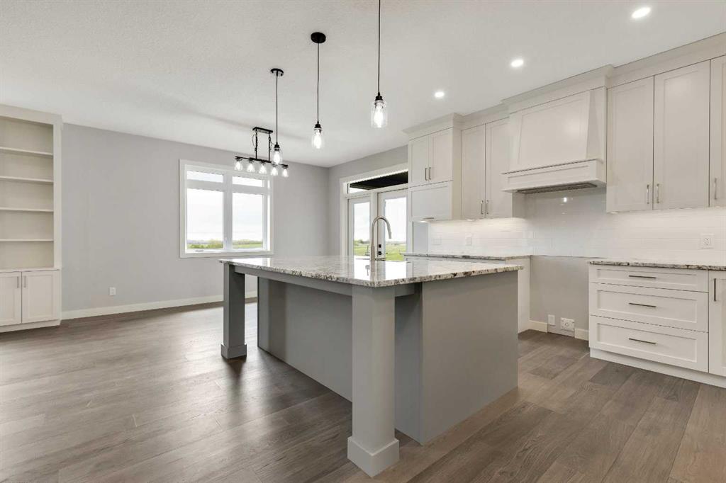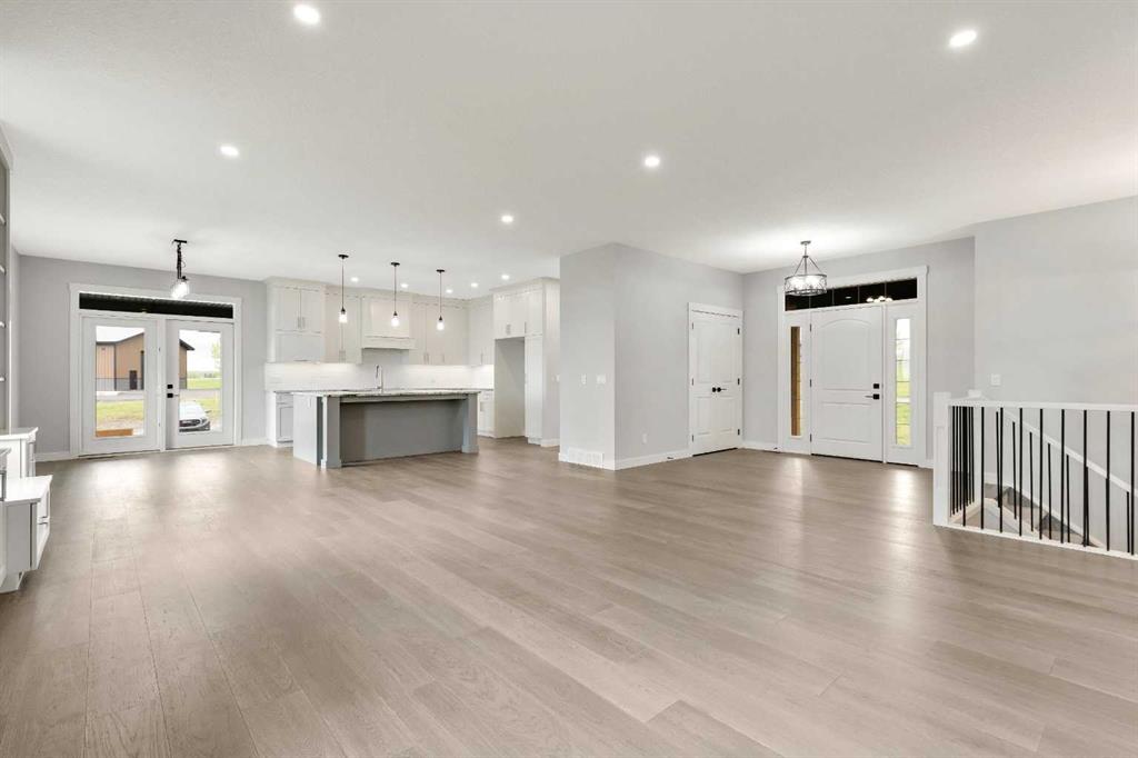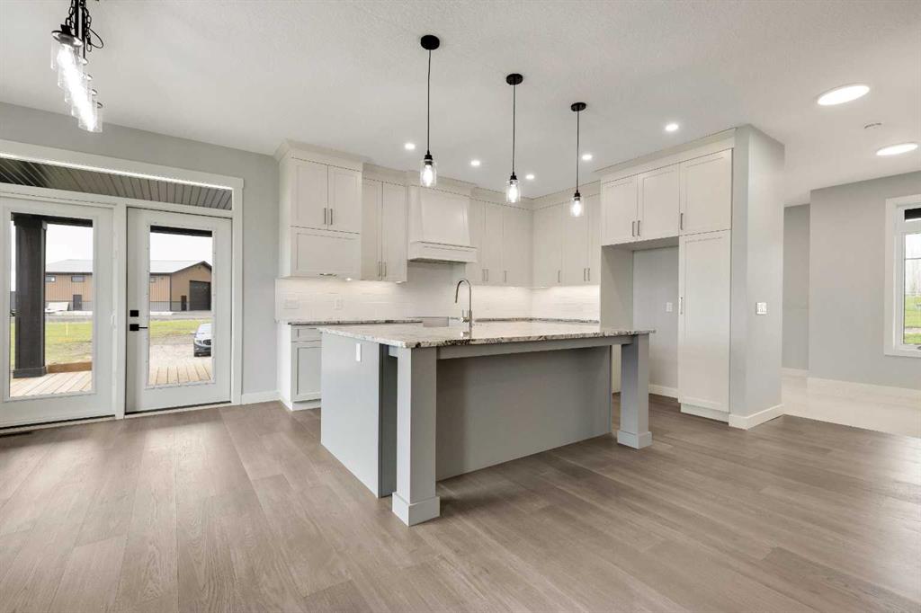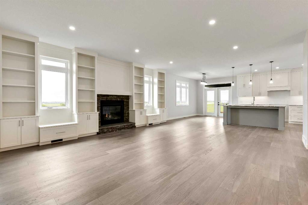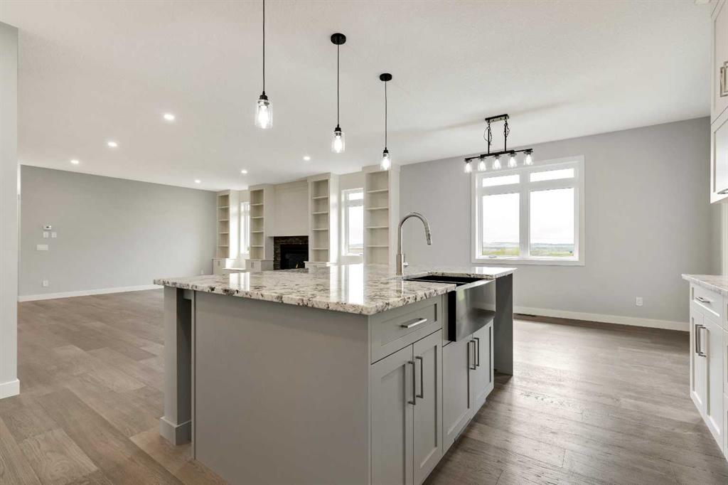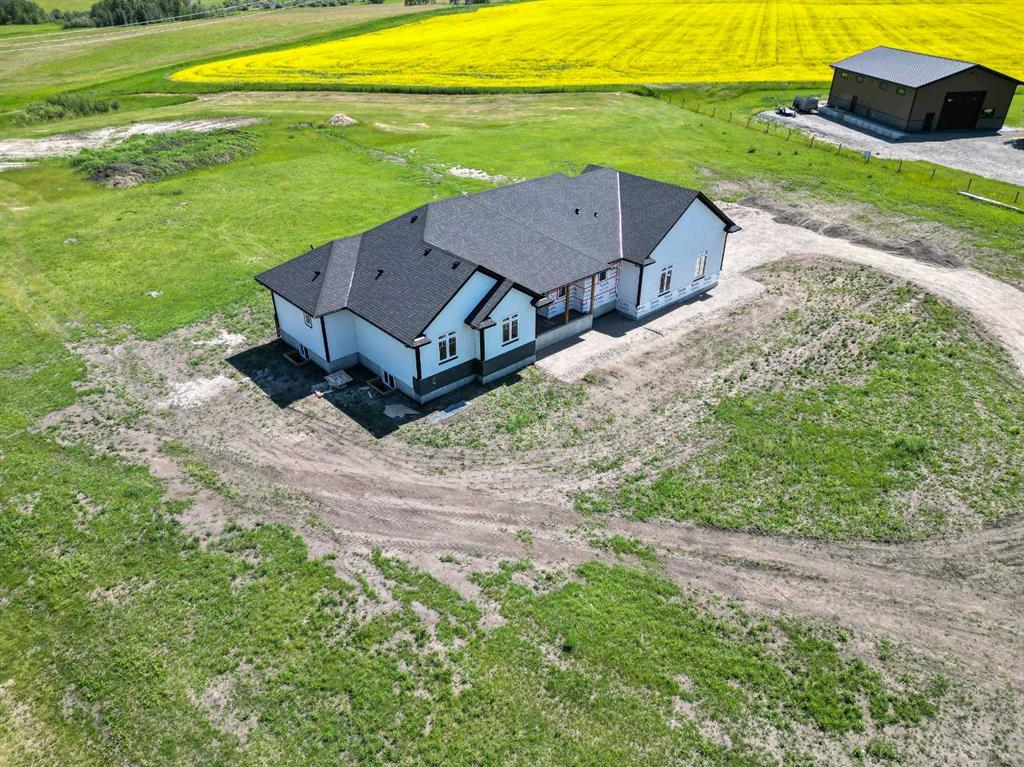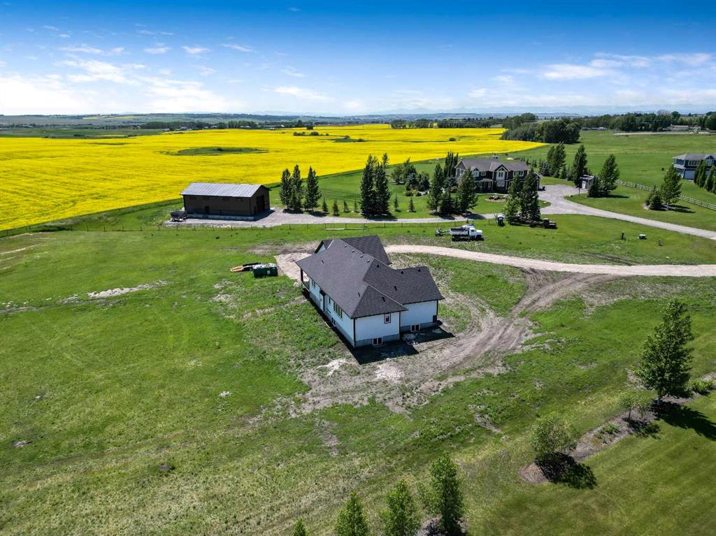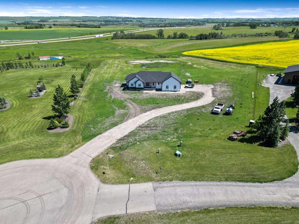 Unwind in Style and Comfort! Conveniently located just east of Okotoks and south of Calgary come and enjoy the years to come in this well-built designed to perfection 2001 sq. ft. bungalow on 4.30 acres. The main floor boasts an open concept filled with east views providing a nice flow of natural light, the warmth and coziness of a Napoleon gas fireplace flanked with built-in shelving, 9 ft. ceilings enhancing an airy atmosphere and offers ample space to comfortably accommodate large family gatherings. The kitchen is a chef’s delight, featuring timeless and natural beauty granite countertops, custom floor-to-ceiling kitchen cabinetry with remote under mounted lighting, hidden microwave shelf, island for seating, gun battle grey dual sink, and room for future dishwasher. The pantry cabinet offers pull out shelves for easy access. Options for electric or gas stove. The main level includes 3 bedrooms, including your bright & spacious & luxurious primary bedroom featuring an upscale walk-in closet with built-ins with a touch of country a barn door, an elegant 5-piece ensuite highlighted with a deep soaking stand-alone tub, shower, and double vanities, also on main offers 4-piece and a 2-piece bathroom and main floor laundry at the back entrance. The basement features a free-span steel beam, no exposed posts, it lends itself to being an open canvas for development with 9' ceilings and large windows. Oversize double attached garage with 13' ceiling height, insulated, & cement floor, nice window finishing, doggy house under the inside garage upscale entrance to the house.. Landscape will be finished to “topsoil”, 14’ x 34’ east deck pilings are installed for future development. Other features include double vapor exterior, continuous hot water with circulation pump, exterior soffit lights, cement entrance steps, sidewalks, and hardy board exterior highlighted with stone accent. Surround by covered sunrise and sunset decks to enjoy anytime of your day. All of this is located in a cul-de-sac subdivision and quick access to all amenities one needs, and to hwy 2 for the commuter in your family and minutes from South Campus Hospital or High River Hospital.