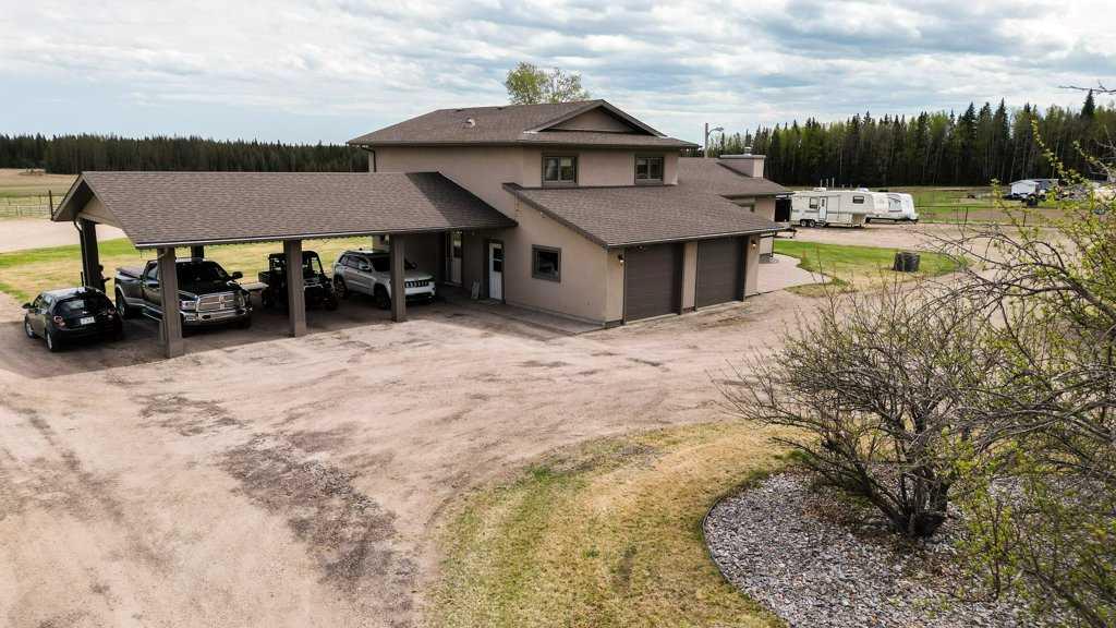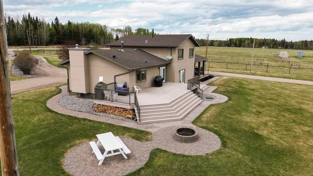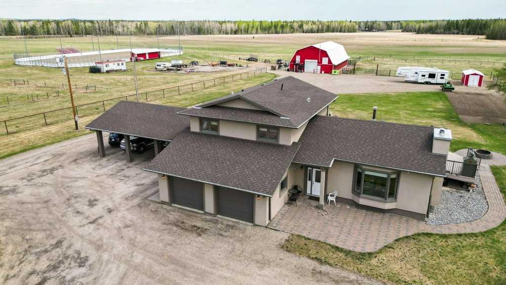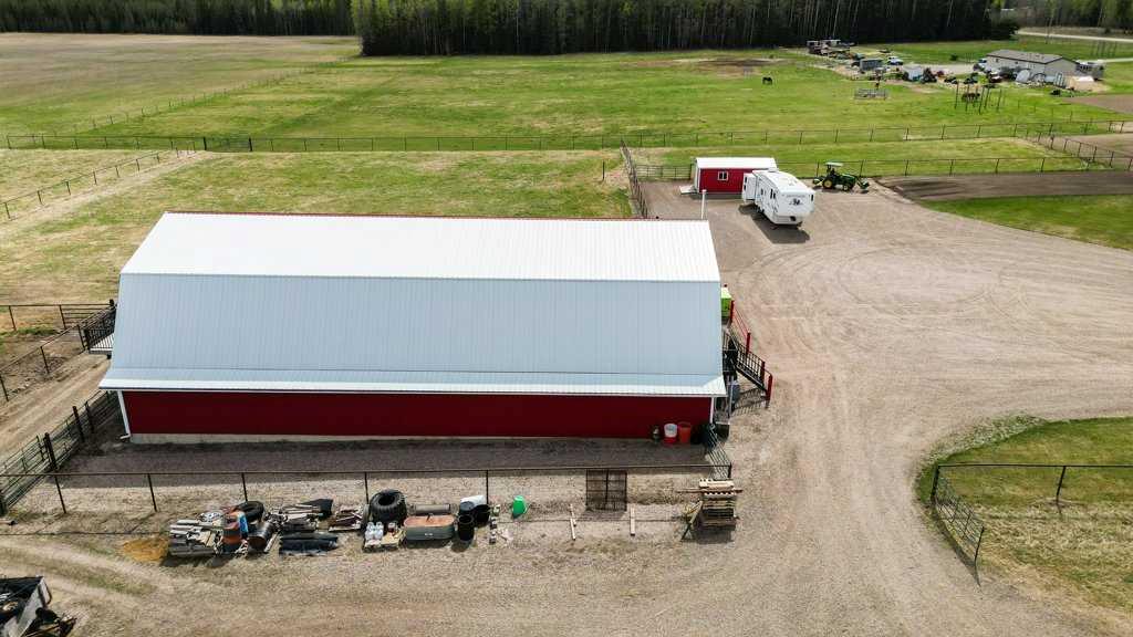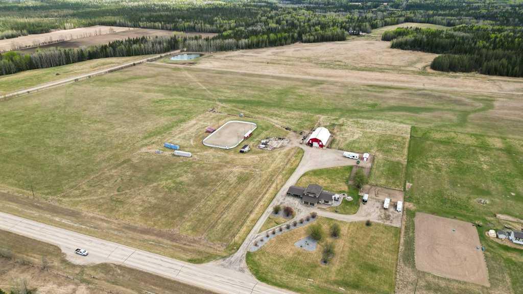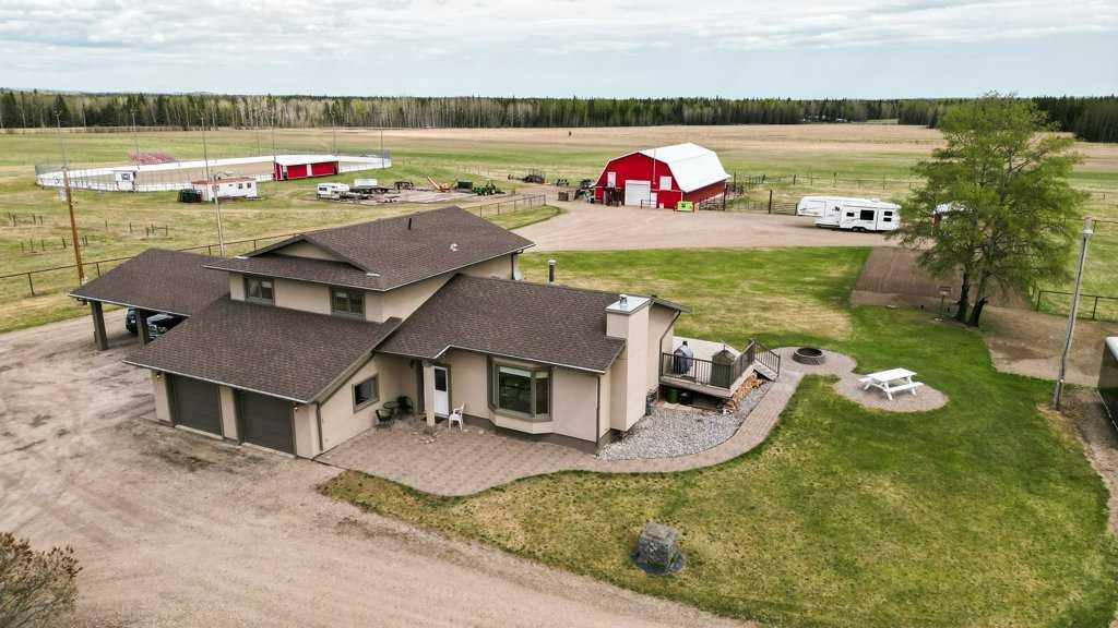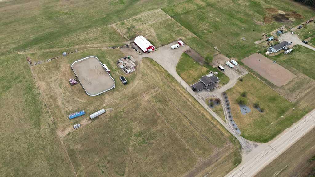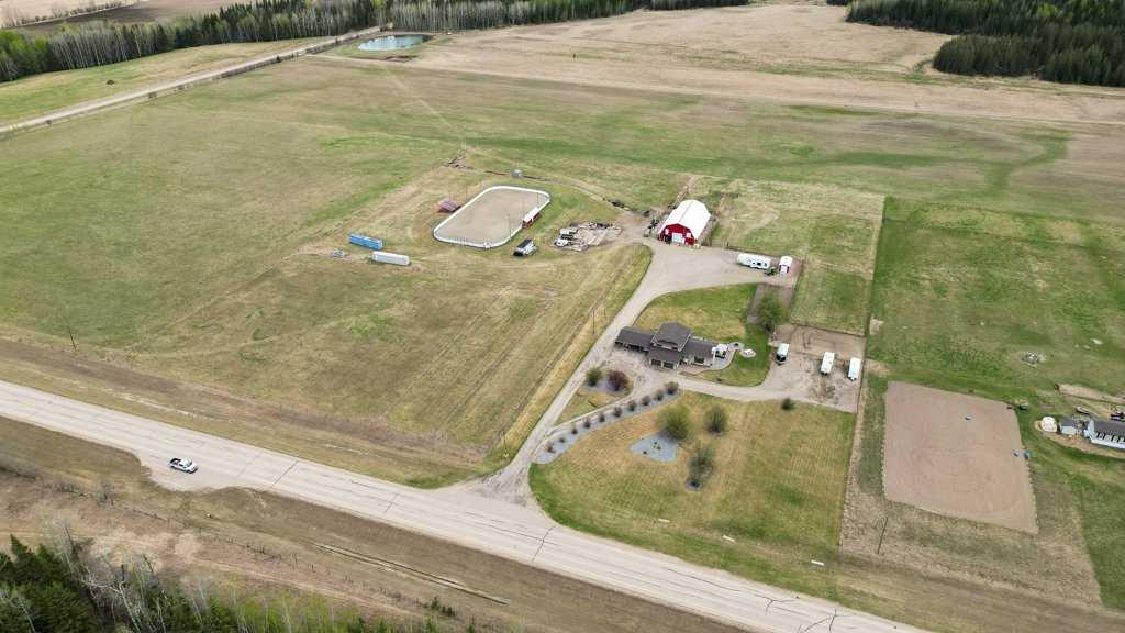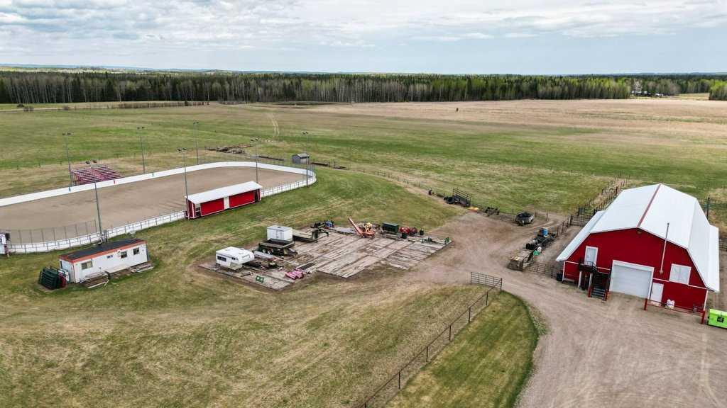 Equestrian & Recreational Lifestyle Focus: This amazing 136.77-acre acreage, located just 6 miles northeast of Edson on pavement, is a rare find for equestrian families or outdoor enthusiasts. The upgraded 4-bedroom, 4-bath home features hardwood flooring, newer appliances, a high-efficiency furnace, and a new hot water tank. The showpiece of the property is the professionally designed outdoor arena that doubles as a winter hockey rink—Zamboni included! Perfect for year-round fun. The land is split into two titles (11.69 & 125.08 acres) and includes outbuildings ready for livestock or recreation: a massive 85’x46’ two-story barn/shop, a heated 24’x26’ garage, a 3-stall carport, and a 12’x24’ storage shed. Two automatic stock waterers and a circular gravel driveway enhance usability. A second serviced homesite is ready for future expansion, making this an ideal multi-family or investment setup. Take in gorgeous views and spot local wildlife from your east-facing deck. Bonus: $3,500/year in oil revenue offsets your costs. Everything is in place—just bring your horses or hockey gear! Property features three drilled water wells and a dugout, providing ample and reliable water sources for agricultural or residential use