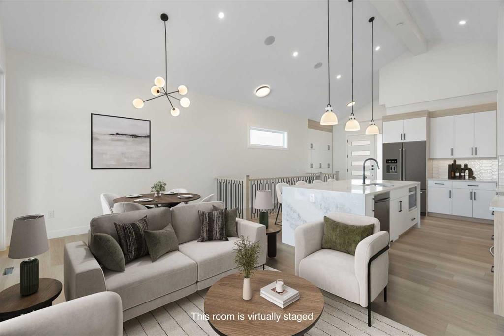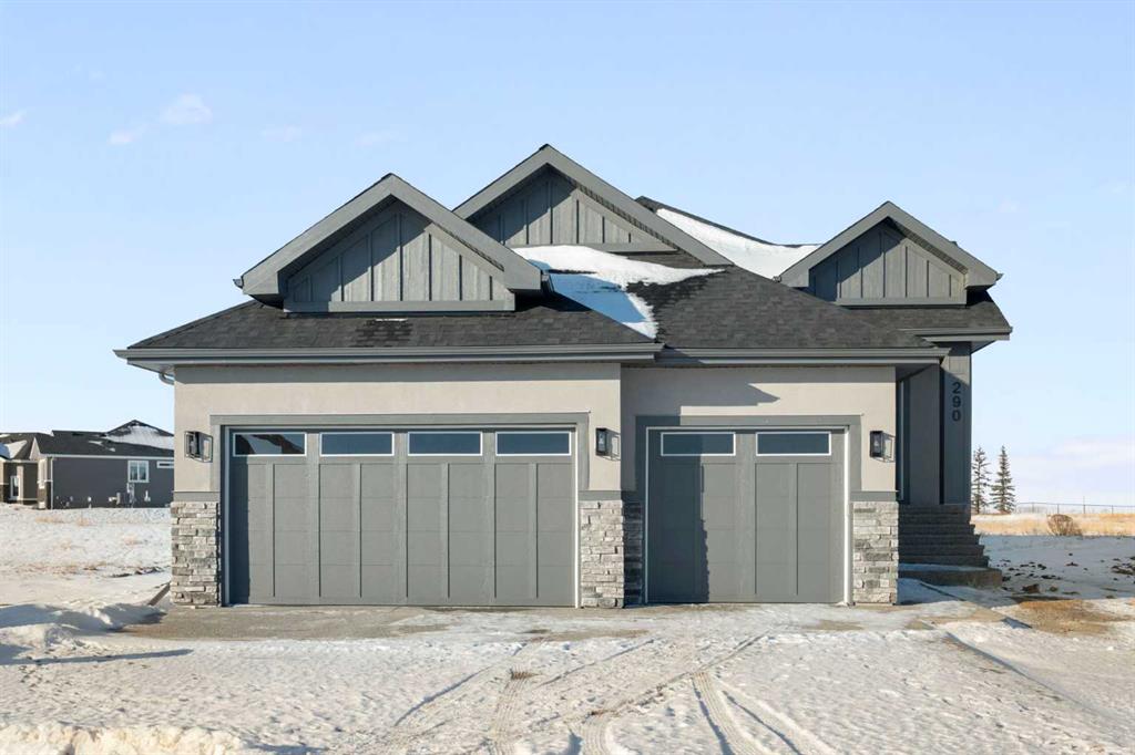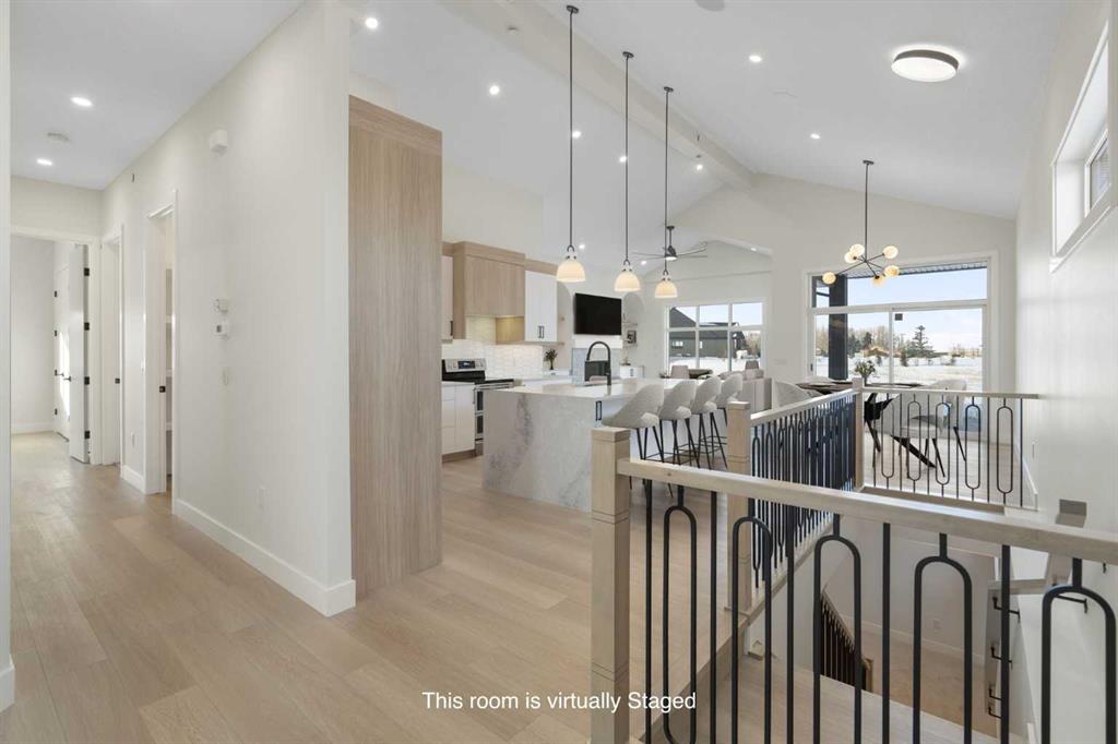 ELIGIBLE FOR FIRST HOME BUYERS GST REBATE. Immaculate Open Concept Bungalow with Vaulted Ceilings Sunsets Views!! Welcome to this stunning open concept bungalow that perfectly blends modern luxury with prairie charm. Soaring vaulted ceilings extend throughout the main living space, creating an expansive and light-filled atmosphere. This thoughtfully designed home features 4 spacious bedrooms plus a den,—ideal for a home office, guest room, or hobby space. The primary bedroom offers a private retreat with a spa-inspired ensuite, while a second full bath serves guests and the additional bedroom. The heart of the home is the gourmet kitchen, beautifully appointed with gleaming quartz countertops, stainless steel appliances, a large island with seating, and custom cabinetry. The open layout flows seamlessly into the dining and great room areas, where massive windows capture stunning views of the open prairie and bathe the space in natural light. Step outside to your extended deck that is partially covered deck, perfect for enjoying peaceful mornings or entertaining guests as the sun sets over the wide-open landscape. An oversized triple garage provides exceptional space for vehicles, tools, and storage, with room left over for recreational gear or a workshop setup. Downstairs, the fully finished basement expands your living space with two additional bedrooms, a full bath, and a generously sized rec room—ideal for movie nights, game days, or a kids’ play area. Every inch of this home has been crafted for comfort, style, and functionality, all set against the backdrop of breathtaking prairie views and sunsets. Don’t miss the opportunity to make this exceptional property your forever home.