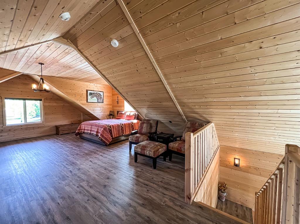Just minutes south of St. Isidore, this beautifully crafted 1.5-storey Knotty Pine Home sits on a sprawling 156-acre property, offering the perfect blend of privacy, charm, and opportunity. Whether you dream of a peaceful rural retreat or the space to start a hobby farm, this property delivers. Step inside to soaring ceilings, a warm rustic aesthetic, and a bright open-concept layout filled with natural light. The spacious living and dining area features large windows and a cozy pellet-burning fireplace, creating an inviting atmosphere year-round. The kitchen is a true showpiece, complete with distressed hickory cabinetry, granite countertops, an eat-up island, and an abundance of cabinet and counter space, perfect for cooking, entertaining, and making memories. Upstairs, the entire level is a dedicated primary retreat featuring a private sitting loft, a full ensuite, and a walk-in closet, your sanctuary to unwind and recharge. The main floor offers two additional bedrooms and another full bathroom, ideal for a family or guests. Step outside and take in the peaceful prairie surroundings from either expansive decks. The covered front porch is the perfect place to enjoy stunning sunsets, while the back deck offers covered and uncovered areas, ideal for entertaining, dining, or simply soaking in the views. The beautifully landscaped yard leads to a 16x24 garage and a 36x48 insulated, wired barn/shop, giving you endless possibilities for storage, hobbies, or animals. As a bonus, the land is currently rented out, bringing in $7,150 annually to help offset property costs. The home is also connected to town water and features backup power with a generator offering extra convenience and peace of mind for rural living. This thoughtfully designed and exceptionally well-maintained home offers unmatched comfort, space, and peace of mind. From its quality craftsmanship to its panoramic prairie views, every detail has been carefully considered to deliver the ultimate country living experience. The sellers would consider subdividing the property, offering approximately 10 acres for $550,000. Don't miss this rare opportunity, book your showing today and discover the perfect blend of serenity, style, and rural charm!