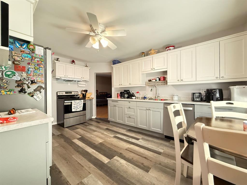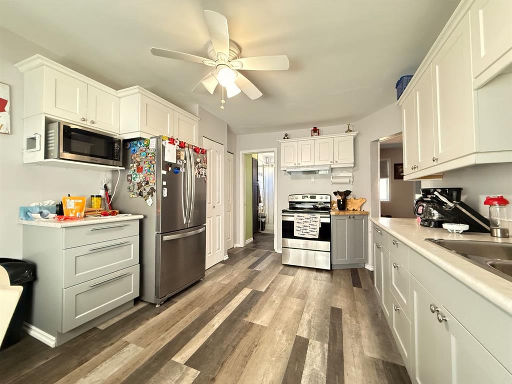 Welcome to this beautifully updated 1½ storey home, offering 1,254 sq ft of comfortable living space nestled on a generous 90' x 139' lot. This well-maintained property features a 24' x 28' double detached garage with newer shingles and eavestroughs, plus convenient back lane access and a dedicated garden area—perfect for outdoor enthusiasts and hobby gardeners alike. Step inside to find a bright and welcoming main floor, complete with a modern kitchen, 4-piece bathroom, spacious living room, and a main-floor bedroom. Upstairs, you’ll discover two additional bedrooms, ideal for a growing family or home office setup. The basement adds even more living space with a large family room, 2-piece bath, laundry/utility room, one bedroom, and a den—great for guests, a playroom, or a quiet retreat. This home has seen numerous upgrades, including newer flooring throughout, updated appliances, new PVC windows, steel exterior doors, and vinyl siding. Additional features include a 125-amp upgraded electrical service, hot water tank (2020), and a fully fenced backyard complete with a deck and patio—perfect for entertaining or relaxing evenings. Located in the friendly community of Maidstone, this home combines comfort, functionality, and great value. Don’t miss out—book your showing today!