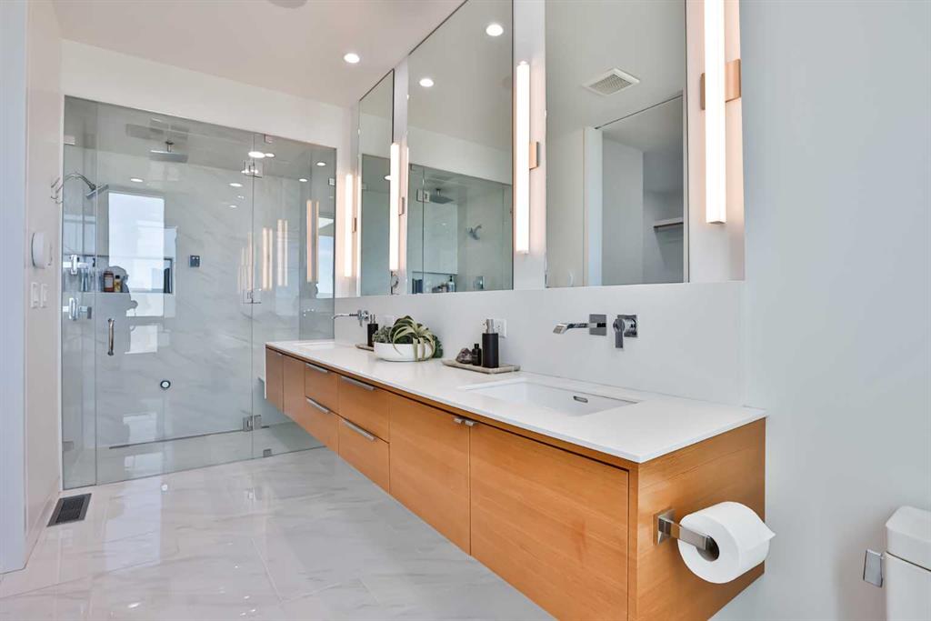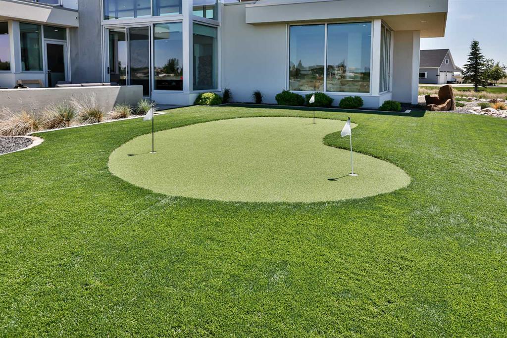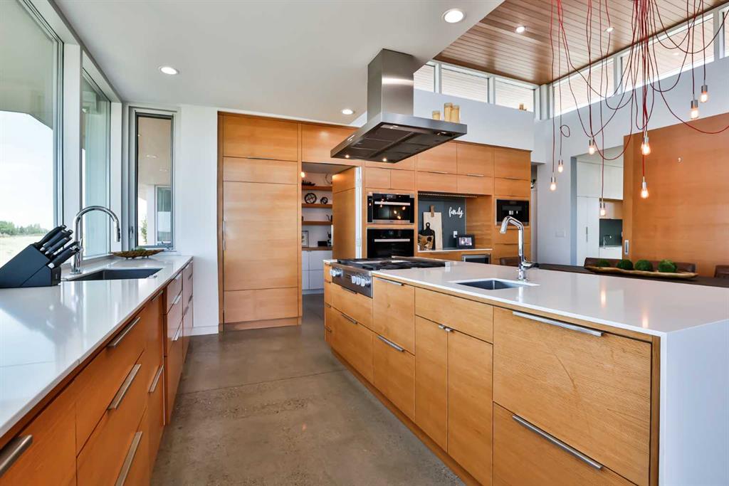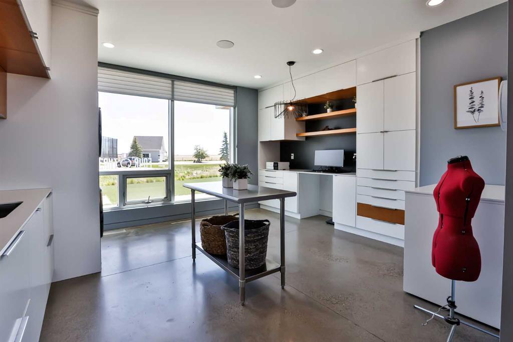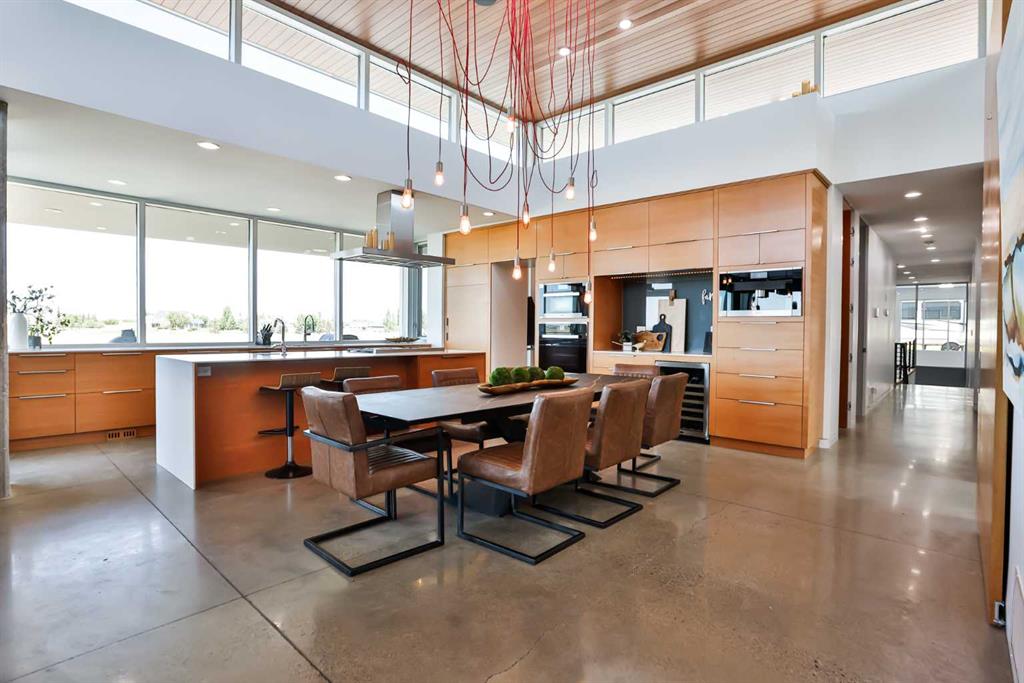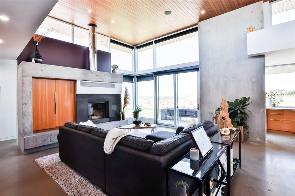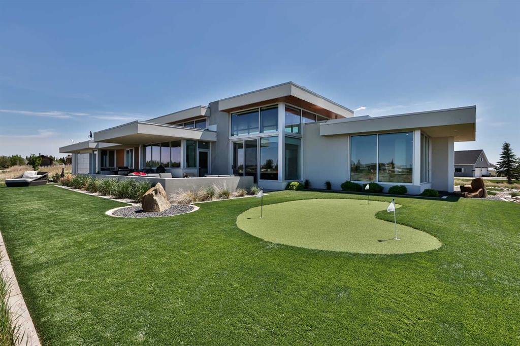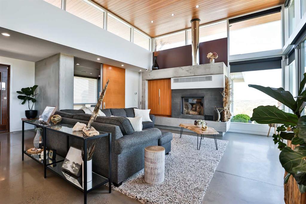 This property is as close to *Selling Sunset* as you'll find in Southern Alberta! This sprawling modern bungalow will capture your attention with the breathtaking view of the coulee in the distance. Stepping through the impressive wood pivot door, you know you're in for a treat. The main floor features 14-foot ceilings, complemented by floor-to-ceiling triple-pane commercial glass windows that will leave you speechless! The open-concept layout seamlessly combines the dining, living, and kitchen areas, with polished concrete floors being warmed by light wood cabinetry. The sleek white, quartz countertops, showcase your kitchen and island area, with windows that create a delightful connection between your indoor and outdoor spaces. The impressive appliance package, featuring a gas cooktop, a cabinet-paneled oversized fridge, a built-in microwave and oven, and a wine fridge. A coffee lover's dream, a built-in Miele espresso machine rivals even the best cafés. A cleverly hidden pantry door adds an extra touch of seamlessness! The living room is anchored by an oversized wood-burning fireplace, transom windows fill the space with natural light. There is an office with stylish floating shelves sits off of the Living room. The primary suite, features floor-to-ceiling windows that wrap the corner, providing spectacular morning & sunset views right from your bed. The walk-around closet is a shopper's dream, while the bright and airy ensuite features double vanities and a luxurious steam shower. Off the kitchen lies a spacious laundry/all-purpose room perfect for sewing or supervising homework while you prepare dinner. In the east wing, you’ll find three spare bedrooms. One has its own ensuite bathroom, while the other two share a Jack and Jill bathroom with a beautifully tiled shower, double vanities, and a skylight that invites natural light. Continuing down the hallway, another floor-to-ceiling glass panel reveals your very own gymnasium, measuring an impressive 32 x 40 feet with 20-foot ceilings, complete with built-in basketball hoops, pickleball court & 3 wide closet for organizing all your sports gear. Floating wood stairs with striking black railings lead you to the basement living room, perfect for movie nights, and entertaining with your side bar. With large windows typical of a walkout basement, this space feels open and bright, completed by a half bath. Outside the gym exit, is a newly installed large sunken patio that blends with the home’s aesthetic. Complete with double gas fireplaces, a pergola, and oversized hot tub. The main patio off the kitchen features a covered deck, built-in speakers, a gas fire pit, and views that are unmatched in all of Southern Alberta. Equipped with cutting-edge technology, most lights, blinds, heating, cooling, and music can be controlled via a control panel or your phone—an upgrade valued at $100,000! The home also offers both forced air and indulgent in-floor heating. Call your REALTOR® for a private viewing today!