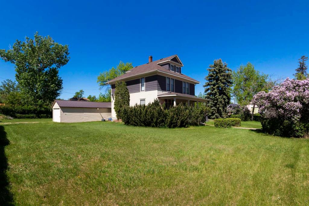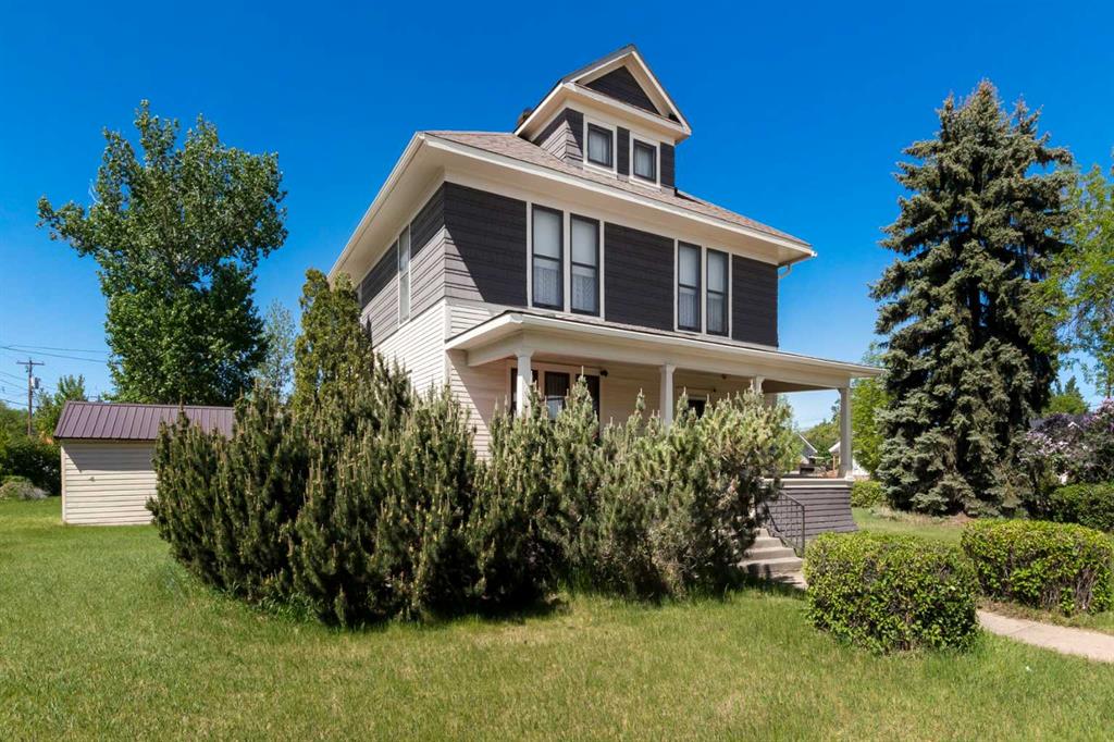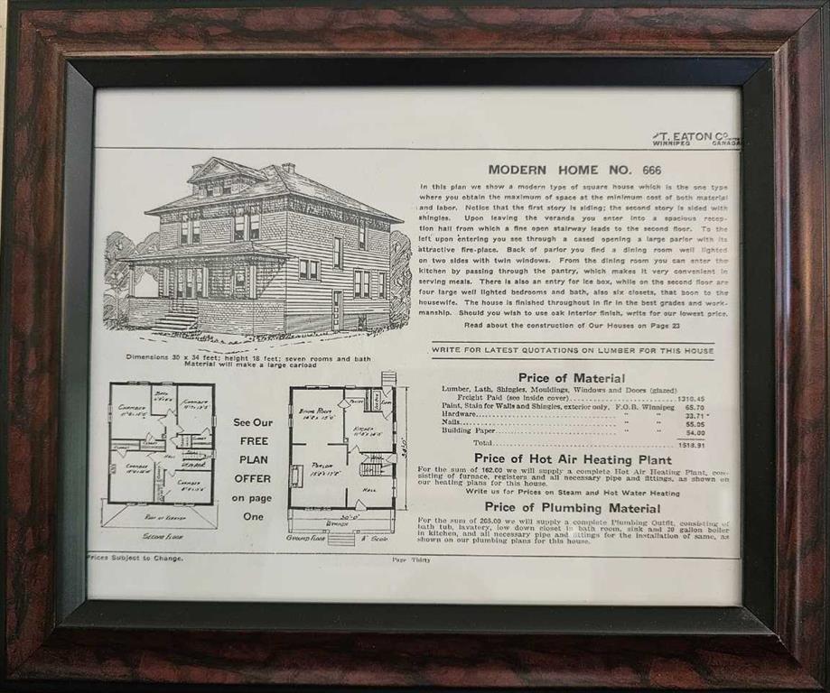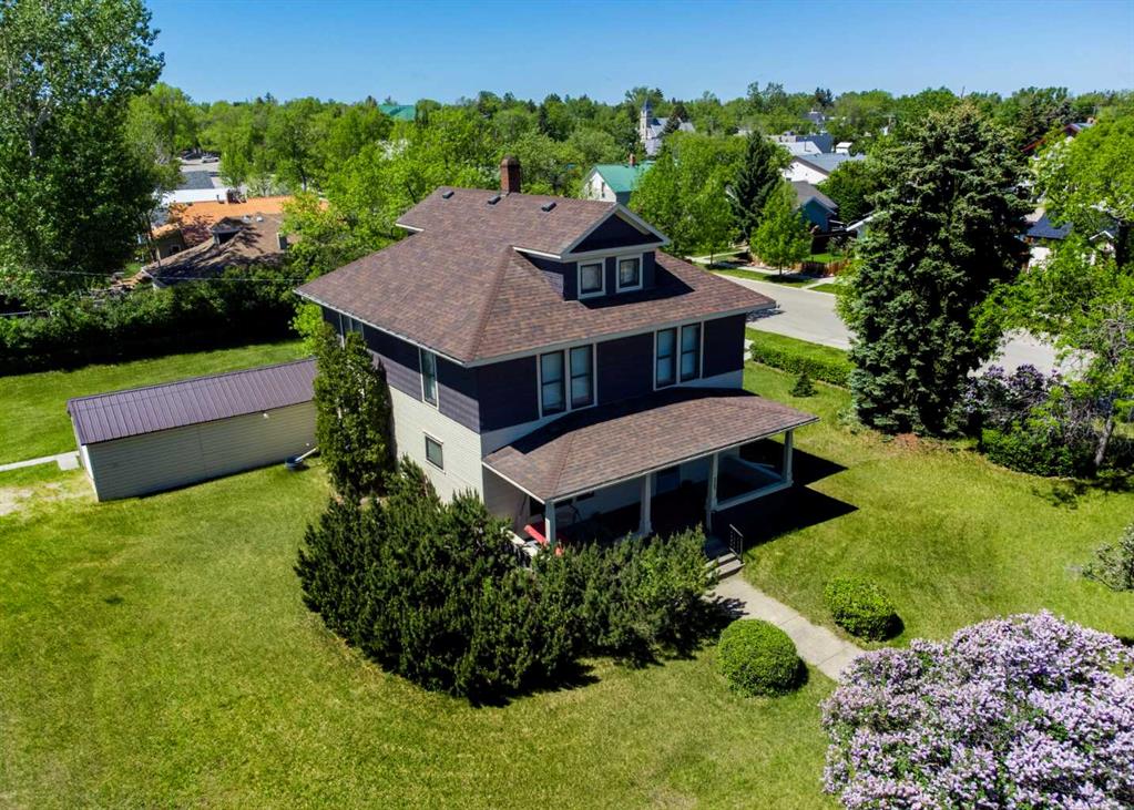 Did you know that this house has been identified as a candidate for "Nanton's Heritage Building Project" which would qualify for annual grants if the owner so wishes. More information can be found at the Town of Nanton. Nestled in the heart of Nanton, this 1919 Eatons home “The Eastbourne” stands as a testament to timeless craftsmanship and enduring family legacy. Lovingly cared for by the same family across four generations, its rich history is etched into every inch of its grand 2269 sq.ft two and half story design. The home exudes charm and character, featuring original hardwood floors, intricate woodwork, built-in bookshelves, and a sweeping staircase that anchors the heart of the home. Set on an expansive 120 x 150 lot—three full town lots—there’s space to dream, grow, or create. A single garage adds convenience, while the Mixed-Use Downtown District zoning opens the door to a variety of possibilities, from a stately private residence to a unique commercial venture. This is more than just a home—it’s a once-in-a-lifetime opportunity to honor the past while building a future filled with new memories.