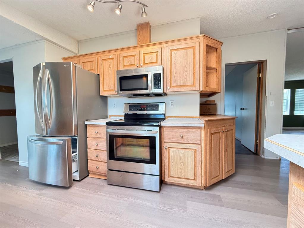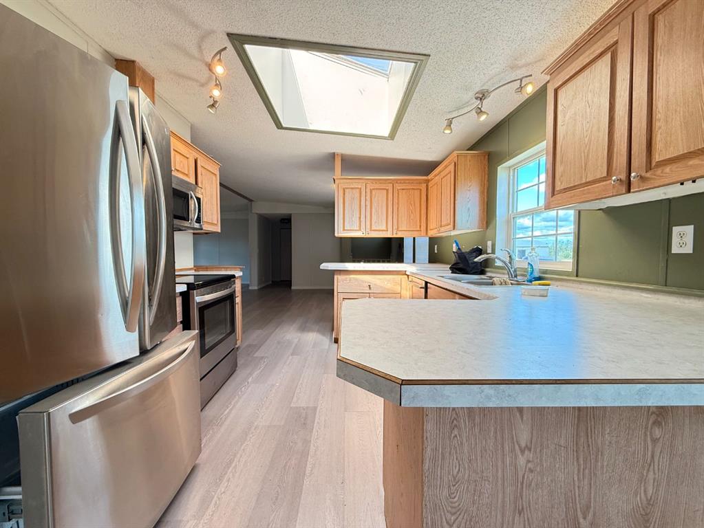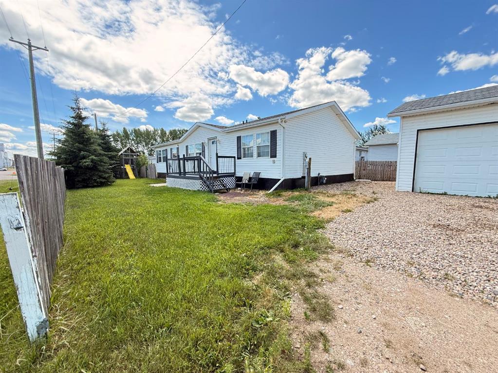 Welcome to this well-maintained 1,512 sq ft double-wide mobile home, perfectly situated on a fully fenced lot in the quiet community of Marwayne, Alberta. Featuring 3 bedrooms and 2 full bathrooms, this home offers the ideal blend of space, comfort, and functionality. The heart of the home boasts a wide-open kitchen and dining area, complete with a cozy breakfast nook and an oversized living room—perfect for entertaining or relaxing with family. The large primary suite features a generous ensuite with a jetted soaker tub and separate shower, creating your own private retreat. Additional highlights include: Detached 20x24 double garage Central air conditioning for year-round comfort New shingles on the mobile New furnace and water softener Dedicated laundry room All appliances included Parking on both sides of the home With a fully fenced yard and plenty of outdoor space, this property is perfect for pets, kids, or backyard BBQs. Immediate occupancy can make it easy to plan your move! Whether you're a first-time buyer, downsizing, or looking for an affordable family home, this one checks all the boxes. Don’t miss out—schedule your viewing today!